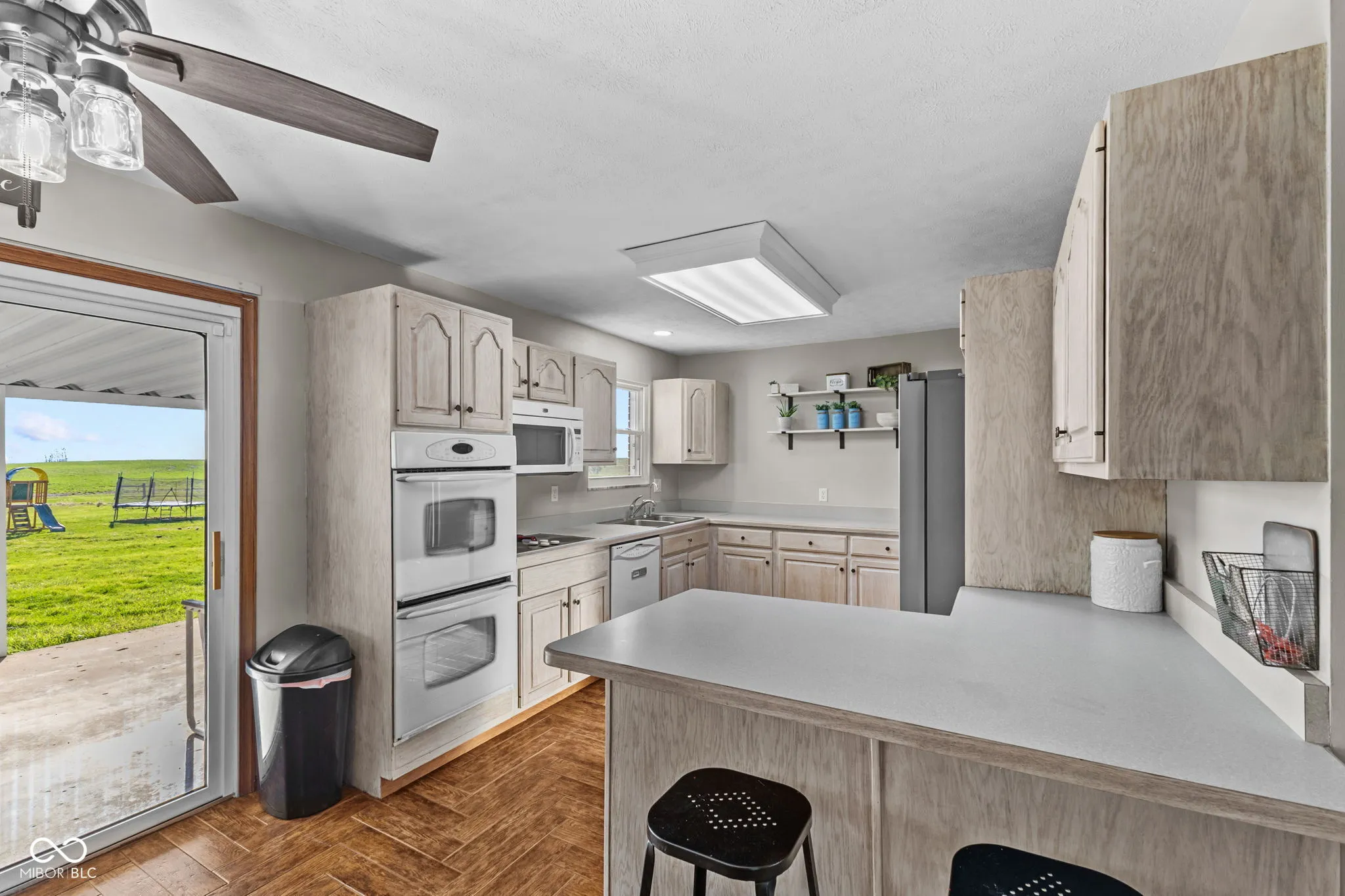 Welcome to this custom-built all brick ranch 4-bedroom, 2 full bath home situated on 1.2 acres, offering the perfect blend of peaceful country living with everyday convenience. Located just minutes from I-65, you’ll enjoy a rural setting with quick access to shopping, dining, and commuting routes. Inside, the split-bedroom floor plan provides both functionality and privacy. The home features durable tile flooring with a wood plank look throughout the main living areas, combining style and low maintenance. The updated kitchen offers reconditioned cabinetry with a modern farmhouse feel, creating a warm and inviting space for everyday living. The primary suite includes a walk-in closet and an updated bath with a new 5 ft. shower and tile flooring. The second full bath features a double vanity, tile flooring, and a tub/shower combination. A spacious laundry room with additional storage adds to the home’s practicality. Step outside to the 18×12 covered patio overlooking scenic cornfields-perfect for relaxing evenings or entertaining while enjoying the privacy of your 1.2-acre lot. The 24×22 detached garage includes a finished 24×15 upper-level space, ideal for a home office, hobby area, or additional storage. Major updates provide peace of mind, including a new roof, garage doors, gutters, and gutter guards (2025), along with a furnace, A/C, and water heater (2022). With no HOA and room to spread out, this property offers the flexibility and lifestyle you’ve been looking for.
