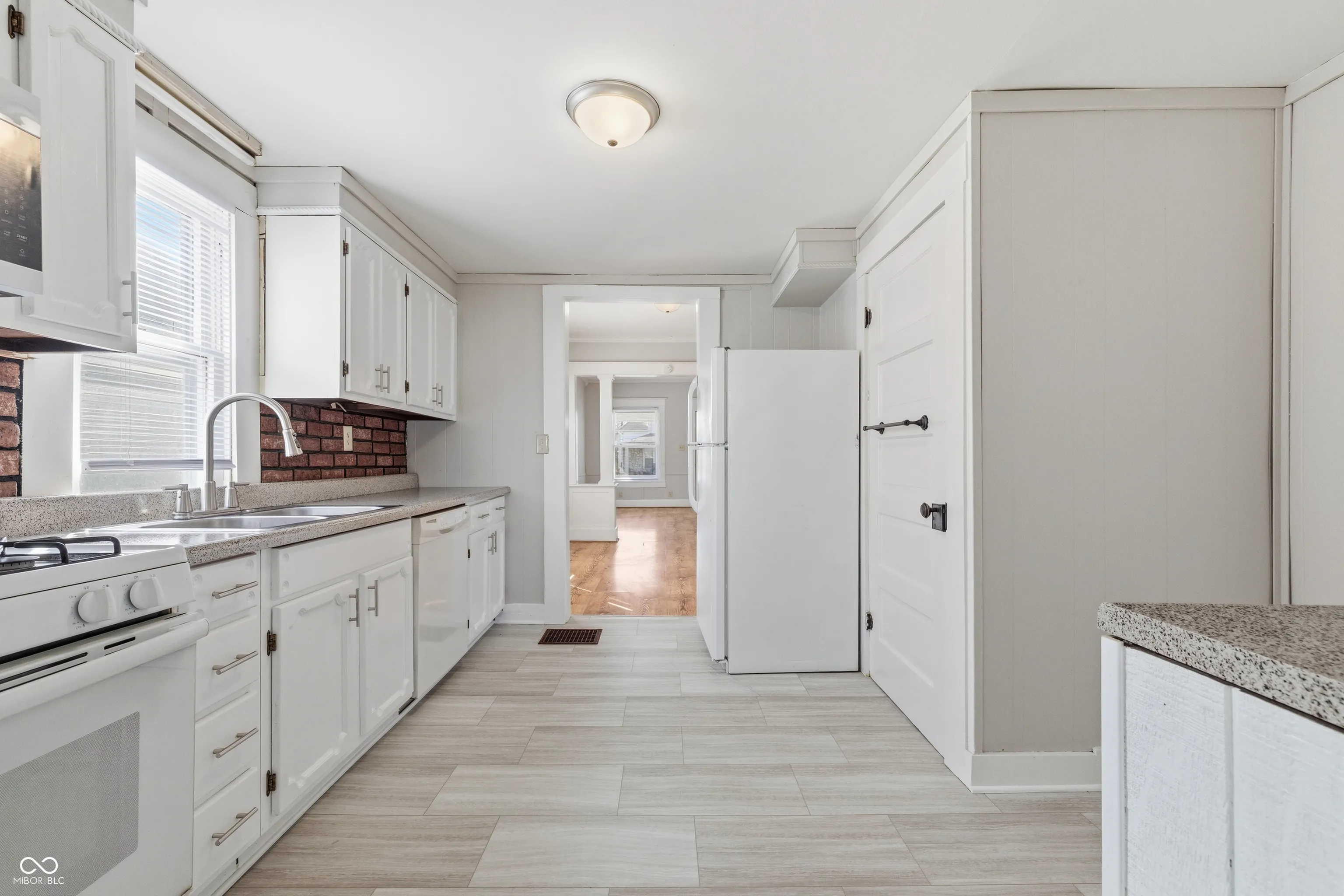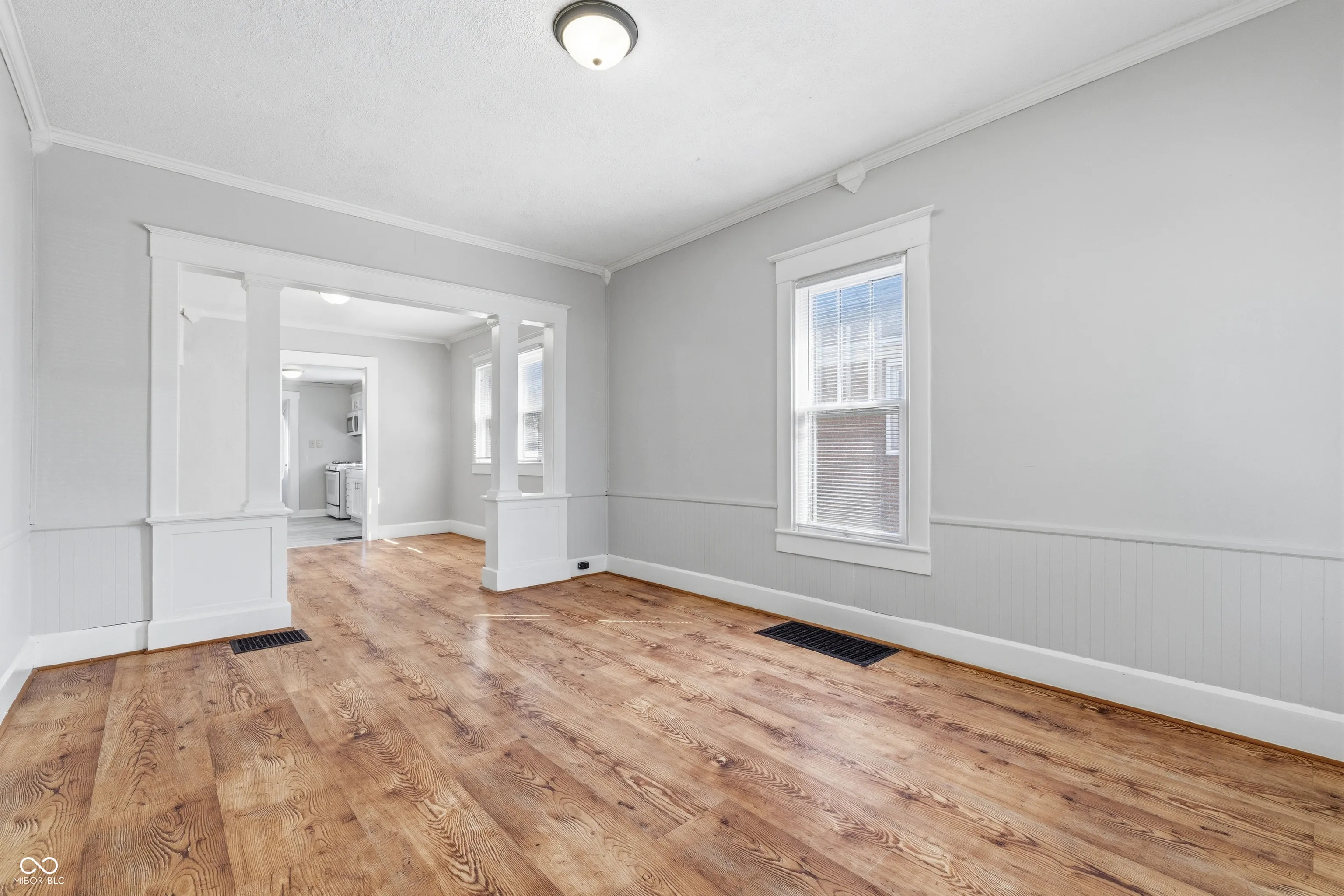 A distinctive presence awaits at 1023 S Pershing AVE, INDIANAPOLIS, IN, USA, presenting itself as an inviting home, ready for occupancy. The living room offers an atmosphere of refined comfort, where elegant crown molding enhances the sense of classic appeal. This space provides a delightful setting for relaxation and cherished moments. The kitchen, a delightful space for culinary pursuits, showcases exquisite stone countertops paired with stylish shaker cabinets, all beautifully complemented by sophisticated crown molding, creating an area of both beauty and utility. Each bedroom provides a serene personal haven, where the tasteful addition of crown molding contributes to a peaceful and elegant ambiance, offering a tranquil retreat at the end of the day. This single family residence, built in 1910, occupies a generous 5793 square foot lot, offering a substantial outdoor setting for its inviting 960 square feet of living space. A welcoming porch extends an invitation to enjoy quiet moments within this residential area. This inviting home presents a wonderful opportunity for a refined and comfortable lifestyle.