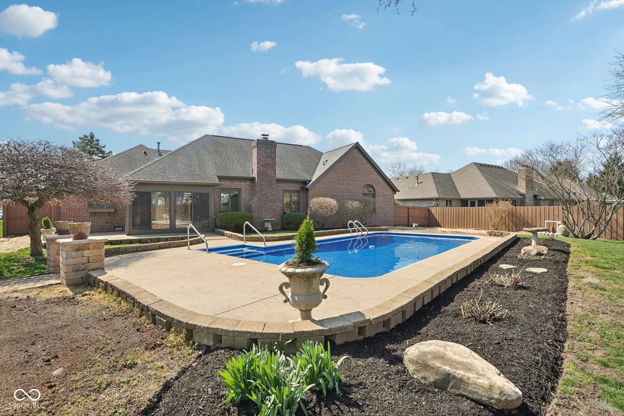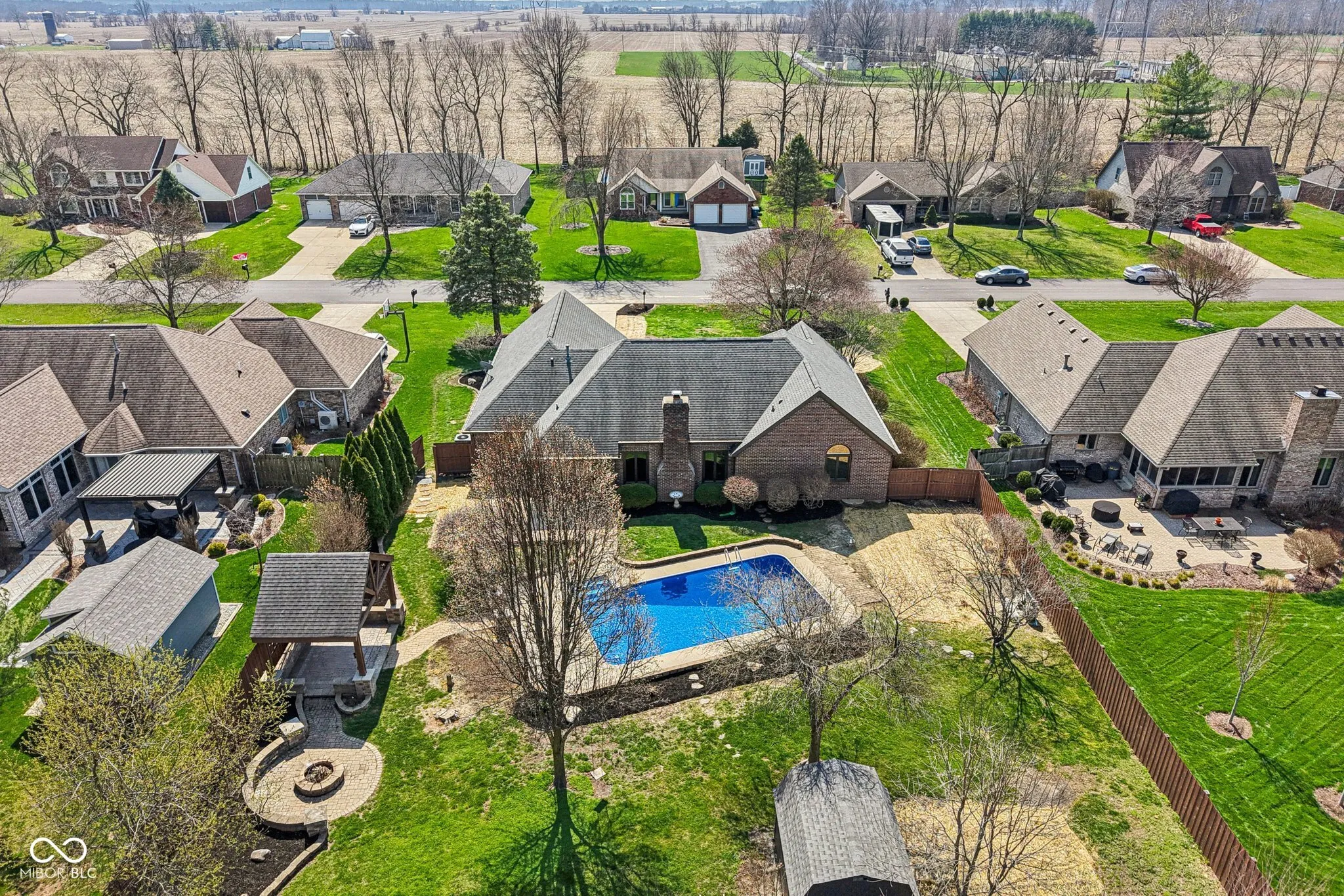 Welcome to this stunning custom all-brick ranch, thoughtfully reimagined and completely remodeled to offer both style and function. Every detail has been carefully curated-from the redesigned floor plan that maximizes efficiency and flow, to the new flooring, fresh paint, and refined interior and exterior finishes. Set on nearly half an acre, the outdoor living space is truly exceptional. Enjoy a private, fully fenced backyard featuring professional landscaping, a large in-ground pool, and a custom entertaining area complete with a pergola equipped with electric, a beautifully designed paver firepit, and a spacious outdoor shed. Inside, the heart of the home is the updated kitchen that seamlessly overlooks the inviting living room-perfect for both everyday living and entertaining. A light-filled three-season room extends your living space and offers the perfect place to unwind. The grand primary suite provides a relaxing retreat, while two additional generously sized bedrooms offer ample closet space. A true laundry room-complete with a utility sink and convenient powder bath-adds both practicality and charm. Located in sought-after New Palestine with top-rated schools and an ideal location close to everything you need, this home is the perfect blend of comfort, convenience, and elevated design.