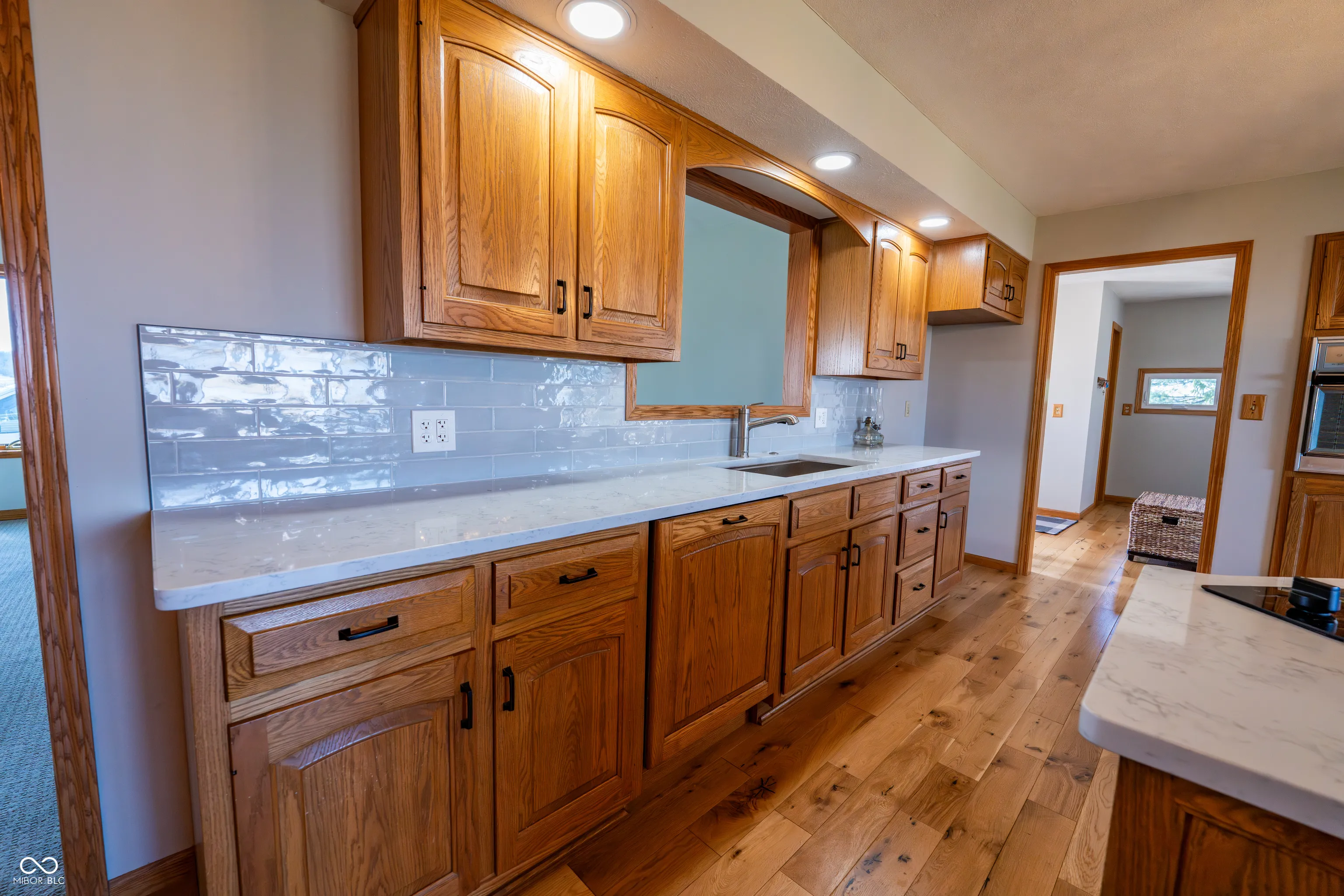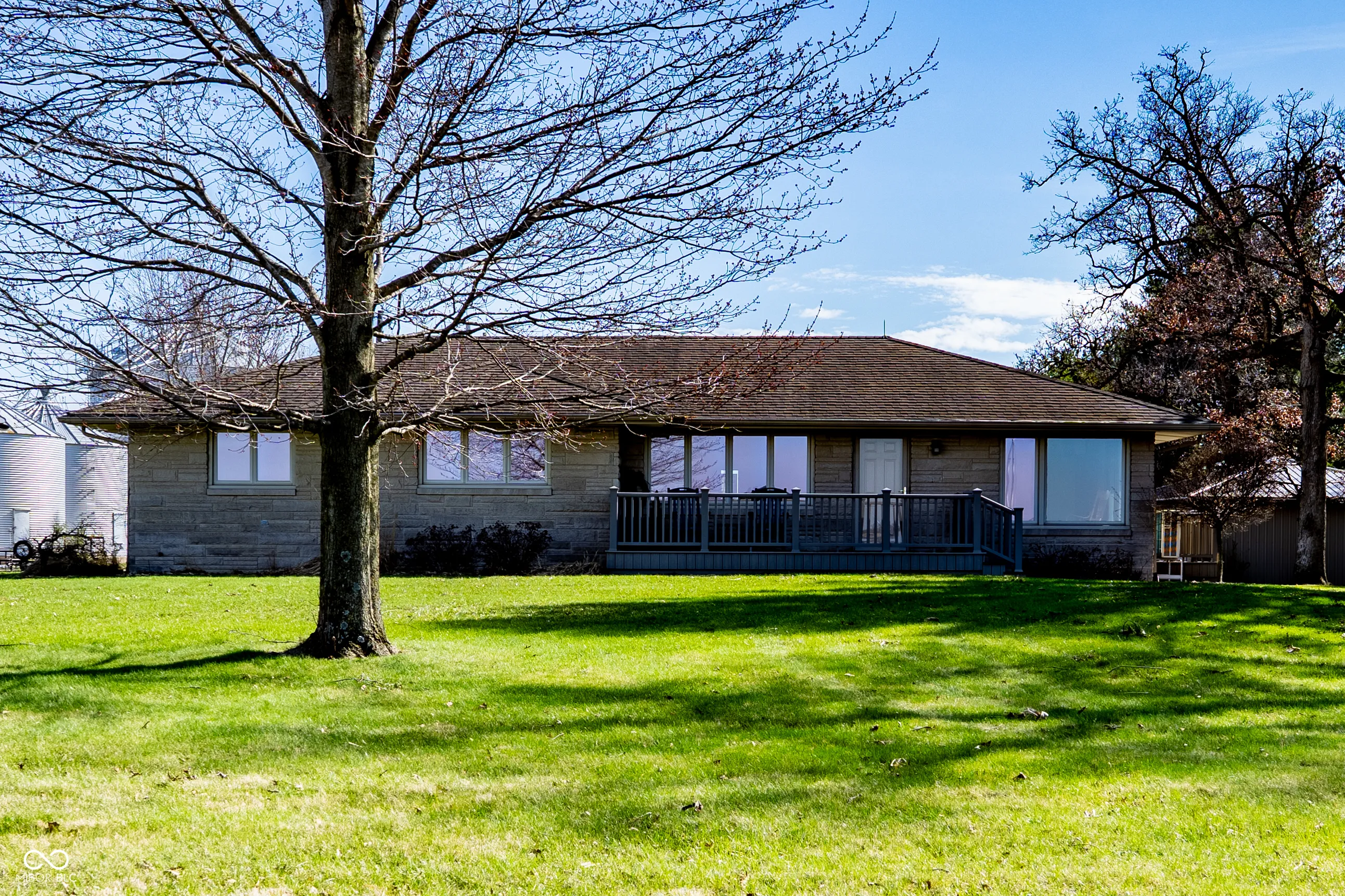 Charming 3-bedroom, 2-bath ranch situated on over 2 acres of peaceful country living. This solidly built home features a timeless exterior with stone, cedar shake siding, and a durable metal roof designed to stand the test of time. Inside, you’ll find numerous updates, including a renovated kitchen with solid wood cabinetry, tile backsplash, and quartz countertops. The open-concept kitchen, dining, and living areas offer hardwood floors, recessed lighting, and large picture windows that bring in abundant natural light. A spacious addition (2010) features vaulted ceilings, ideal for entertaining, and showcases beautiful views of the surrounding countryside. The large, partially finished basement provides flexible space for a second living area, guest quarters, playroom, or home gym. Outside, a wrap-around gravel driveway offers ample parking. The oversized 2-car garage, 2-car carport, and storage barn offers plenty of space for vehicles, equipment, and hobbies. Trex decking on the front and west sides of the home adds low-maintenance outdoor living space.