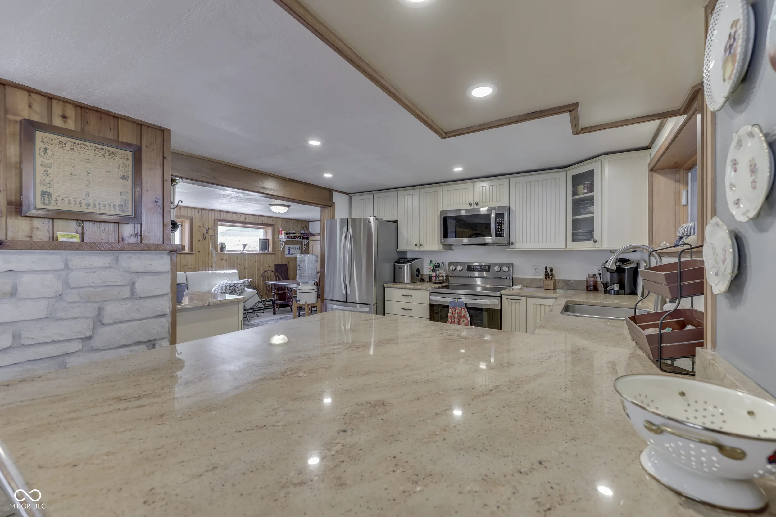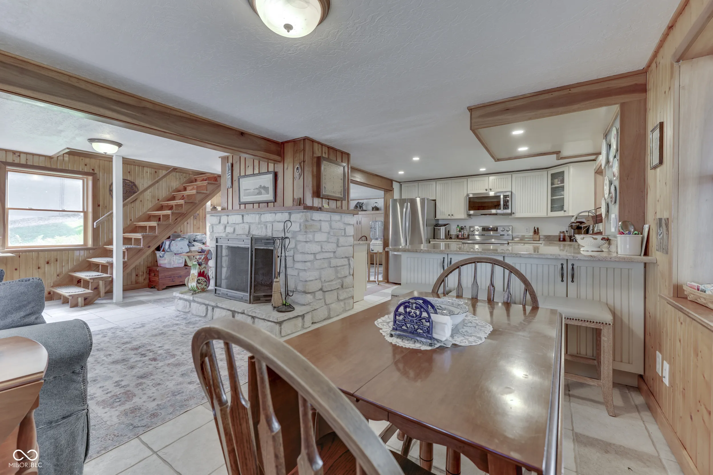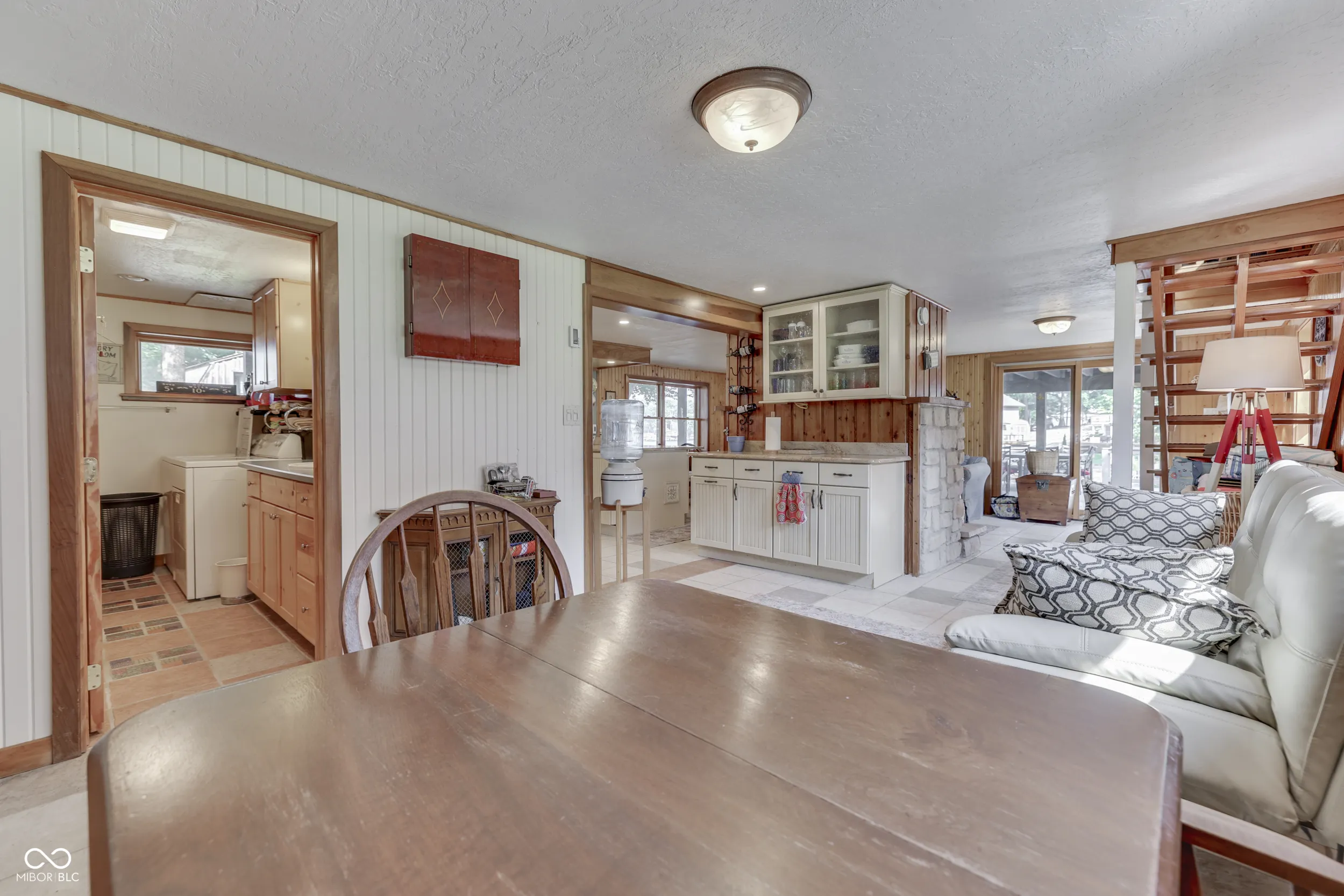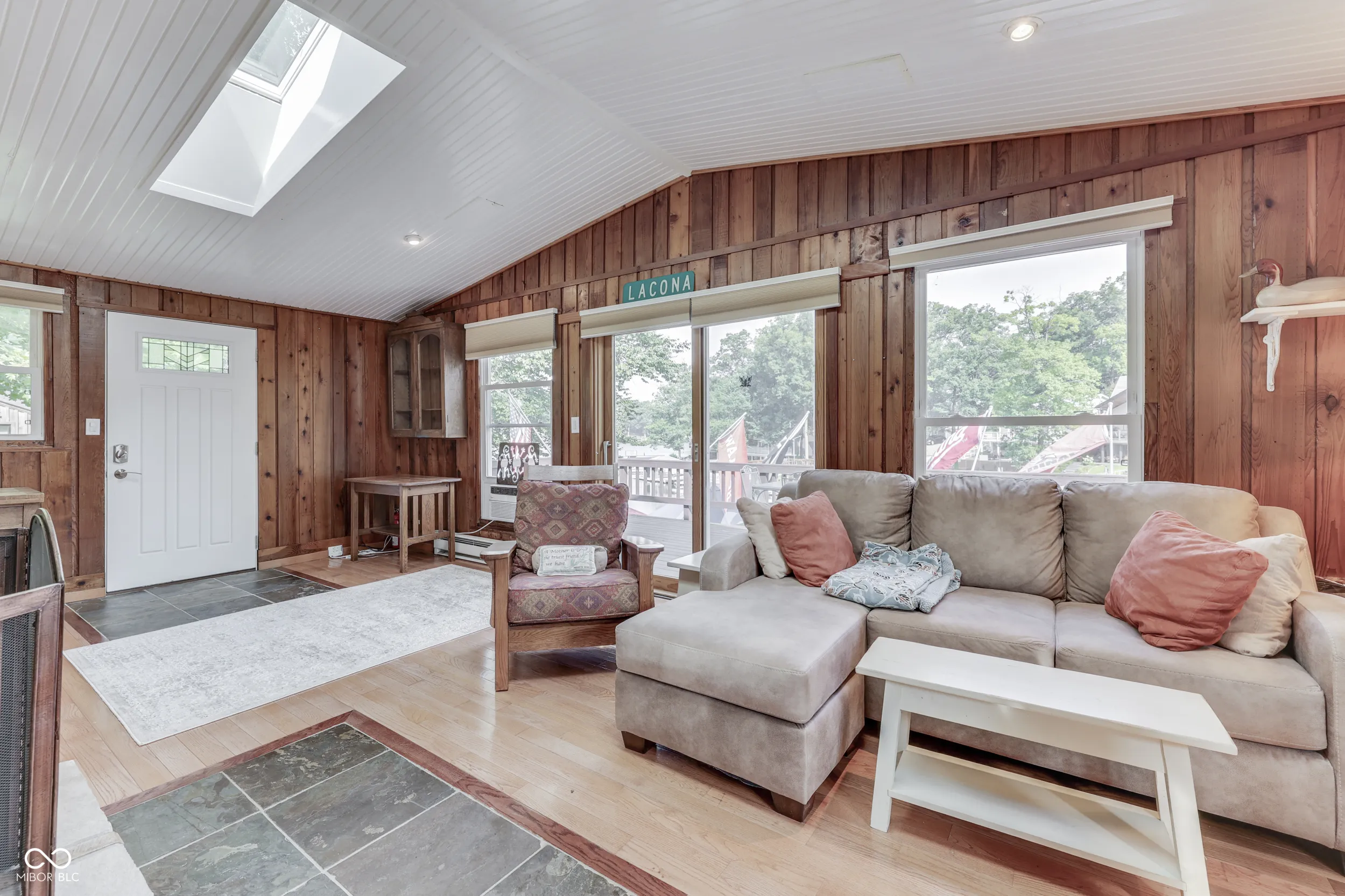 THE PERFECT WATERFRONT LOCATION on beautiful Sweetwater Lake. Savor the sunsets from the Western facing decks and covered porch. Two lot location with 120′ waterfront located on the protected cove water for safe for swimming and fishing away from the buzz of the main lake yet panoramic views of the main lake. Gentle walk to the newly remodeled dock with 2 covered slips w/lift for boats. Water’s edge storage for lake toys. The home is in excellent repair with a walk-out basement living area that includes kitchen, dining, family, sleeping bonus area, and bath. Ceramic flooring in walk-out basement for easy maintenance. Main level features 2 bedrooms, living room w/cathedral ceilings, full bath, hardwood flooring, and multiple decks. Build and enjoy fires in the masonry fireplaces on each level. Store your boats, autos, trailers, etc. in the detached 2 car garage w/ opener. Professional landscaping with newer circular stone paver firepit patio area offer evening gathering fun around the fire. Unmatched location welcome you to this attractive setting on the lake. *Dock area remodel not quite finished at listing date.