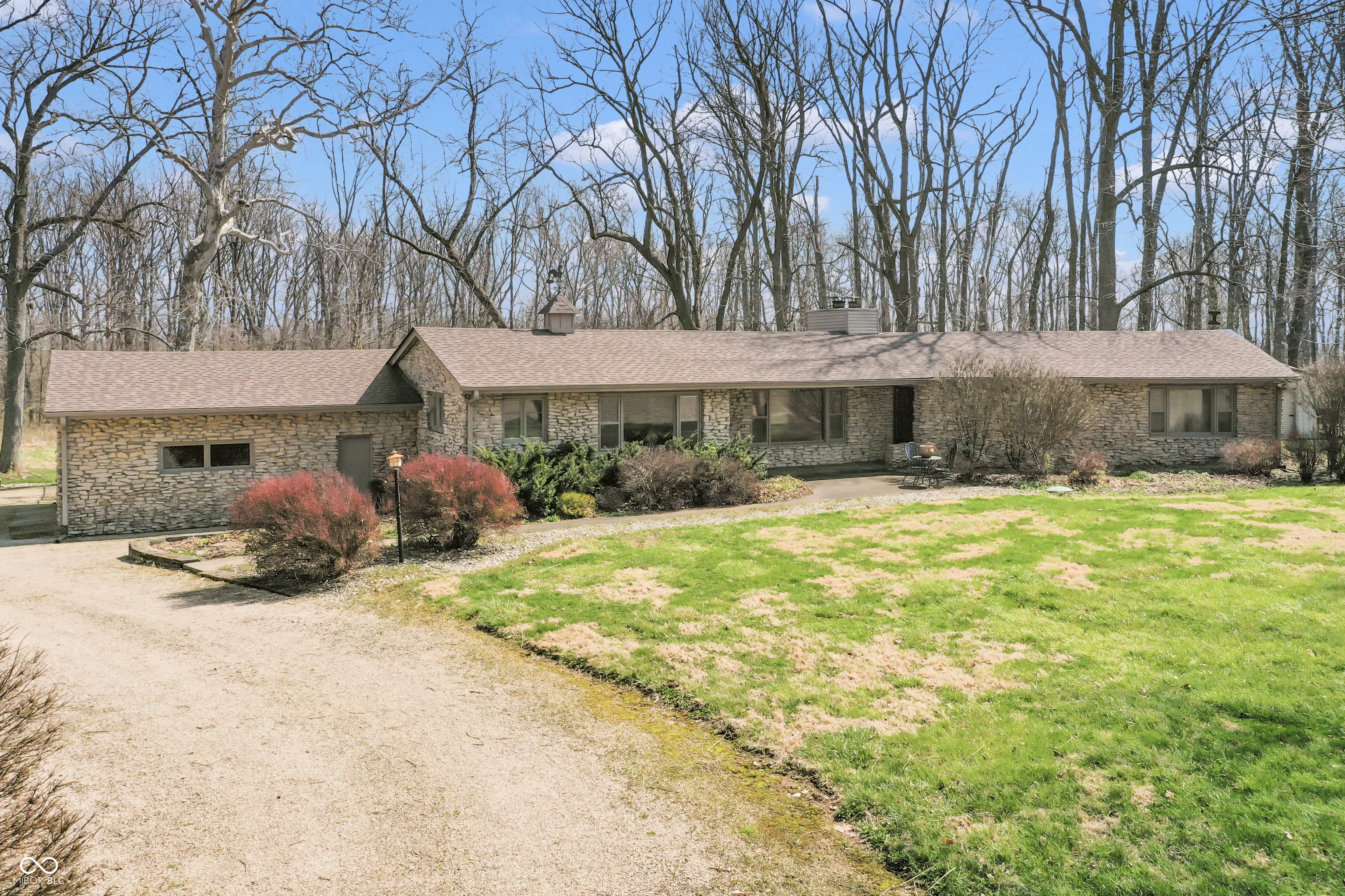 In 1955 General Electric’s Industrial Heating Department built a $5 million factory in Shelbyville and along with that project came GE executives from California, and so too, the birth of this stunning home in 1955. Reportedly built by one of the original GE executives, this 3 bed / 2.5 bath, 2,252sqft stone ranch, that’s kinda Mid-Century Modern’ish, certainly not traditional Indiana architecture, sits perfectly positioned on nearly 2 acres of park-like sanctuary, for every sunrise and sunset you can take in! Endless original GE touches remain throughout the home, for a perfect blend of history, complimented with years of meticulous maintenance and updating to today’s time. Recent updates include a complete new well system, roof, HVAC, reverse osmosis system, full rear fence, counter tops, hardware, fixtures, interior and exterior paint, flooring, patios, pergola, sunroom, a medical grade spa /hot tub, outdoor stone fire pit, a shed with electric, and a stocked 1/4 acre wildlife pond with a stone river! Its living space is perfectly laid out for family and entertaining, with a formal dining room, a living room, with nearly floor to ceiling windows overlooking the sanctuary, along with a 2-sided fireplace, and a guest bedroom wing tucked away from the heart of the home. The enormous primary bedroom steps directly out to its private patio, with spa, and enjoys the two-sided fireplace. While the sunroom directly overlooks the sanctuary, and steps out to the main patio area, every room in the home enjoys incredible views of one of Shelby County’s most beautiful areas! Whether it’s the remote country location, the literal sanctuary it sits on, or the stunning interior, this beautiful home is sure to please, and just minutes from I-74 and Hwy 9, for all things Shelbyville, Greenfield, Greensburg and Indy! Come enjoy the most amazing sunrises with your coffee, and the most amazing sunsets with your glass of wine, and make this historic beauty yours!!