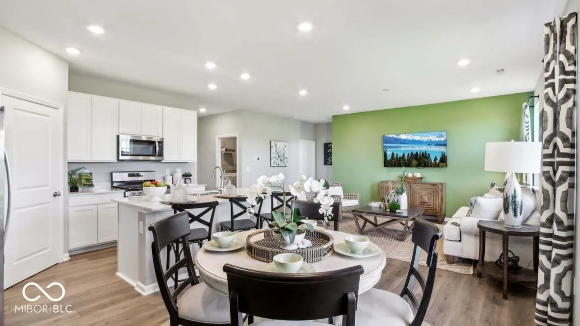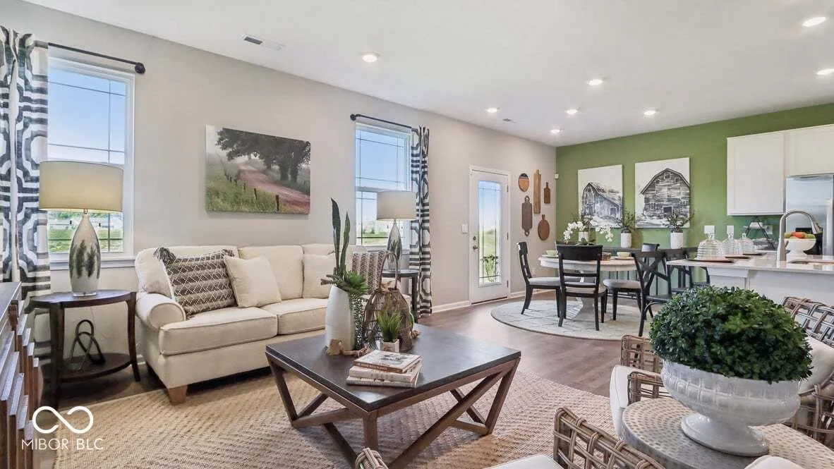 Discover the Harmony floor plan by D.R. Horton, America’s Builder-a masterfully designed single-level residence that seamlessly blends modern functionality with timeless style. This thoughtfully crafted home offers three spacious bedrooms and two full bathrooms within a bright, open-concept living environment, perfect for both daily routines and effortless entertaining. As you step inside, you will immediately notice the beautiful solid surface flooring that stretches across the main living areas. This high-quality flooring adds a touch of contemporary elegance and is specifically chosen for its durability and easy maintenance, making it ideal for busy households. The layout is engineered for both connection and privacy. Toward the front of the home, you will find two large guest bedrooms that share a well-appointed full bath. For the ultimate escape, the primary suite is secluded at the rear of the home, featuring an expansive walk-in closet and a luxury ensuite bath that provides a spa-like atmosphere to unwind at the end of the day. At the heart of the home is a gourmet-inspired kitchen featuring beautifully crafted cabinetry, a large built-in island, and ample counter space. Every D.R. Horton Indianapolis home also includes America’s Smart Home Technology, allowing you to monitor and control your environment via your smartphone, tablet, or computer. Experience a truly hands-free lifestyle and settle into a new, stress-free routine today! Photos are representative of the plan only and may vary as built.