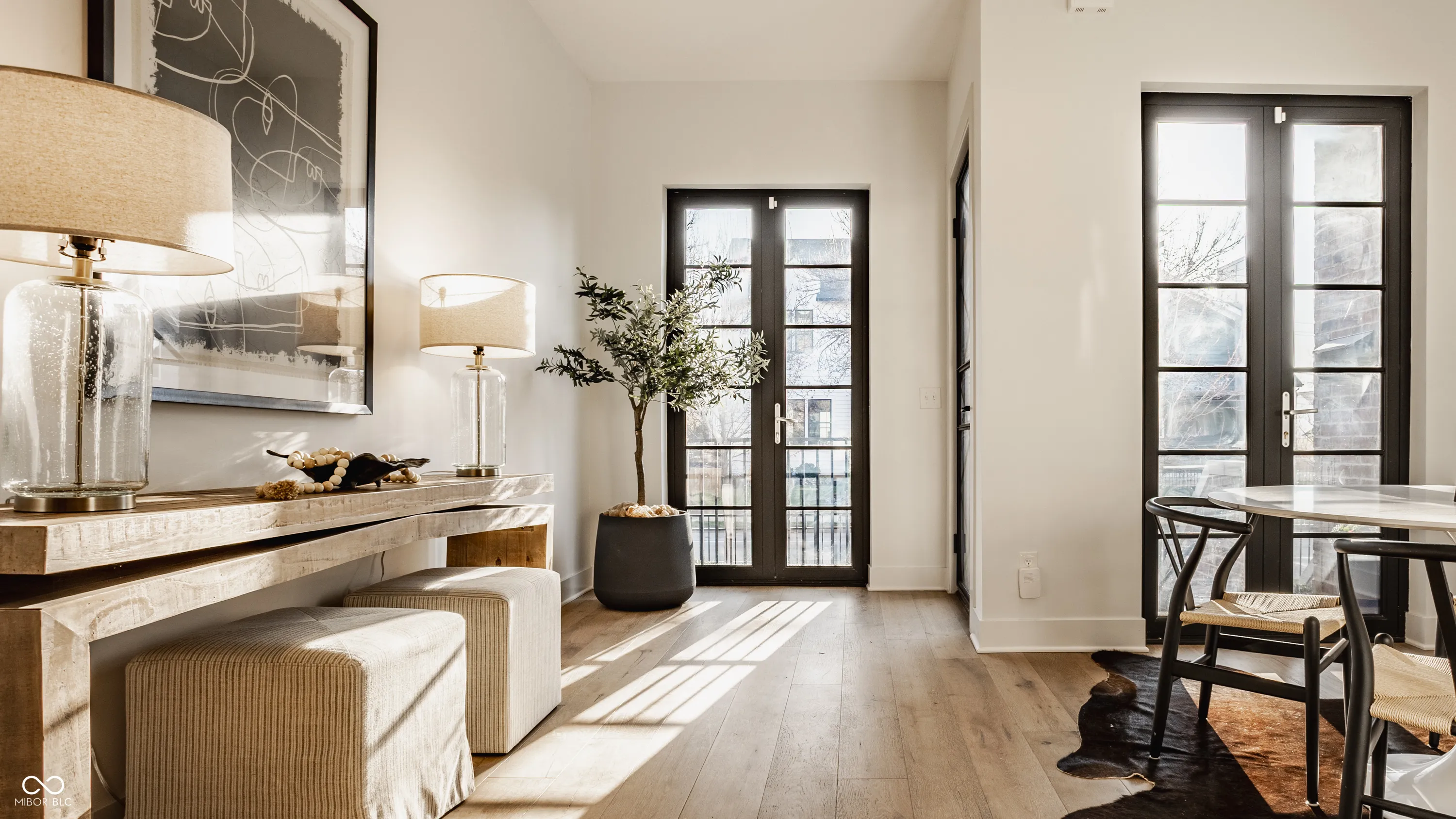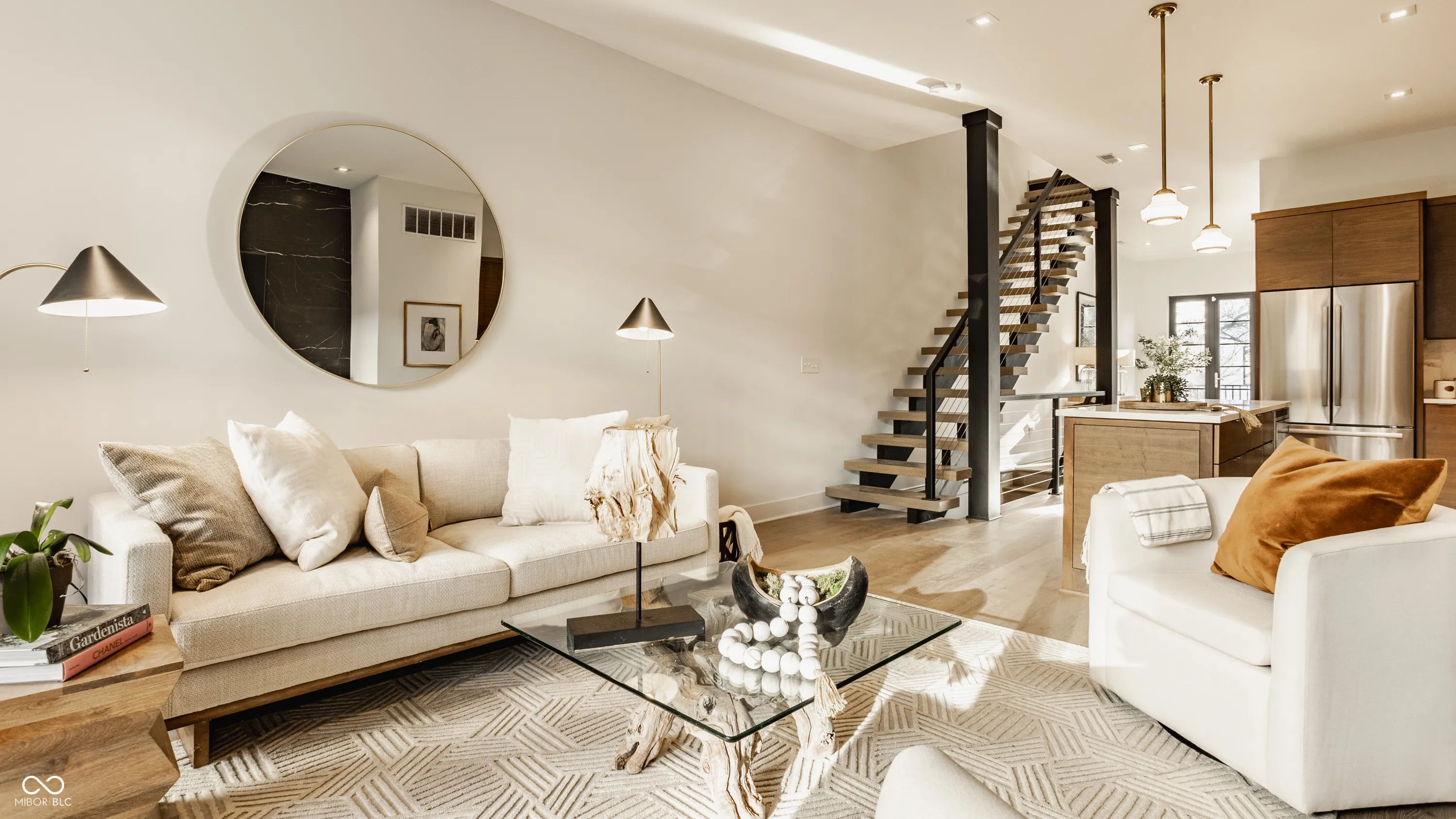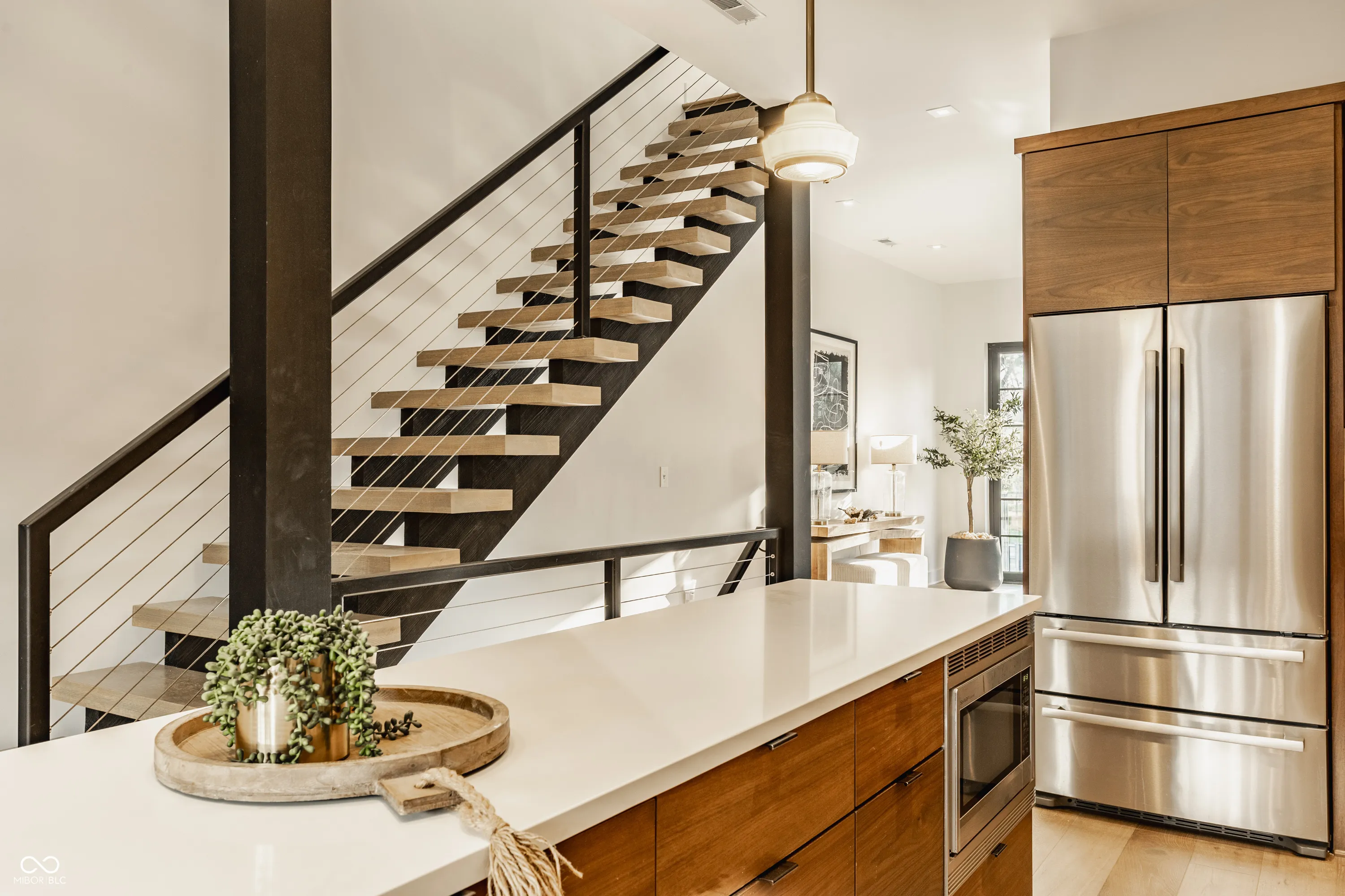 Welcome to luxury downtown living at its finest in the friendly, historic neighborhood of Herron-Morton! This custom townhome is filled with beautiful light and offers a sophisticated lifestyle with over 2,800 square feet of well-appointed living space, featuring soaring ceilings, hand-picked finishes and white oak wood floors. The main floor centers around a beautiful chef’s kitchen equipped with high-end Bosch stainless steel appliances and custom wood cabinetry that perfectly complements the quartz countertops and marble backsplash. Perfect for entertaining, the living area features a modern fireplace and folding glass doors that open completely to create a seamless connection with your private backyard and covered patio. A sculptural open staircase with wide wood treads connects all levels, including a large primary retreat with a spa-like bath and a custom walk-in closet. The third floor is a light-filled flex space with front and rear decks, plus an additional set of bi-fold doors leading to a private rooftop retreat with views of the downtown skyline; it’s perfect for an office, family room or additional guest space. This home lives large with two full bathrooms and two half bathrooms, including a half bath in the expansive finished basement that offers rare extra living space and storage. This brownstone-style retreat is just steps from local favorites like Tinker Street, Bocca, and Baby’s and is perfectly positioned near Mass Ave, Bottleworks, and the transformative, billion-dollar IU Methodist Hospital Project, representing a premier investment in one of downtown Indy’s most vibrant corridors.