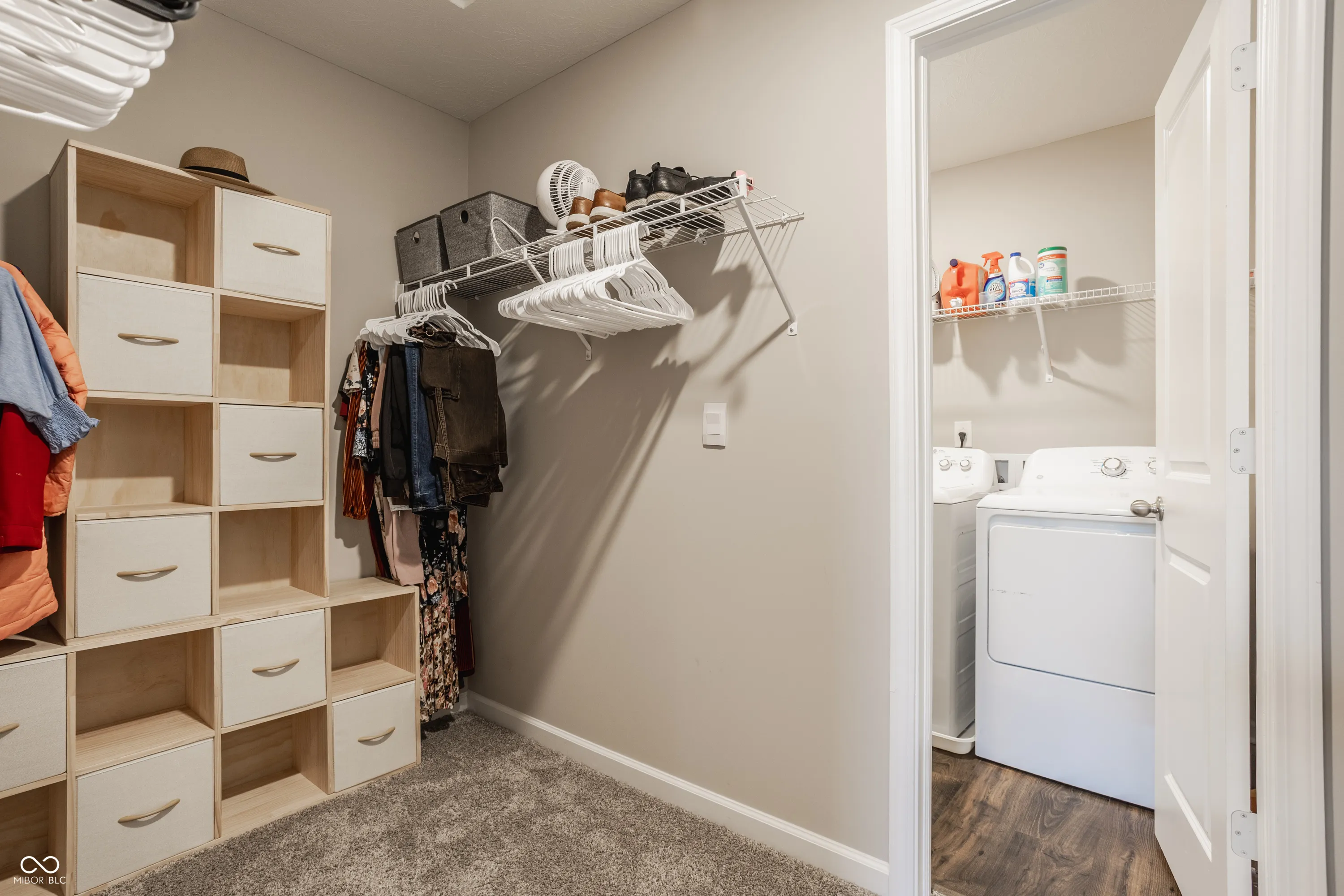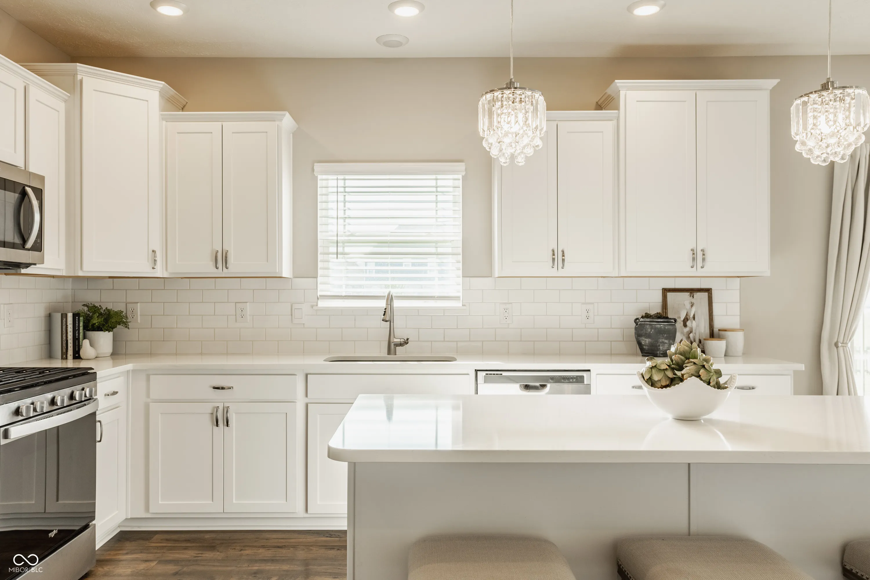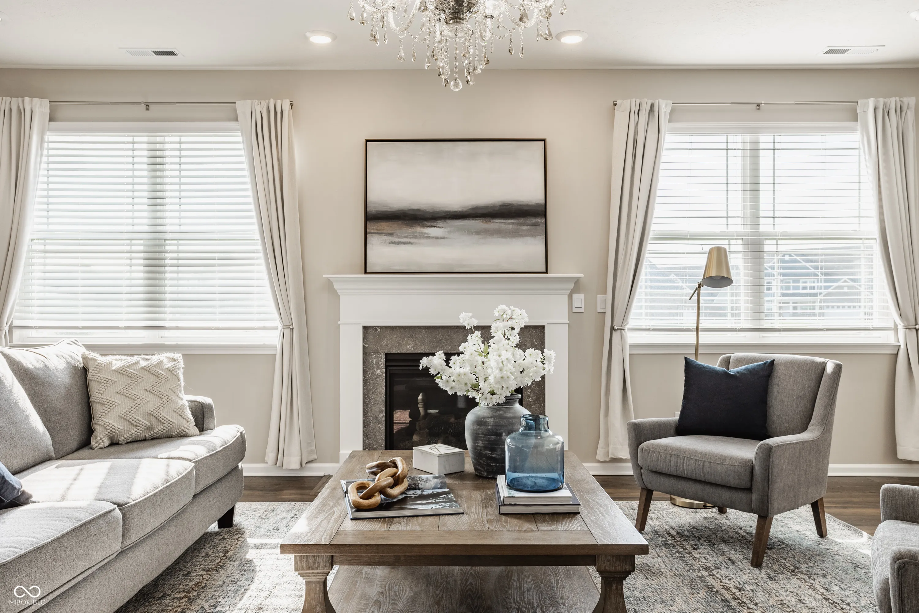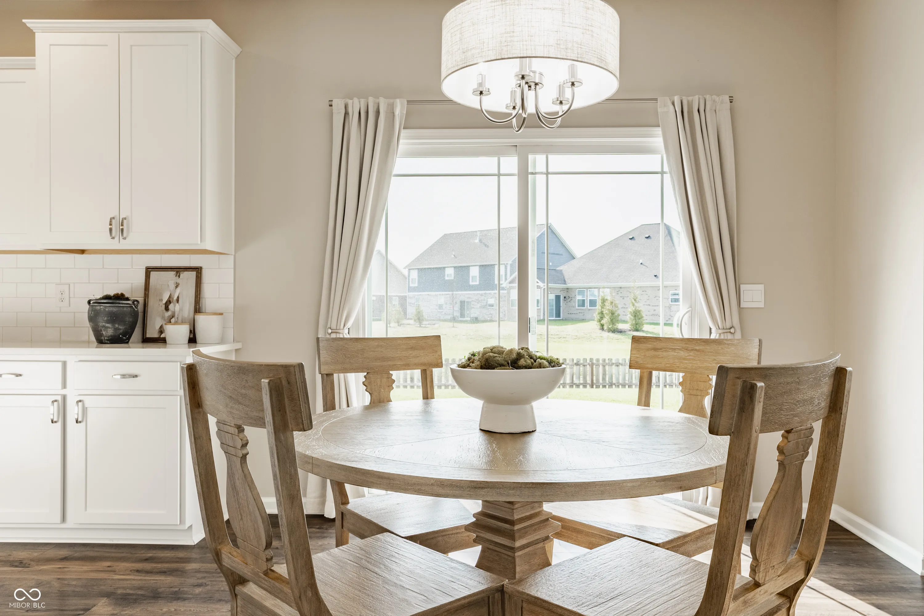 Welcome to this MODEL HOME WORTHY 3 BEDROOM + LOFT, 2.5 BATH home that offers a functional layout, modern finishes, and exceptional storage throughout. The MAIN LEVEL features a WIDE OPEN CONCEPT, ideal for everyday living and entertaining. The living room includes a COZY GAS FIREPLACE and STATEMENT CHANDELIER, flowing seamlessly into a LARGE DINING AREA that can accommodate virtually any size table and includes a COFFEE BAR/STORAGE SPACE. The kitchen is SLEEK AND MODERN with AMPLE CABINET STORAGE and a SPACIOUS PANTRY. Just off the 3 CAR GARAGE, you’ll find a BUILT-IN BENCH SEAT, UTILITY ROOM WITH STORAGE, and a CONVENIENT HALF BATH. At the front of the home, a PRIVATE OFFICE stands out with CUSTOM BARN DOORS, DESIGNER WALLPAPER, and BOARD AND BATTEN DETAILING. Upstairs offers 3 SPACIOUS BEDROOMS PLUS A LOFT, all with WALK-IN CLOSETS (even the loft). The PRIMARY SUITE FEATURES TWO CLOSETS and direct access to the LAUNDRY ROOM, which is also accessible from the hallway. The LOFT provides FLEXIBILITY for a SECOND LIVING SPACE, OFFICE, PLAYROOM, OR GAME ROOM. The home backs up to COMMUNITY GREEN SPACE, offering MORE USABLE YARD SPACE than typical new construction neighborhoods. Key highlights include: 3 CAR GARAGE, EXTENSIVE STORAGE THROUGHOUT, WALK-IN CLOSETS IN EVERY ROOM, and a FUNCTIONAL, OPEN LAYOUT.