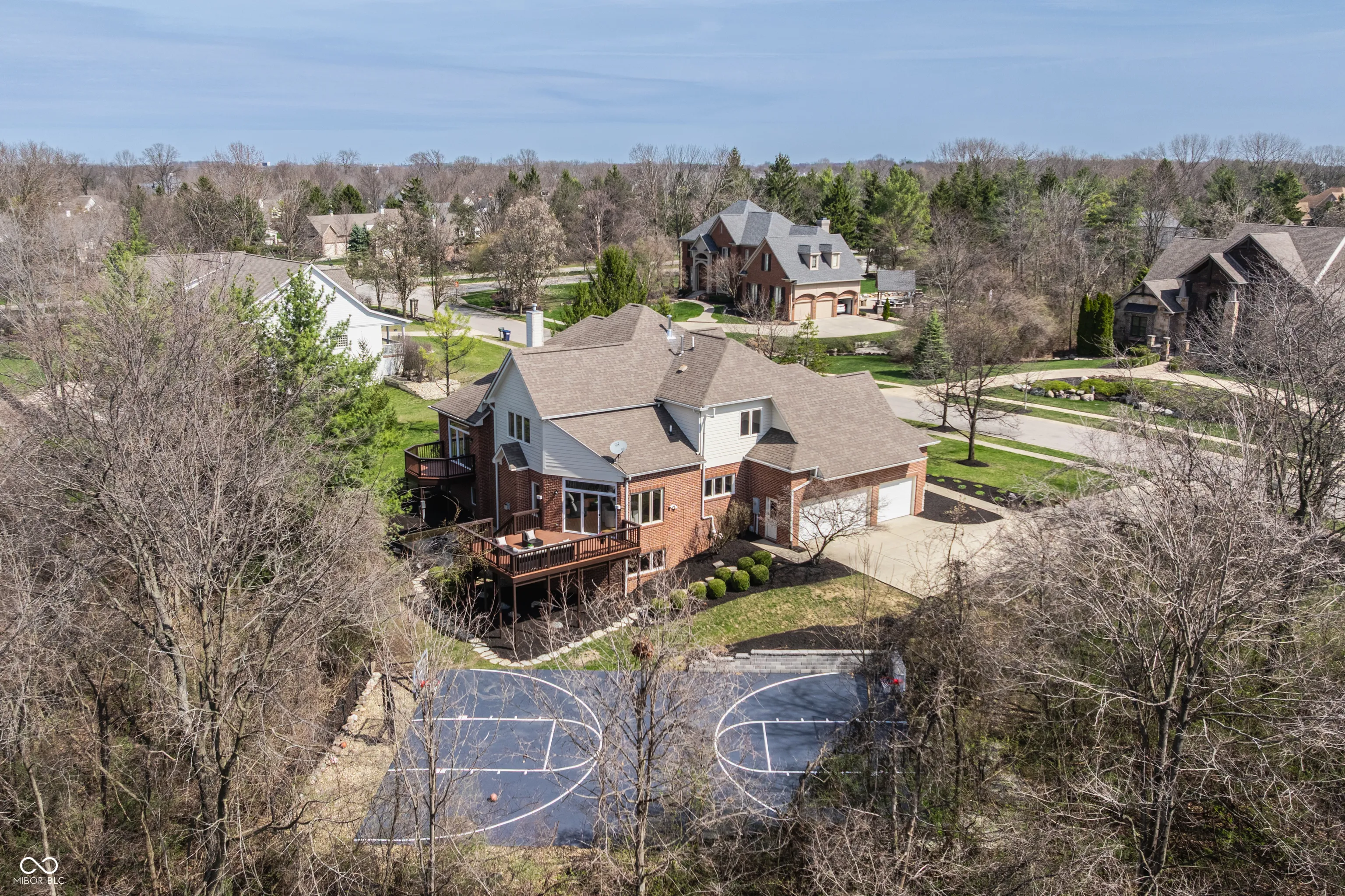 Flawlessly refreshed and thoughtfully designed, this luxury home in the prestigious Hawthorns Golf & Country Club – Hamilton Proper offers the perfect balance of elegance and everyday comfort. With 5 bedrooms and 4.5 baths, the home flows effortlessly for living, entertaining, and making memories. Morning light fills new windows and doors, highlighting new hardwood floors and custom moulding in the living, dining, and primary suite. Start the day on one of the sun-soaked wood decks with a cup of coffee, or gather friends for brunch in the remodeled kitchen, featuring quartz countertops, stainless steel appliances, modern lighting, and a custom dry bar ready for casual cocktails or celebrations. The walkout basement is built for fun and relaxation, movie nights in the theater space, games around the full bar, and a private suite for overnight guests. Every space is designed for connection and comfort. Outdoors, life is just as inviting. The patio with a built-in wood-burning fire pit sets the scene for cozy evenings, while two decks are perfect for morning coffee, evening reflections, or casual dinners with friends. A full-size basketball court adds an extra touch of fun for family weekends or friendly games with neighbors. From quiet mornings to laughter-filled afternoons and starry evenings by the fire, this home is designed for living fully and entertaining effortlessly. Located in one of Fishers’ most sought-after neighborhoods and a top-rated Indiana school district, it combines thoughtful design, spacious living, and seamless indoor-outdoor flow, all ready for everyday life and unforgettable moments.
