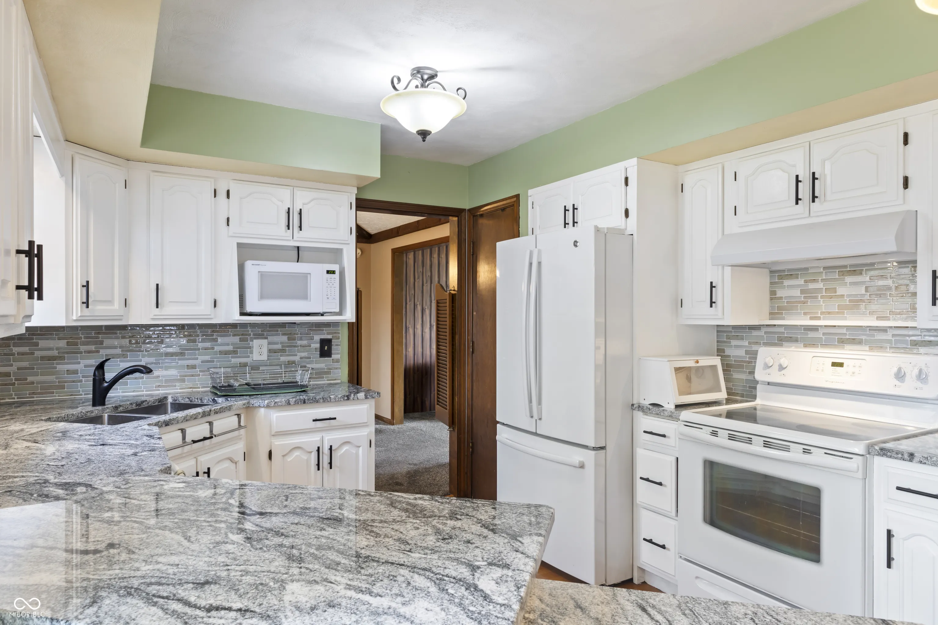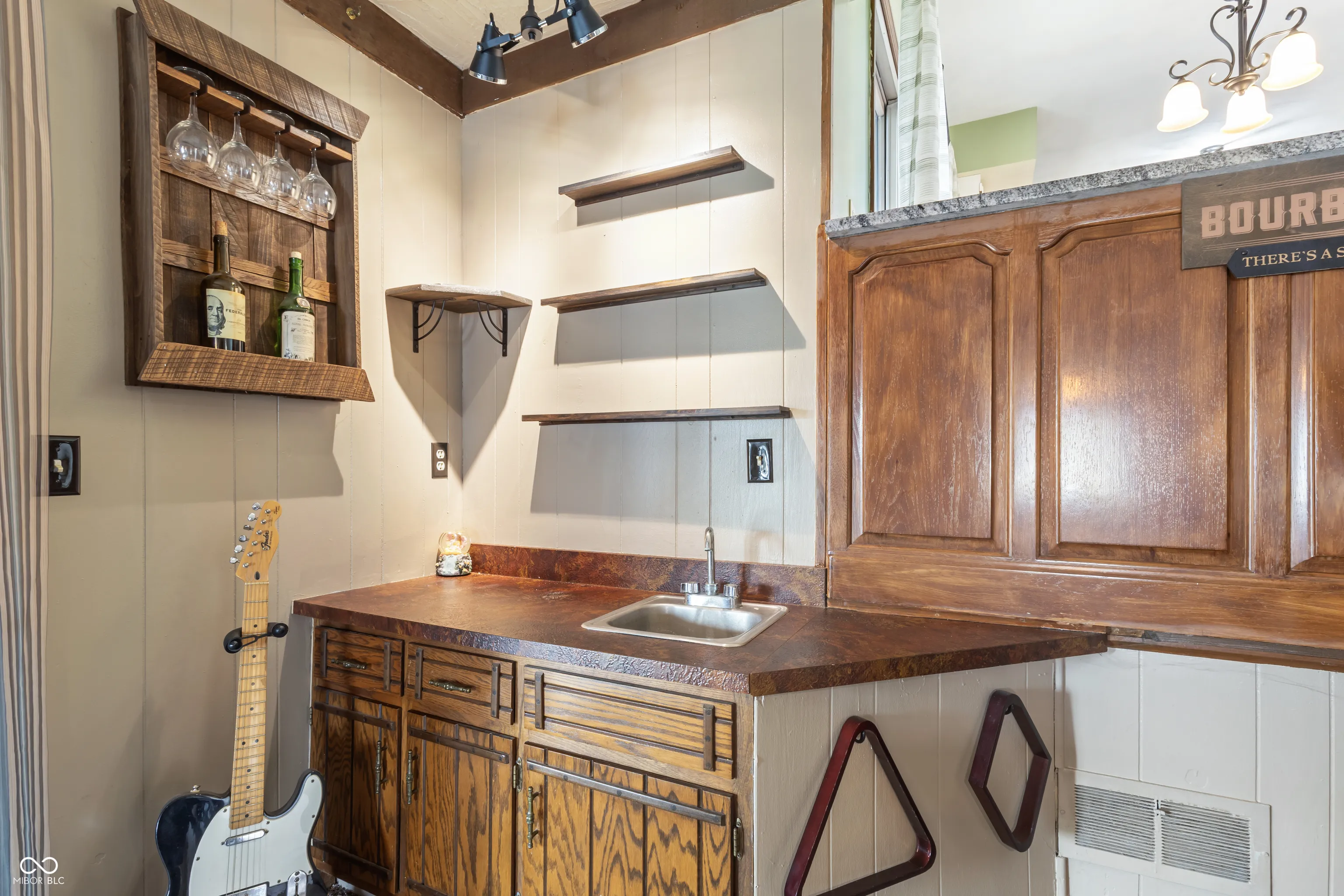Welcome to 302 Maple Ct, an exceptional tri-level home full of mid-century modern charm, situated on a quiet cul-de-sac in the desirable Glen Oaks community and Mt. Vernon Schools. Set on a spacious 0.34-acre lot, this home offers great curb appeal, curved driveway and a serene setting graced w/mature trees. Step inside to a unique entry featuring vaulted ceilings, chevron floors and striking wood accent beams. The spacious LR showcases a dramatic wall of windows and a unique wood accent wall, flowing seamlessly into the formal DR with its eye-catching, cathedral-inspired beam ceiling design. Through charming saloon doors, you’ll find a beautifully updated custom kitchen featuring granite counters, freshly painted cabinetry, tile backsplash, gleaming hardwood floors, and abundant storage. A convenient passthrough connects the kitchen to the impressive FR-ideal for entertaining. The FR is truly a standout space, highlighted by additional wood beam accents, a beautiful stone masonry wood-burning fireplace w/insert, and a built-in wet bar. Currently used as a game room, it offers flexible space that could easily transition into a cozy TV/movie room. Also on the lower level is a 3-seasons room with vaulted ceilings & windows on every wall, creating a bright and relaxing retreat. The hot tub-already in place-stays with the home, making it a perfect year-round escape. Upstairs, all bedrooms feature new carpet. The spacious primary suite includes an updated en suite. Additional bedrooms are move-in ready with large closets and ceiling fans, and the second full bath has also been tastefully updated. Outdoor living is just as impressive, w/a large wood deck enhanced by exterior lighting and a gorgeous stone fireplace w/ built-in bench-perfect for gathering and relaxing. The backyard provides plenty of space to entertain or unwind. This one-of-a-kind home blends character, comfort, and modern updates in a truly peaceful setting-don’t miss your opportunity to make it your own!