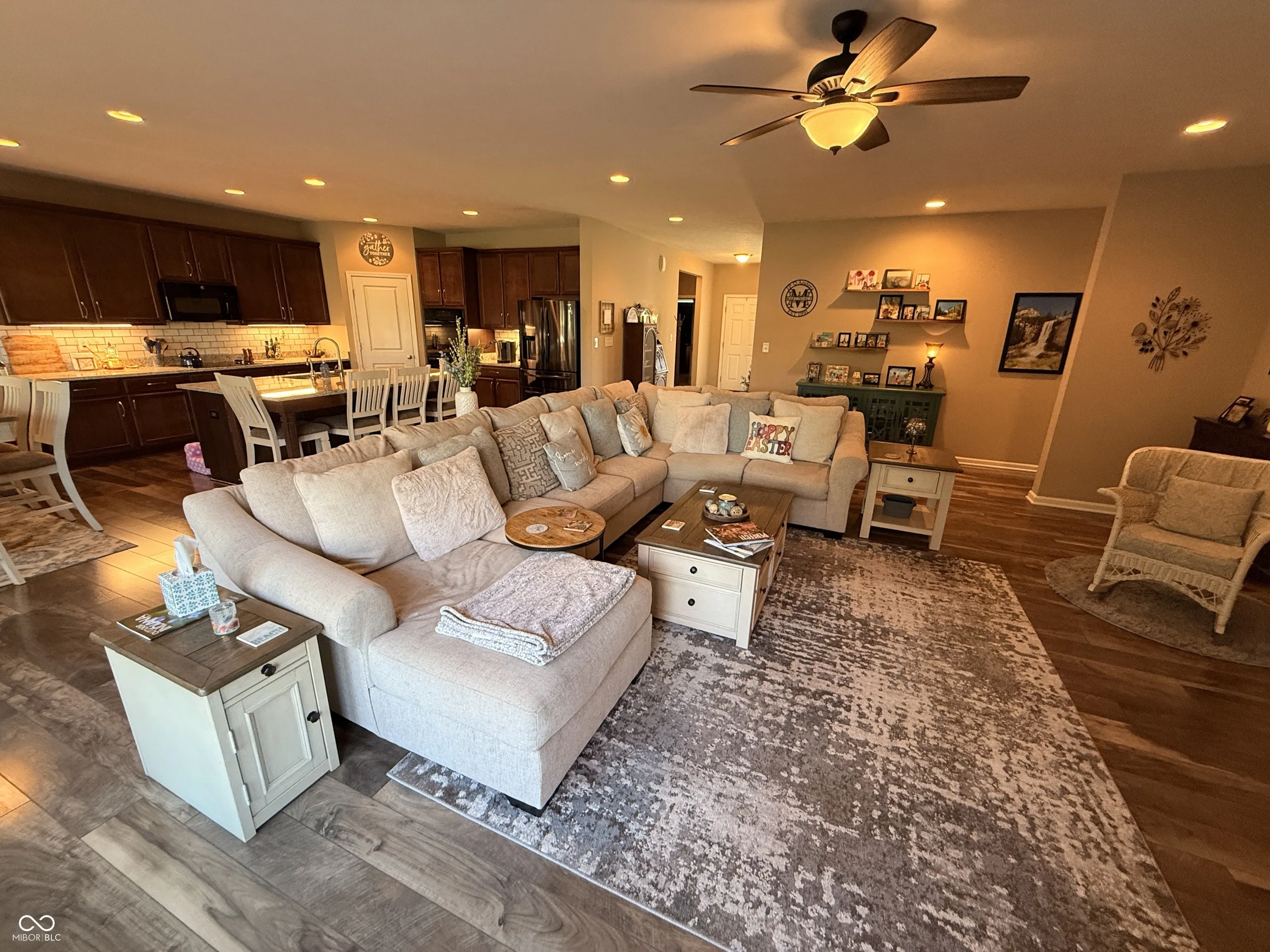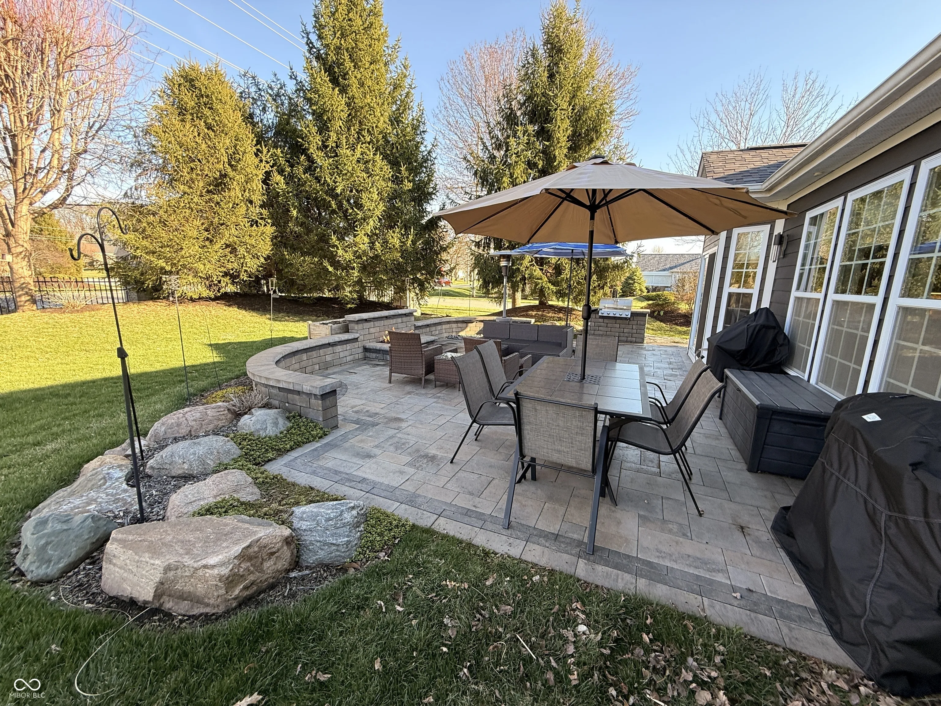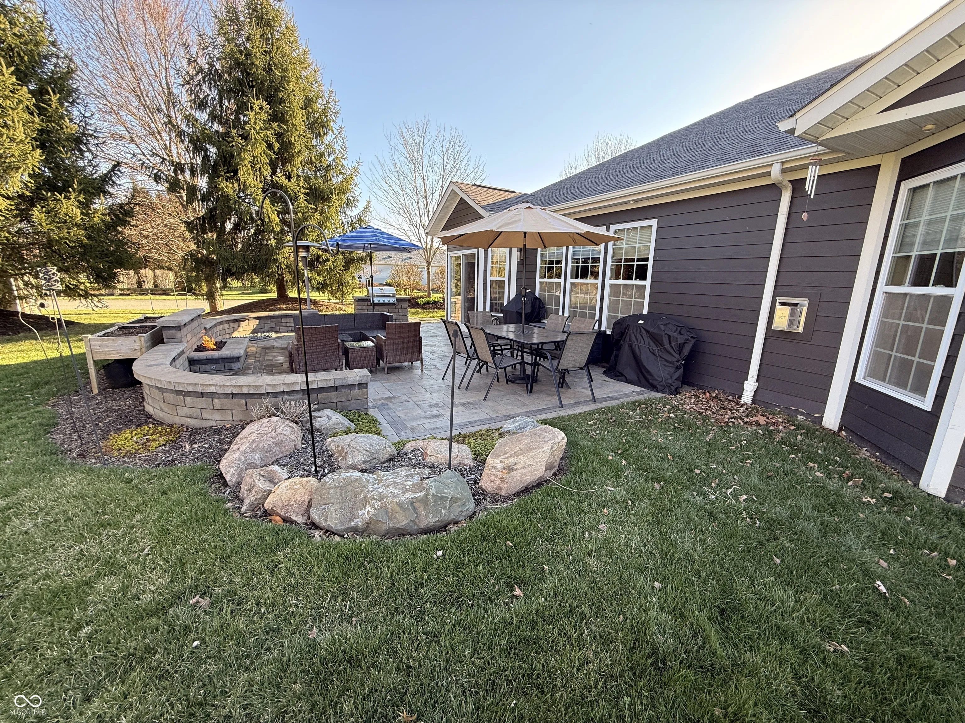 This is the one you’ve been waiting for. This stunning Center Grove luxury ranch sits on a premium corner lot, showcasing exceptional curb appeal with a beautifully landscaped yard, vibrant flowers, and mature trees that create a truly picturesque setting. Inside, you’ll love the open-concept layout with a desirable split-bedroom floor plan that offers both comfort and privacy. The backyard is a true retreat-an outdoor oasis featuring built-in mini waterfalls, a gas grill, outdoor gas fireplace and a spacious paver patio, perfect for relaxing or entertaining. The home’s exterior is wrapped in durable brick and Hardie plank siding, complemented by the convenience of a full irrigation system to keep everything looking its best. Step inside to find a thoughtfully designed interior highlighted by a massive kitchen island, solid surface countertops, and a stylish tiled backsplash-all flowing seamlessly into the main living areas. Hardwood floors run throughout most of the home, and custom window coverings add an extra touch of quality and style. The oversized 2.5-car garage is a standout feature, complete with an epoxy floor and a sliding barn door that leads to an additional 4×20 storage area-ideal for tools, hobbies, or extra space. Additional updates include a new furnace and A/C (2023), new roof (2024), and water heater (2020), offering peace of mind for years to come. There’s also a large 15′ x 10′ floored attic storage area for even more convenience. This immaculate home blends luxury, functionality, and outdoor beauty-don’t miss your opportunity to make it yours.
