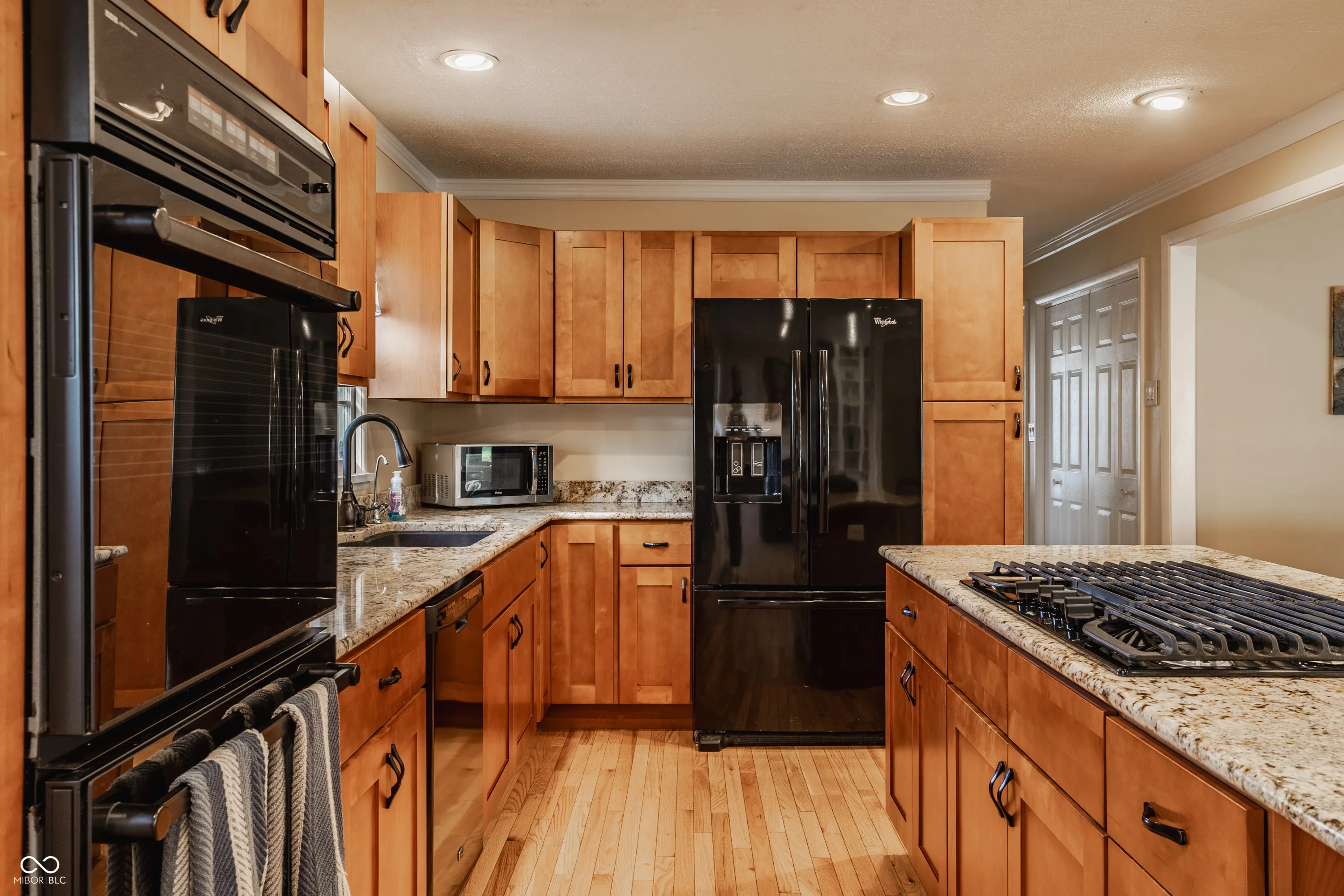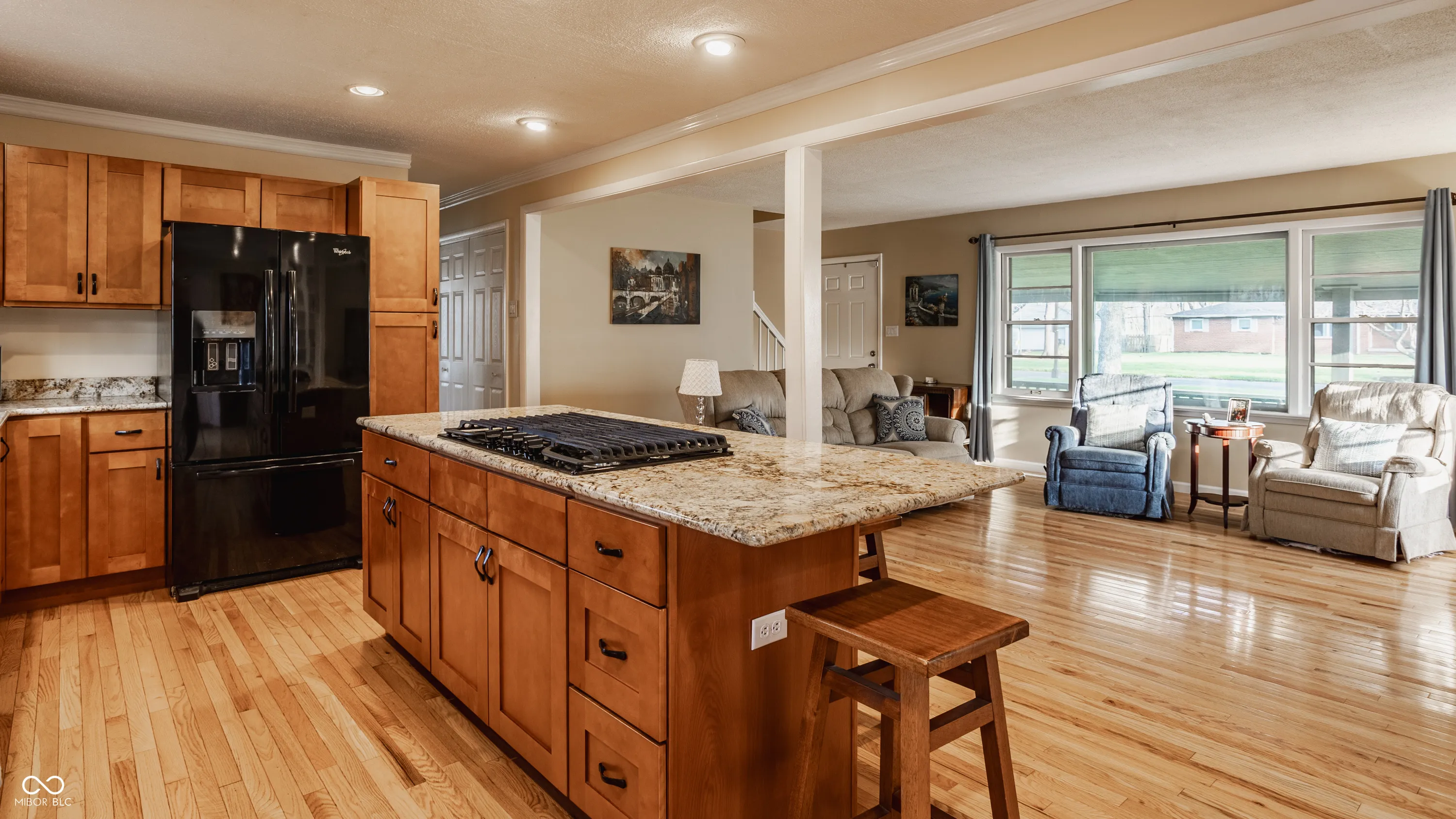 Great curb appeal and a quiet street set the tone for this well-maintained 4-bedroom home with 2 full baths, featuring a large covered front porch and a huge backyard. The spacious front porch invites you to slow down and enjoy morning coffee, evening conversations, and a true sense of neighborhood living. Inside, hardwood floors and abundant natural light create a warm, inviting feel, while the open floor plan offers easy flow for both everyday living and entertaining. The chef’s kitchen is a standout with rich cherry cabinetry, granite countertops, double ovens, a gas cooktop, ample prep space, and a layout that opens seamlessly to the main living areas. Just off the kitchen, a charming hearth room-perfectly suited for dining or relaxed gathering-features a brick fireplace flanked by built-in shelving, creating a cozy and functional focal point. A beautifully remodeled bath showcases a step-in glass shower with designer tile, adding a fresh, upscale touch. Generous bedroom sizes provide flexibility for family, guests, or a home office. Ideally located close to schools, shopping, and dining, this home delivers the perfect blend of comfort, style, and convenience.