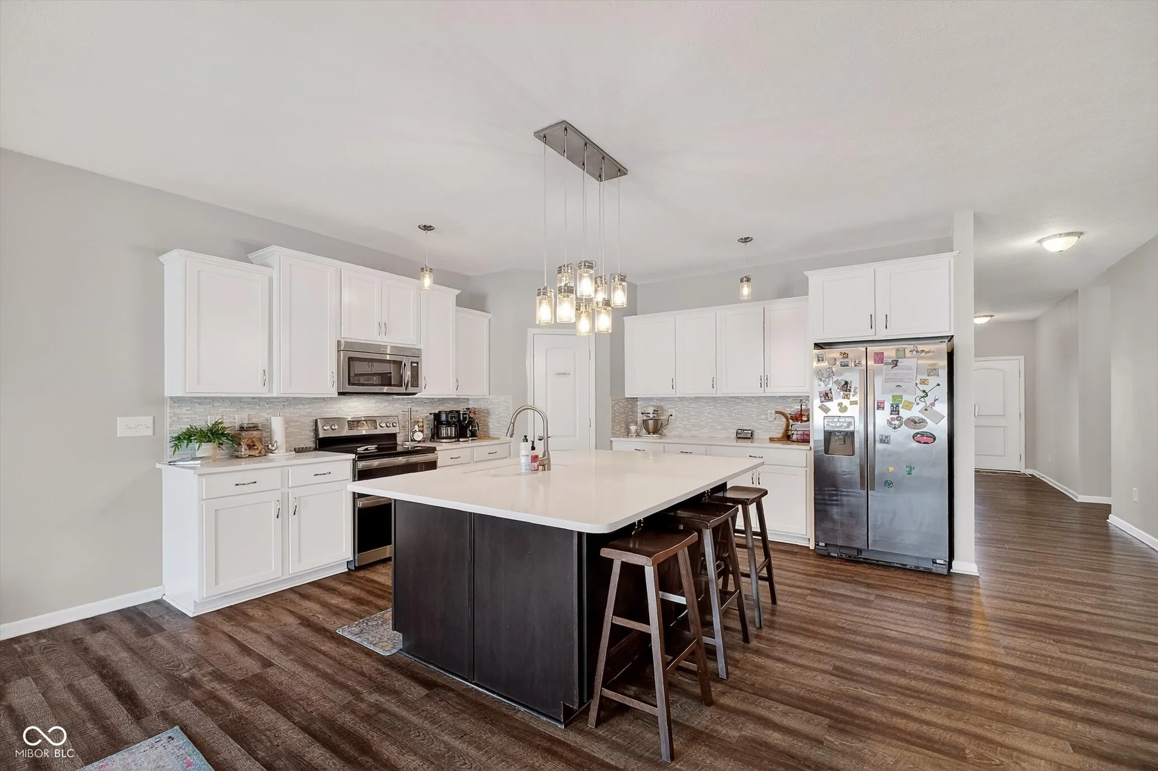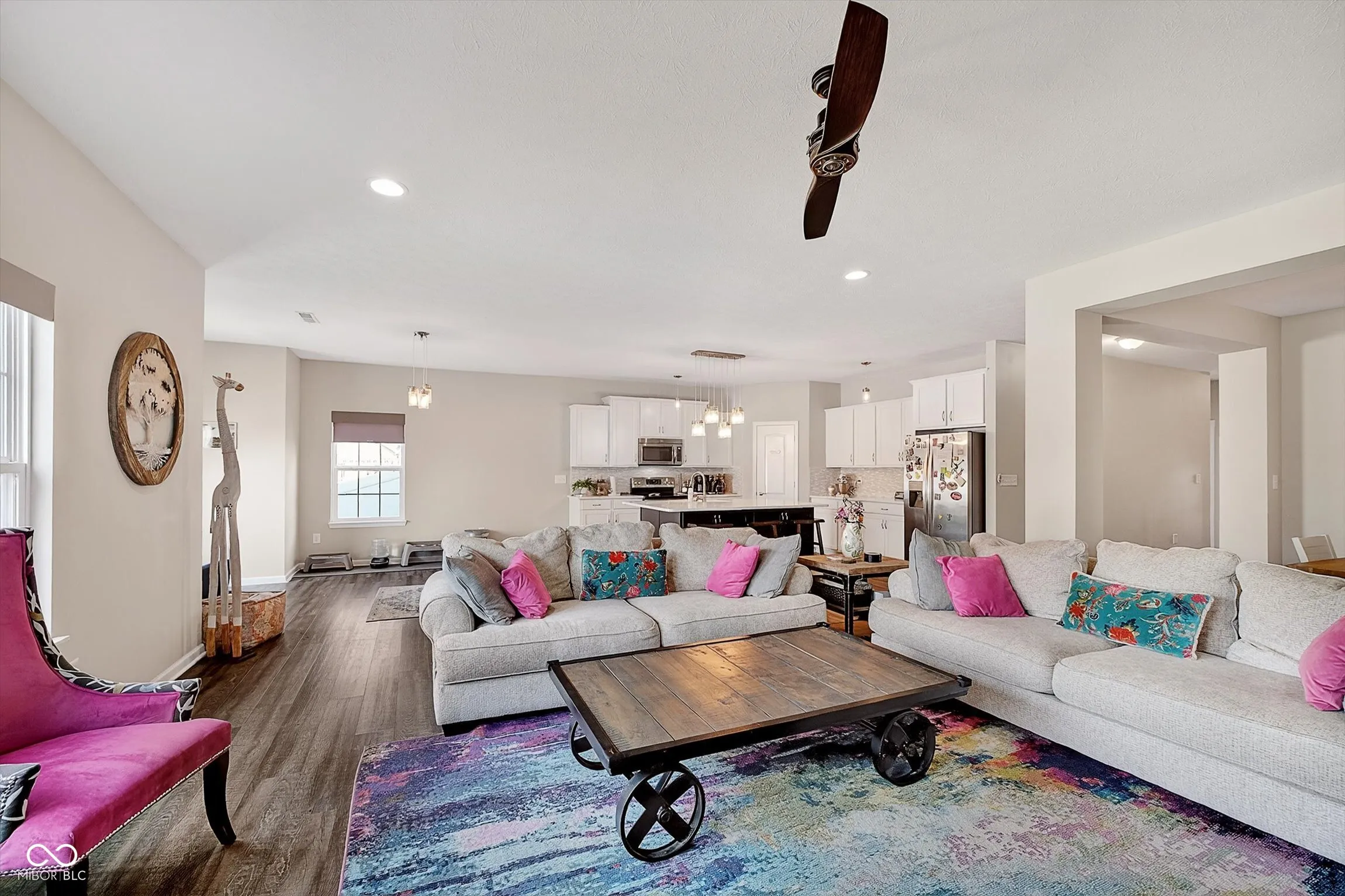 This single family attractive property maintains a great condition, offering an inviting presence from its very address. Encompassing 2394 square feet of living area, this residence offers an expansive open floor plan designed for comfortable daily living and gracious entertaining. The single-story layout provides ease of access throughout, featuring four well-appointed bedrooms. Two full bathrooms and one half bathroom cater to everyday practicalities, ensuring convenience for all occupants. The culinary heart of the home is distinguished by a sophisticated kitchen, showcasing a large kitchen island and a functional kitchen bar, ideal for preparing meals and engaging in casual conversation. Center island includes two overhangs for numerous barstools and deep cabinets for extra storage. Adorned with elegant shaker cabinets. Seller had 2′ added to north side of home along with 2′ add to garage. Make sure to check out the middle bedroom closet that expands 14′. New carpet and paint completed in fall of 2025. Privacy fence, large deck, and added area added for grilling area in the back yard great for get togethers.