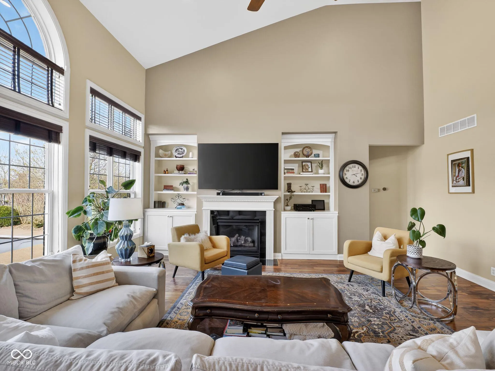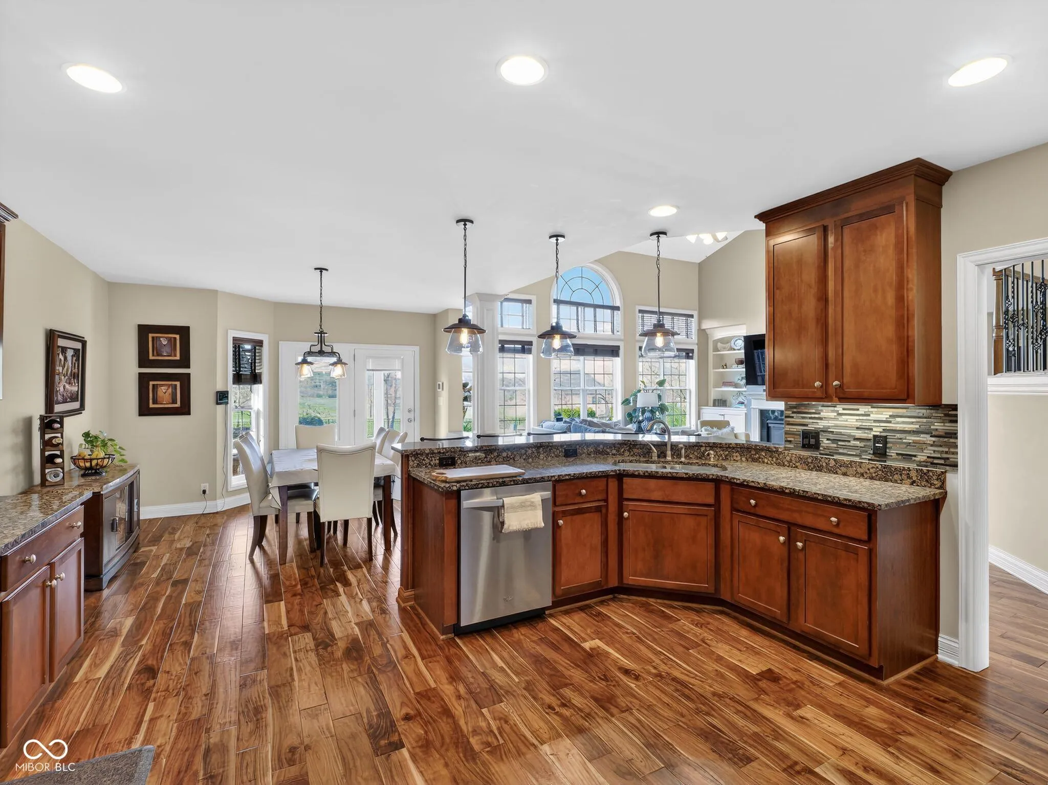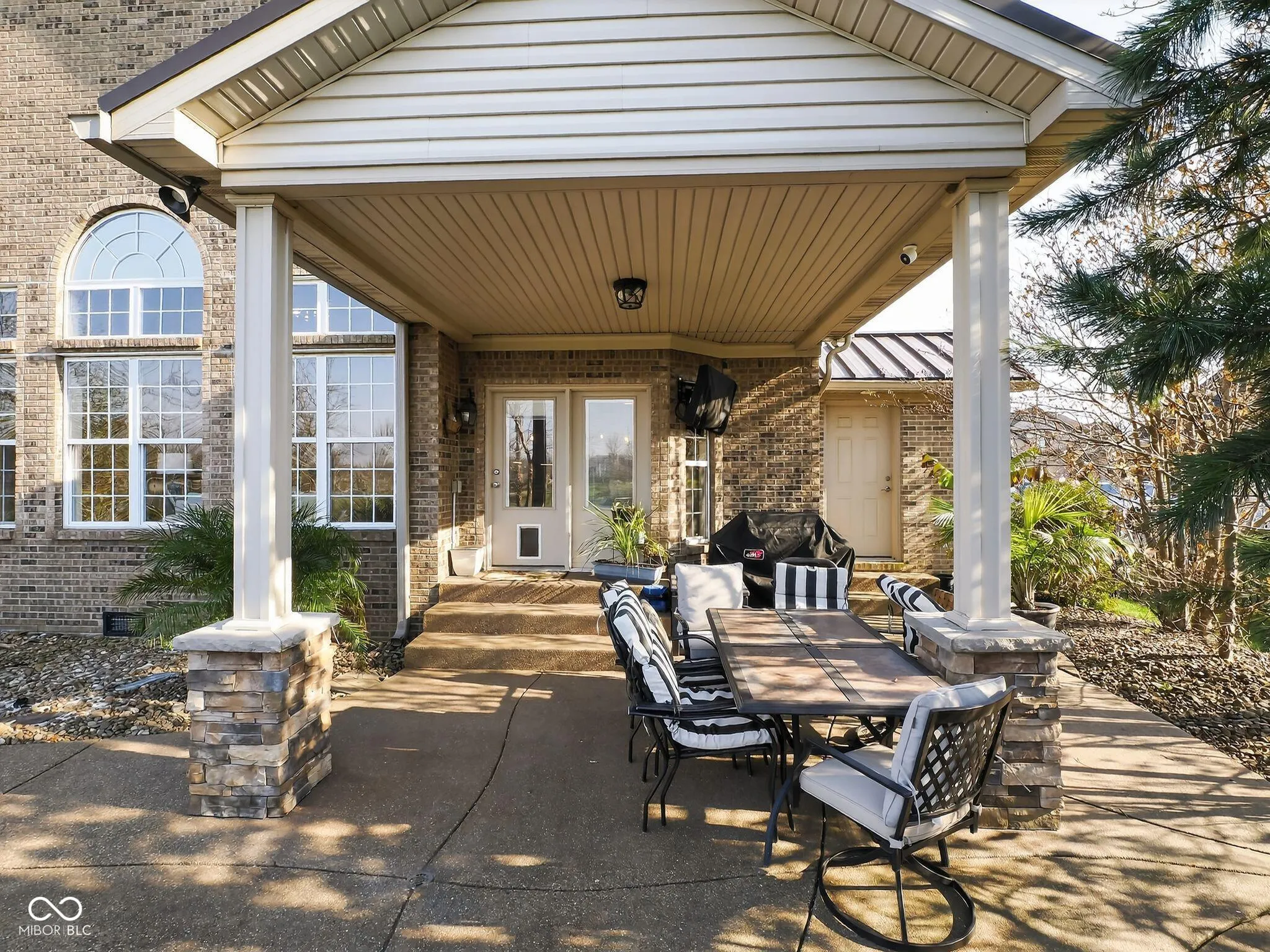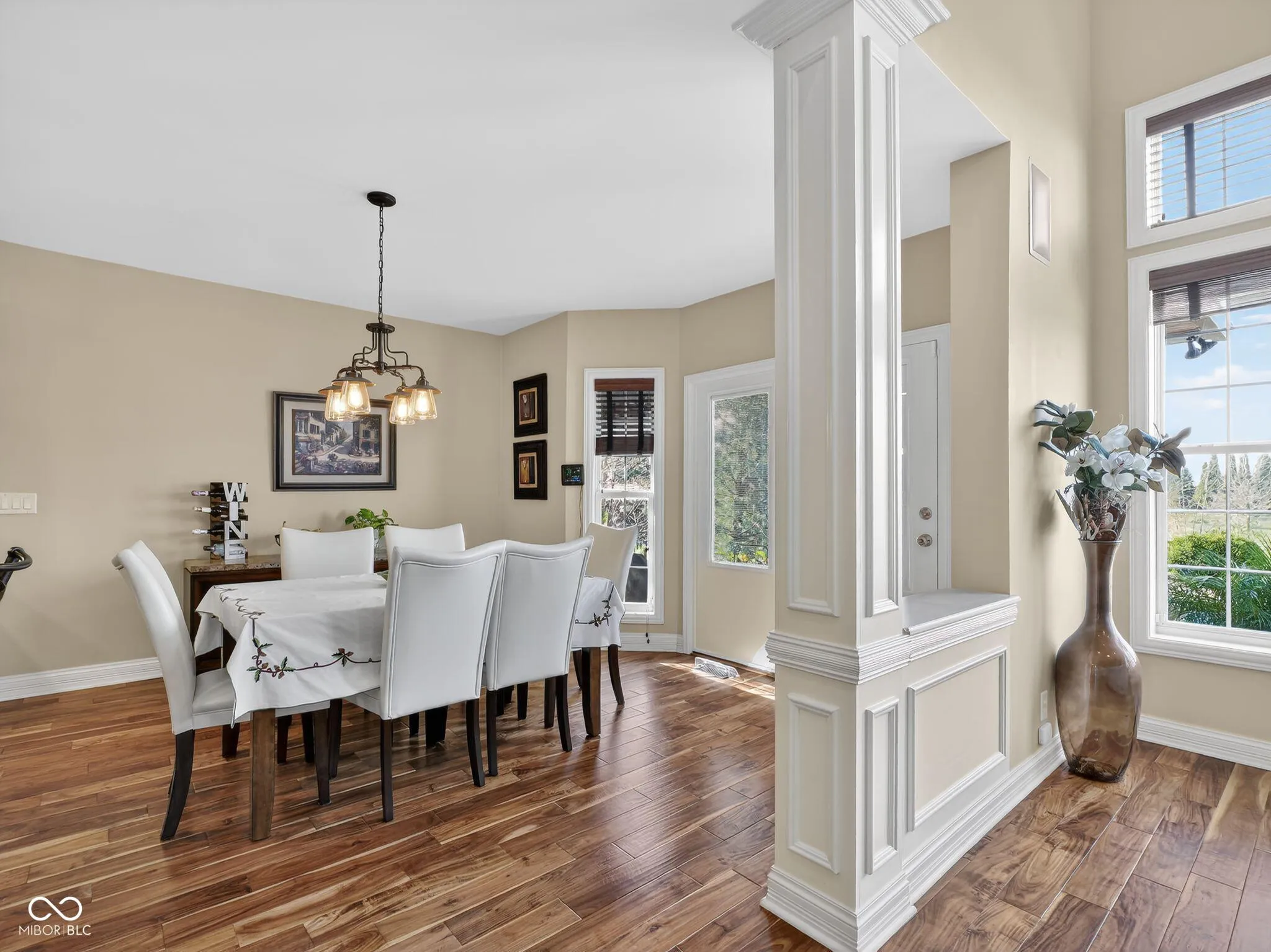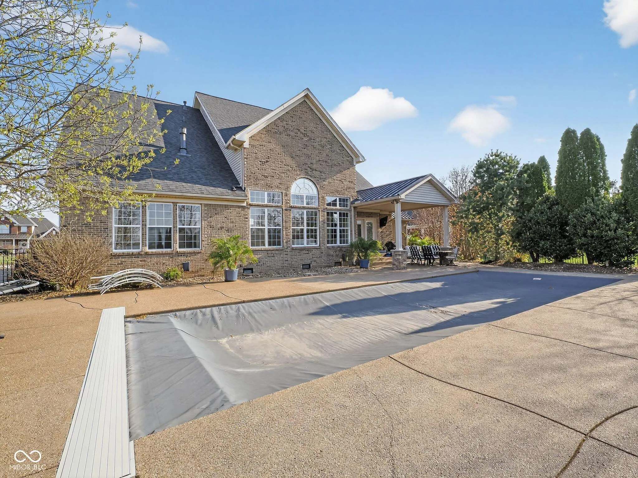 Welcome to this charming home located on Victoria Bluffs Dr in Newburgh. This beautiful 4 bedroom, 5 bath home has amazing backyard views including lake/pond views. Upon entering the foyer, you’ll immediately notice the high ceilings and crown molding. To the left, the formal dining area is the ideal space for dinners and gatherings and to the right you will find the home office, both with accent hardwood floors. The foyer transitions into a spacious living room featuring built-in shelving and a cozy gas fireplace. A conveniently located half bath is situated just off the foyer and across from laundry/mud room. Overlooking the living room, the eat-in kitchen has a raised bar, stainless steel appliances, induction cooktop and lots of cabinetry. Just off the kitchen, an informal dining area provides additional dining space. The owner’s suite features large windows creating an airy and elegant atmosphere, while the luxurious en suite bathroom with dual vanities, a relaxing tub, and a stunning double walk-in shower, providing a private retreat of comfort. The second floor bedrooms each feature spacious walk-in closets. Upstairs, the spacious fourth bedroom has its own bath for added convenience. There is also a library/ game room on second floor. The backyard is a true oasis, featuring a covered patio with salt water heated pool for entertaining and outdoor dining. The inground pool has an automatic cover, complemented by beautiful landscaping creating a serene and inviting outdoor retreat. A fifth bathroom was added to the house with access from outside while enjoying the pool.