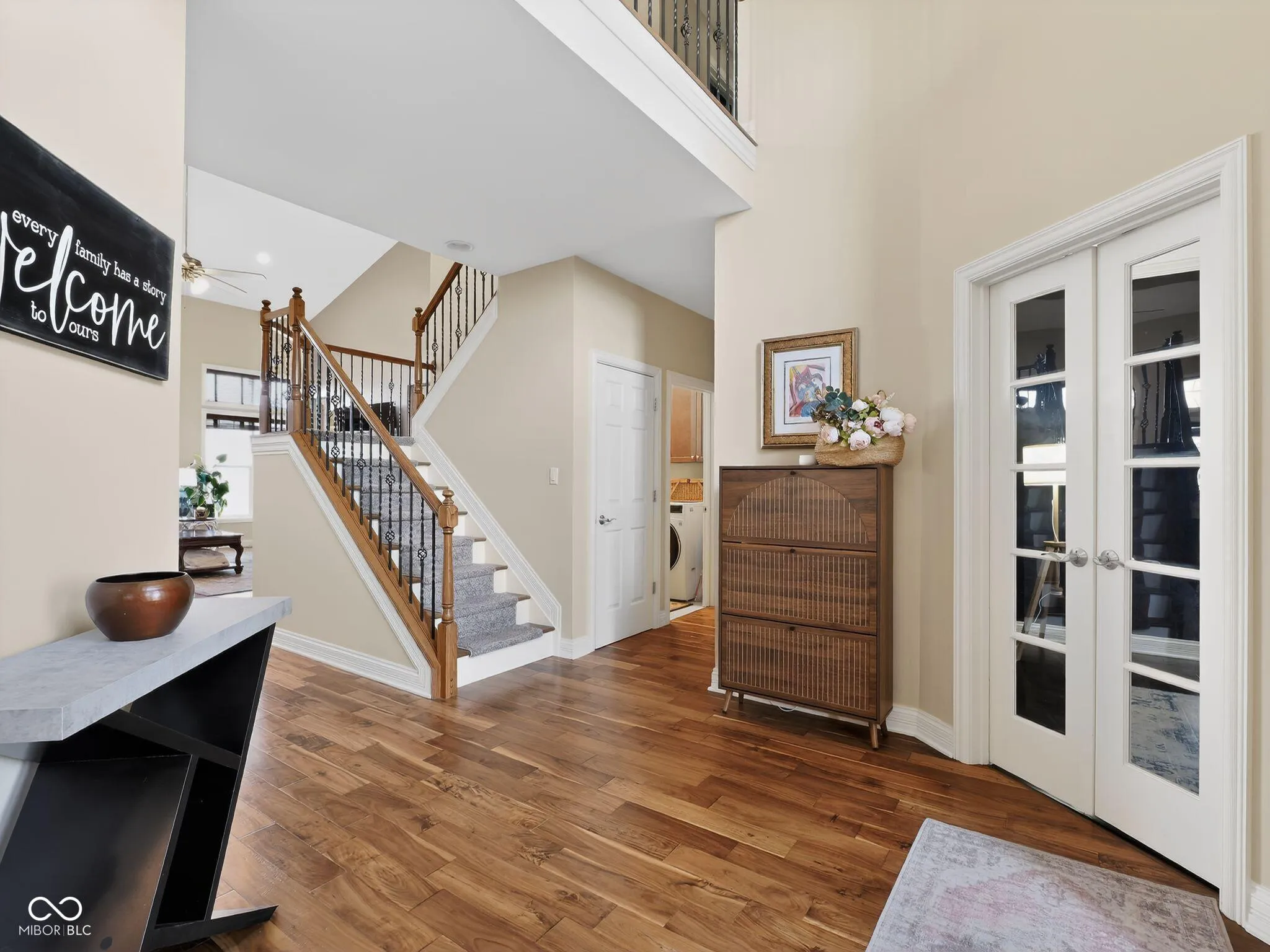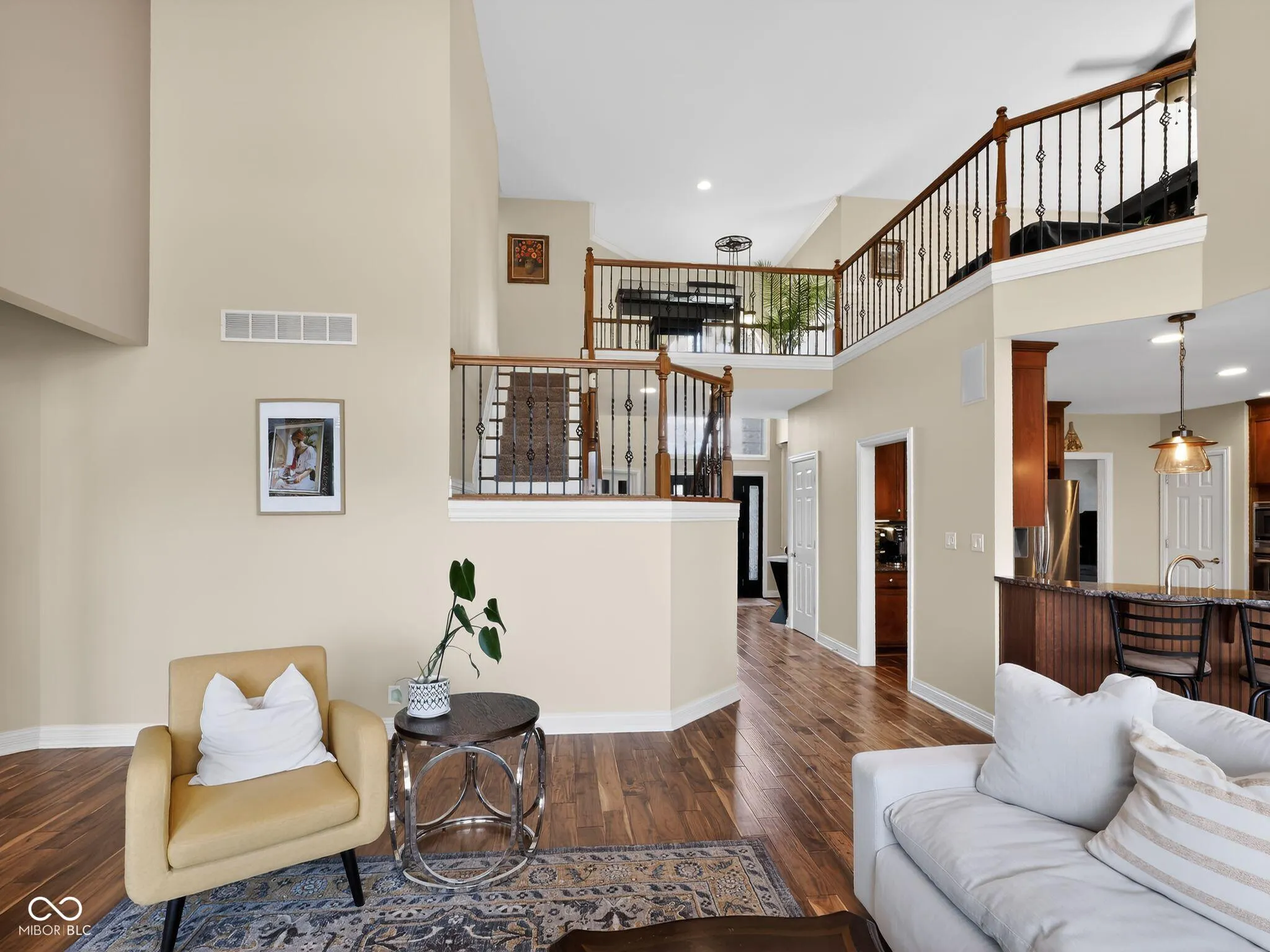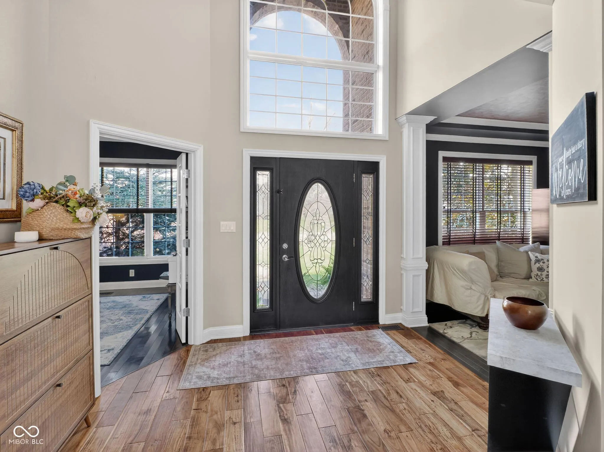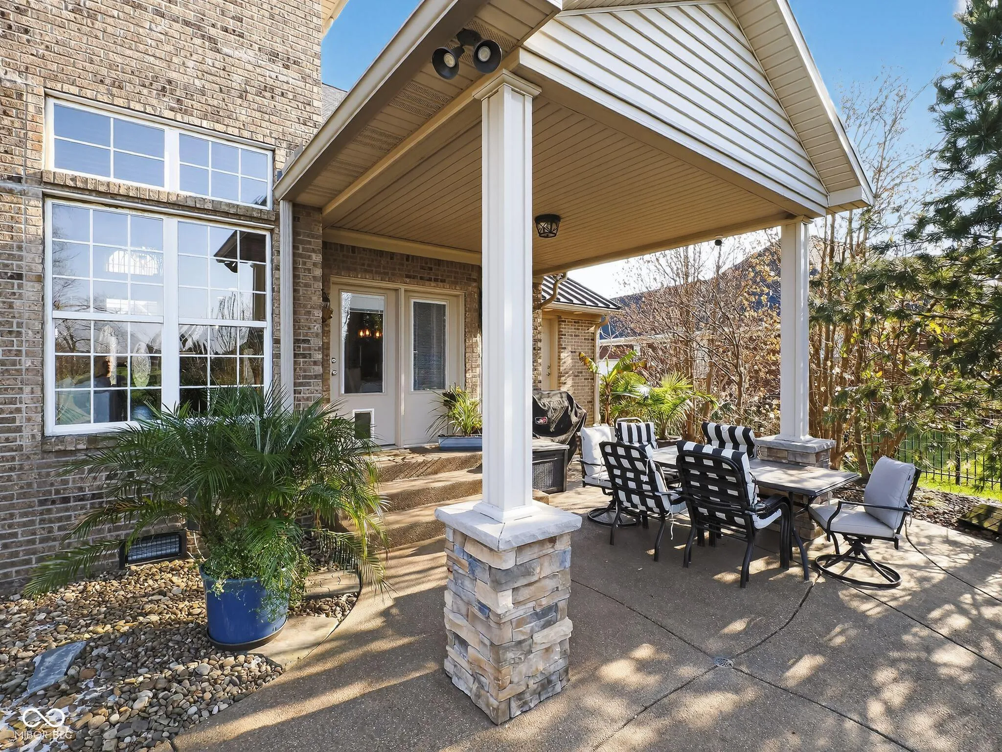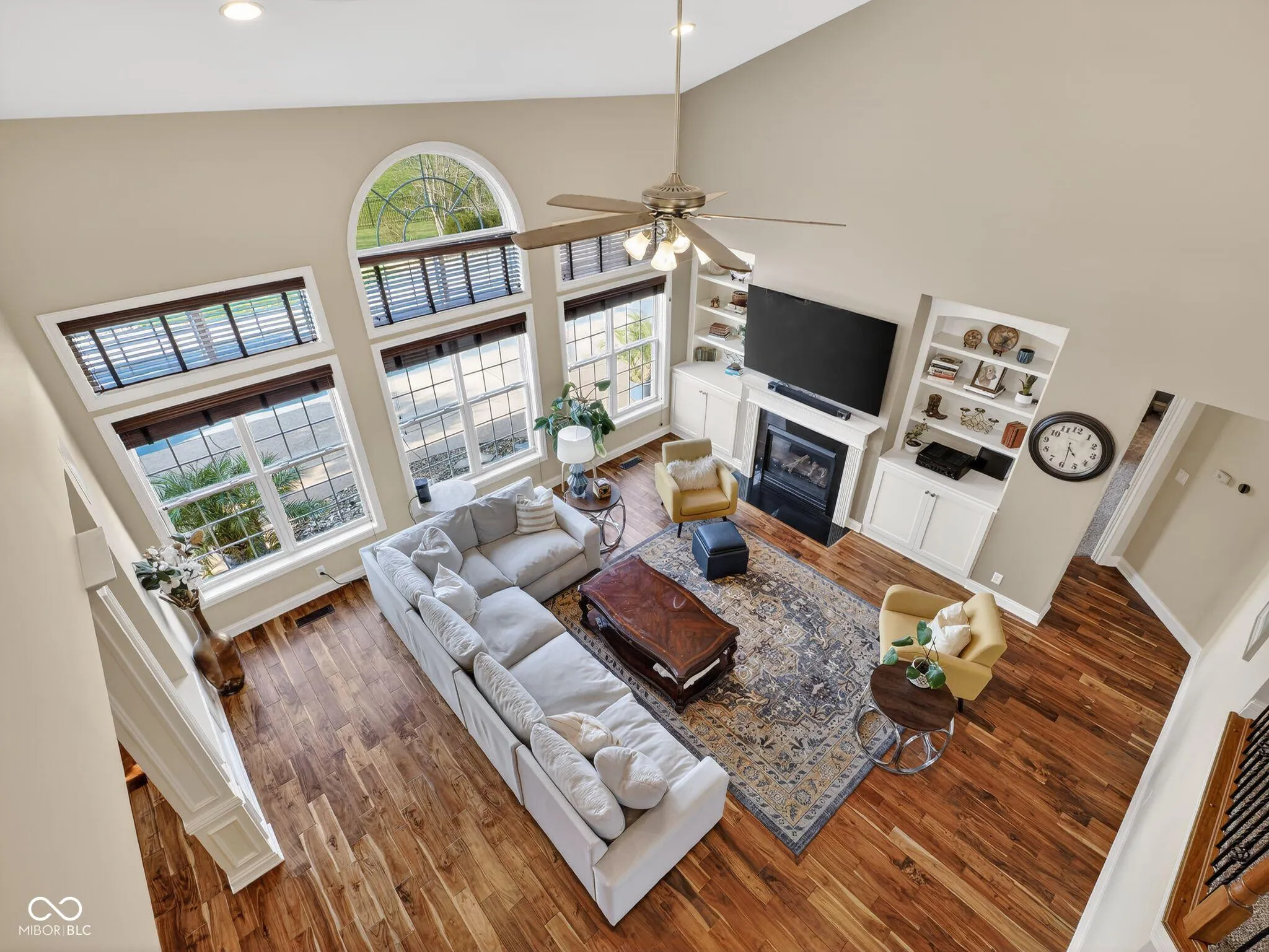 Welcome to this charming home located on Victoria Bluffs Dr in Newburgh. This beautiful 4 bedroom, 5 bath home has amazing backyard views including lake/pond views. Upon entering the foyer, you’ll immediately notice the high ceilings and crown molding. To the left, the formal dining area is the ideal space for dinners and gatherings and to the right you will find the home office, both with accent hardwood floors. The foyer transitions into a spacious living room featuring built-in shelving and a cozy gas fireplace. A conveniently located half bath is situated just off the foyer and across from laundry/mud room. Overlooking the living room, the eat-in kitchen has a raised bar, stainless steel appliances, induction cooktop and lots of cabinetry. Just off the kitchen, an informal dining area provides additional dining space. The owner’s suite features large windows creating an airy and elegant atmosphere, while the luxurious en suite bathroom with dual vanities, a relaxing tub, and a stunning double walk-in shower, providing a private retreat of comfort. The second floor bedrooms each feature spacious walk-in closets. Upstairs, the spacious fourth bedroom has its own bath for added convenience. There is also a library/ game room on second floor. The backyard is a true oasis, featuring a covered patio with salt water heated pool for entertaining and outdoor dining. The inground pool has an automatic cover, complemented by beautiful landscaping creating a serene and inviting outdoor retreat. A fifth bathroom was added to the house with access from outside while enjoying the pool.