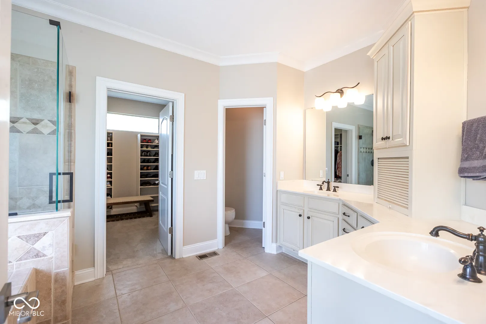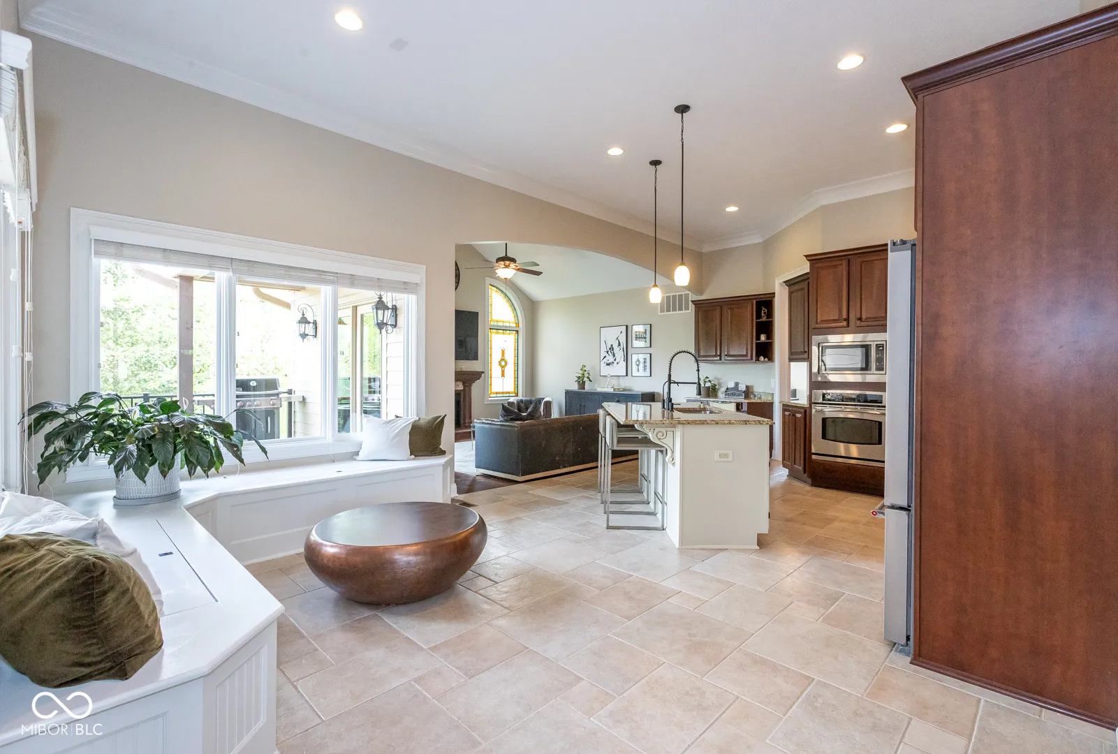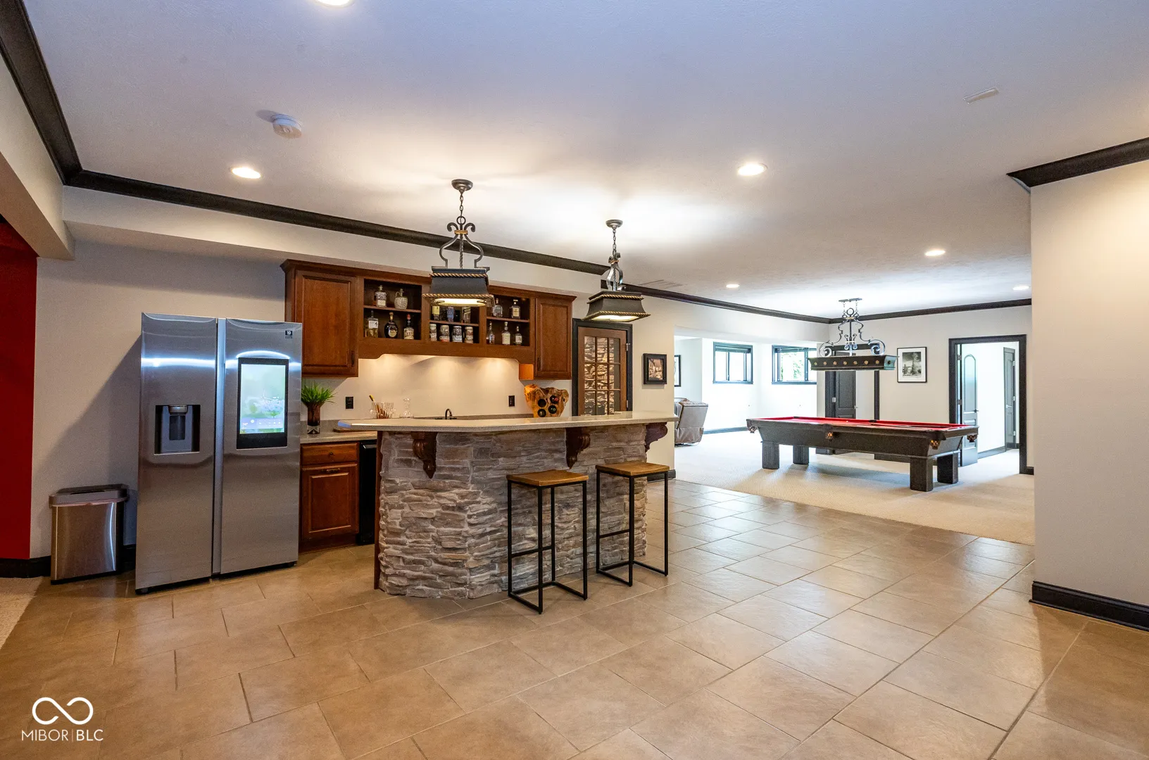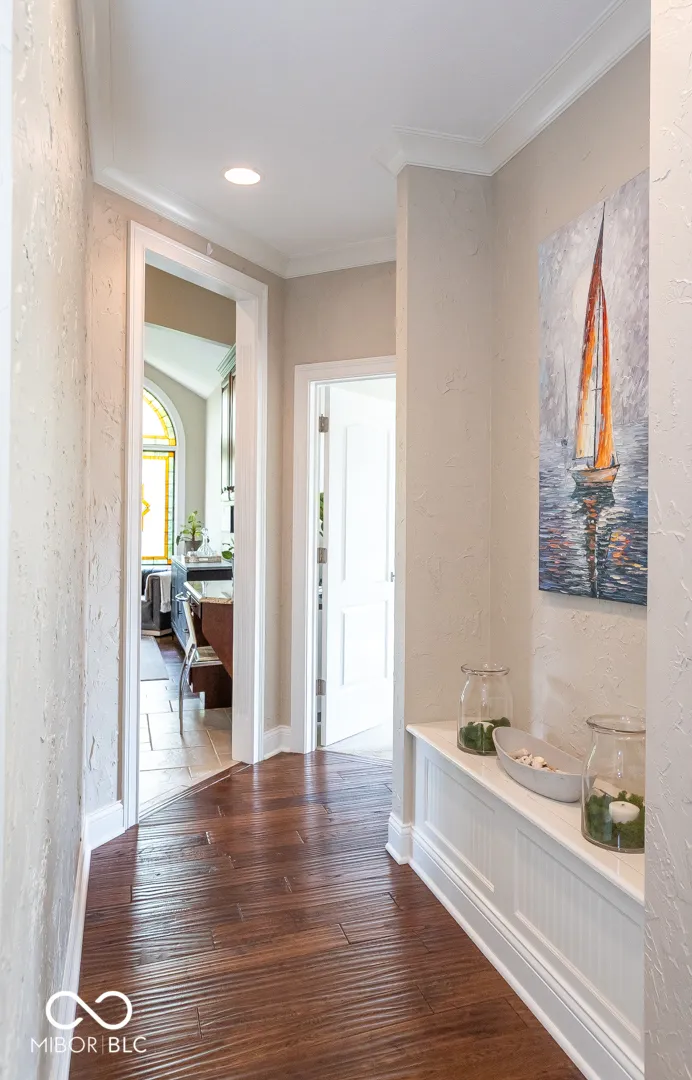 Stunning 6,000+ sq. ft. move-in ready home in the heart of Fishers, located in the highly sought-after Hamilton Southeastern School District, just a short walk to Geist Reservoir and minutes from Cambridge subdivision, featuring a main-level primary suite with tray ceilings, built-in closets, and a thoughtfully designed layout offering 4+ bedrooms, including the primary suite on the main level, a bedroom in the daylight basement, an upstairs bedroom with its own full bath, and a versatile bonus room above the garage with a closet-perfect as an additional bedroom, game room, or flex space-plus a private 5th bedroom suite, 5-inch hand-scraped hardwood floors, ceramic tile flooring, a sophisticated marble fireplace, 100% mahogany beveled glass entry, a daylight basement, wine cellar, whole-house water filtration system and water softener, newer appliances, newer roof, dual HVAC systems, and a low-maintenance Trex deck-perfect for modern living and entertaining.