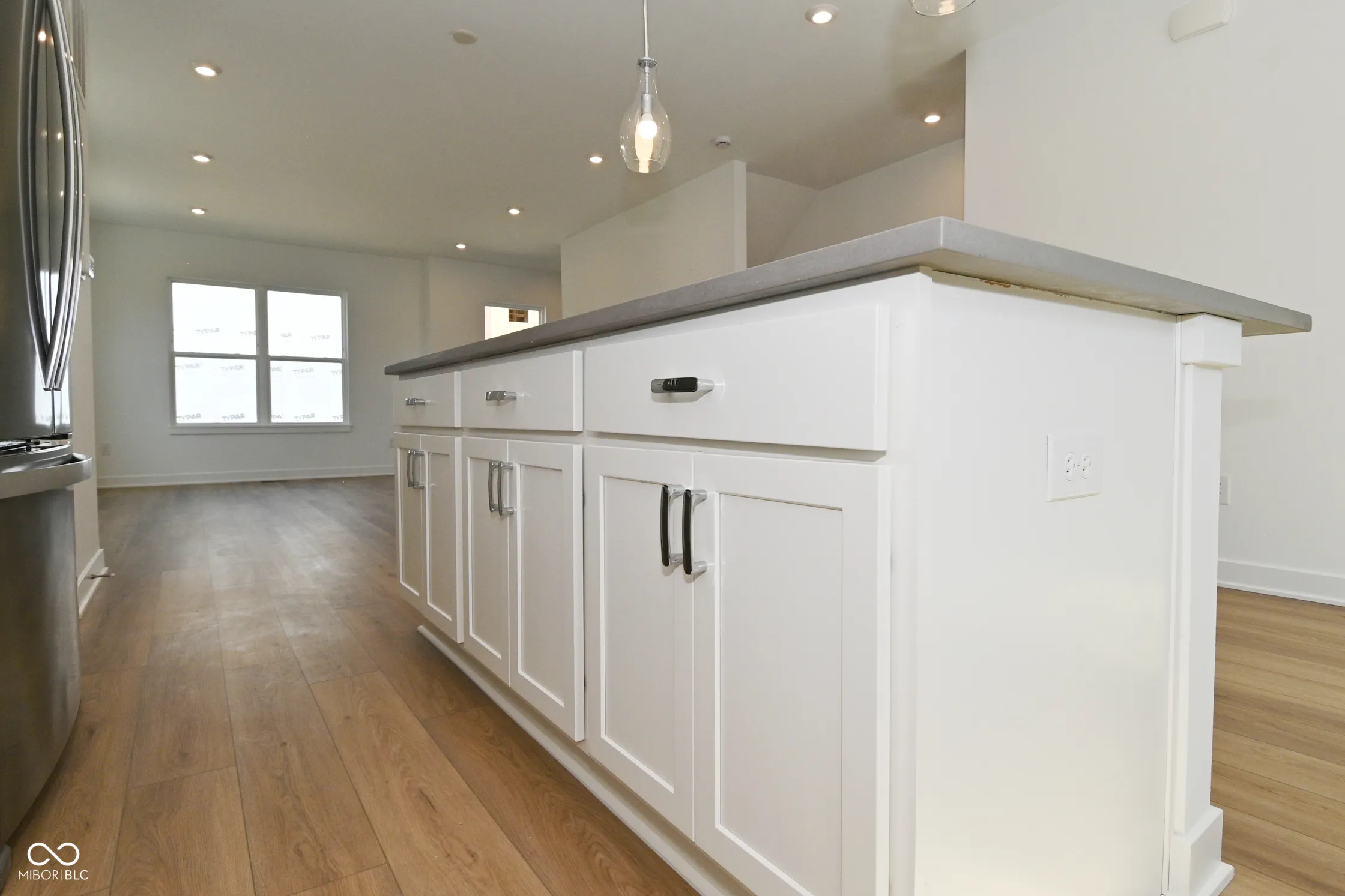 This thoughtfully designed townhome blends modern elegance with everyday functionality. This end unit features luxury fixtures and charm. The main level has a two car garage and a versatile bonus room – perfect for a bedroom, home office, or playroom. The open concept living space is on the second level and has abundant natural light. The kitchen has sleek quartz countertops, stainless steel appliances, and a large center island. The third level hosts the primary suite with a walk in closet and deluxe private bathroom. The additional bedroom, full bathroom, and laundry closet are also on the third level for added convenience. Income restrictions apply. Home must be owner occupied.