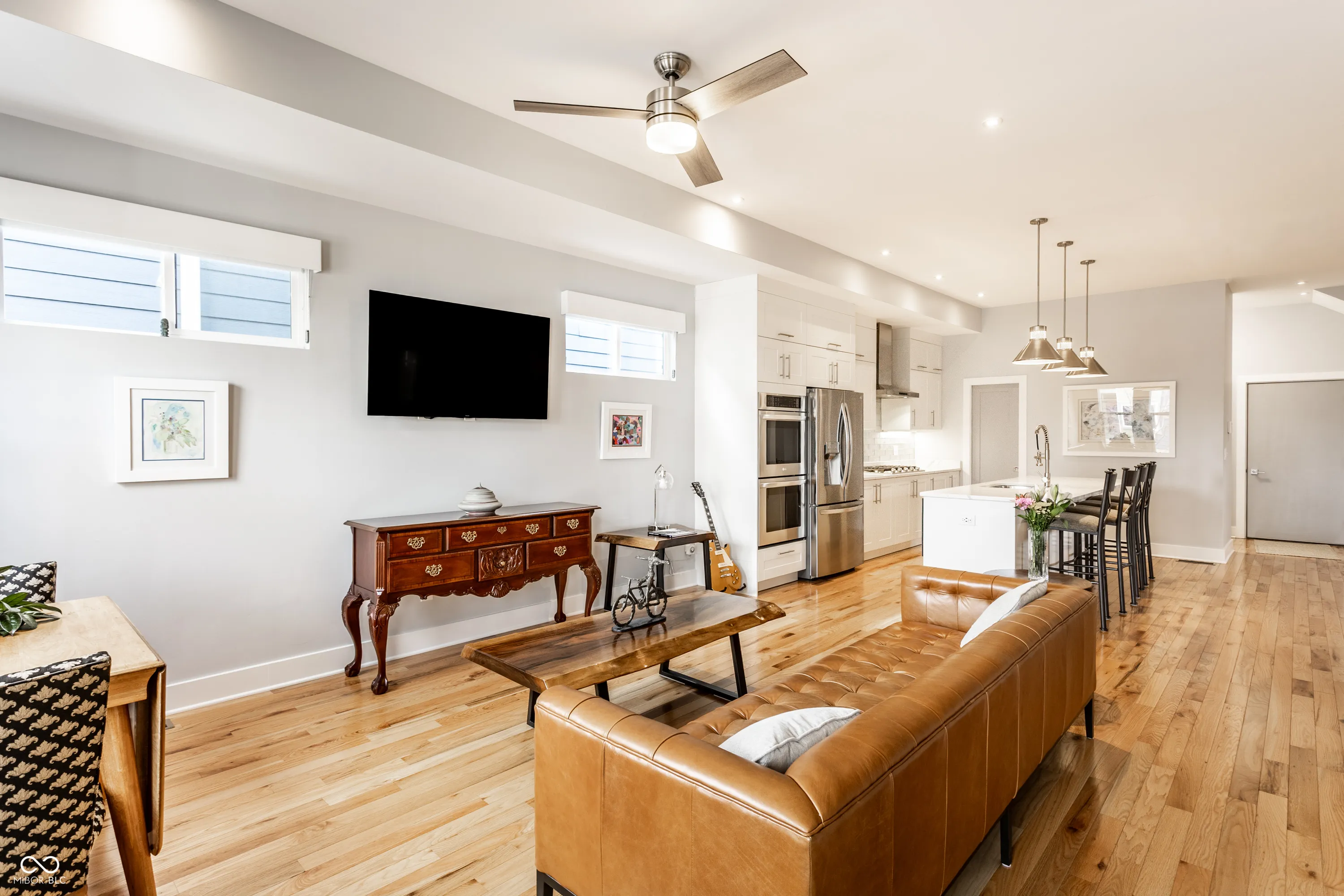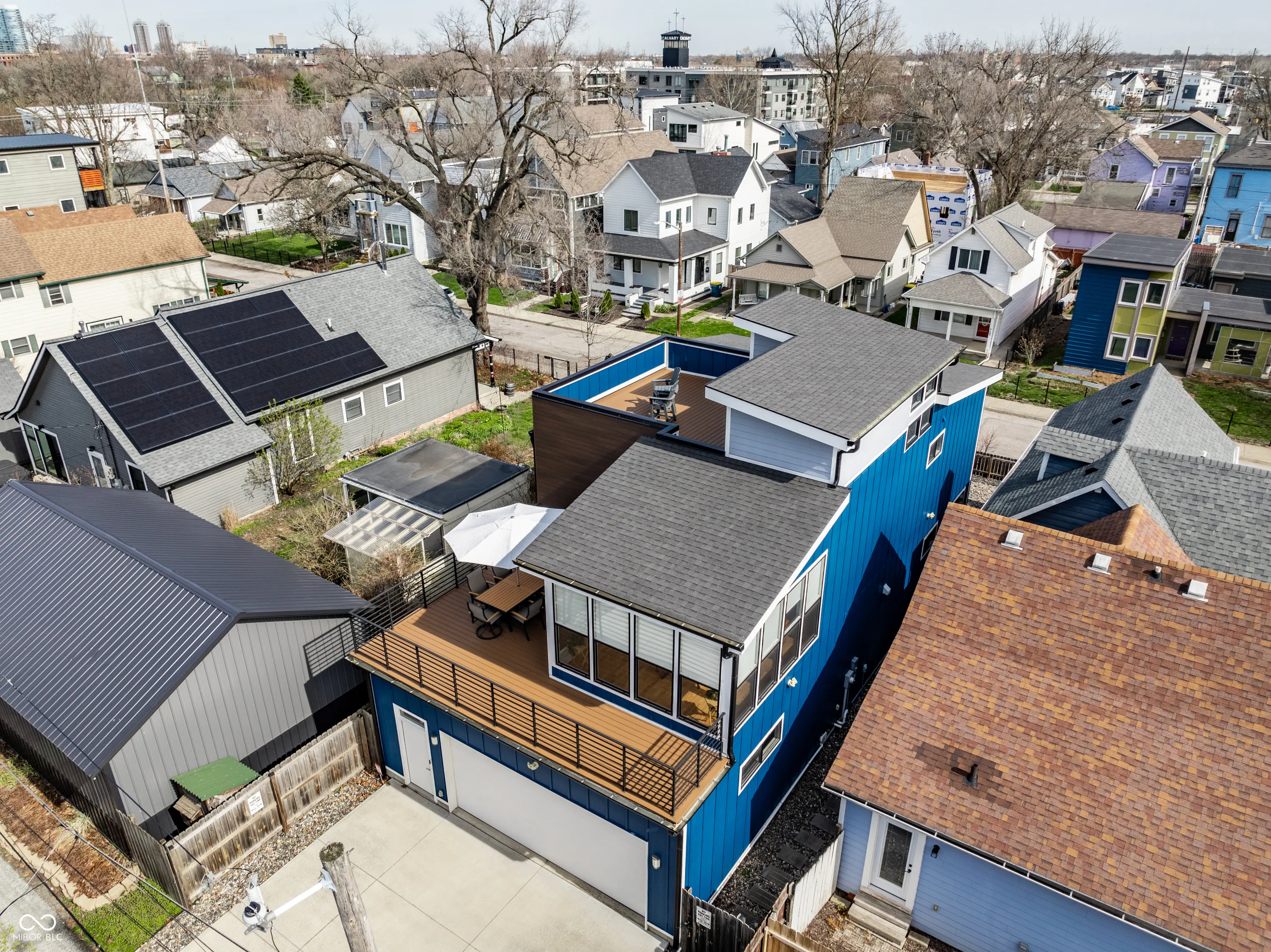 Custom home in the heart of North Square, just one block from the cultural trail and Fountain Square’s shops and restaurants, with easy access to Gainbridge Field House, Lucas Oil Stadium, and the Convention Center. This thoughtfully designed residence emphasizes low-maintenance living, a premium lifestyle, indoor-outdoor entertaining spaces, and abundant natural light across multiple levels. Inside, the open concept offers substantial square footage and high-quality finishes that elevate everyday living. Designer lighting, a hand-made oak TV console, and quartz countertops throughout set a refined tone, while high-end appliances-including a double oven, hood exhaust, and a gas cooktop-provide every modern convenience. The primary suite is sublime in its generous use of space and finish, offering a seperate balcony! The second and third floors showcase thoughtfully scaled decks overlooking Downtown. The second-floor deck includes a Weber grill, dining table for six, and umbrella-perfect for entertaining or relaxing al fresco. The third-floor deck is reinforced for a hot tub and includes a 200 sq ft storage closet! The home is designed for effortless maintenance: a polished Florida rock yard, Trex decking, and cement board siding contribute to easy-care exteriors. A two-car garage (with 220-volt outlet and utility sink) offers ample storage! The basement is unfinished, but plumbed for a full bath and wet bar, presenting immediate opportunities to expand living space! The 4-seasons room (the “Tree House Room”) provides a unique, relaxing retreat, while the second-floor deck offers a dining setup and a high-quality grill area for entertaining. The residence balances public and private areas to capture abundant natural light and offer unforgettable moments with family and friends, all within walking distance to the energy and culture of Fountain Square. This property is truly a must-see to be appreciated!