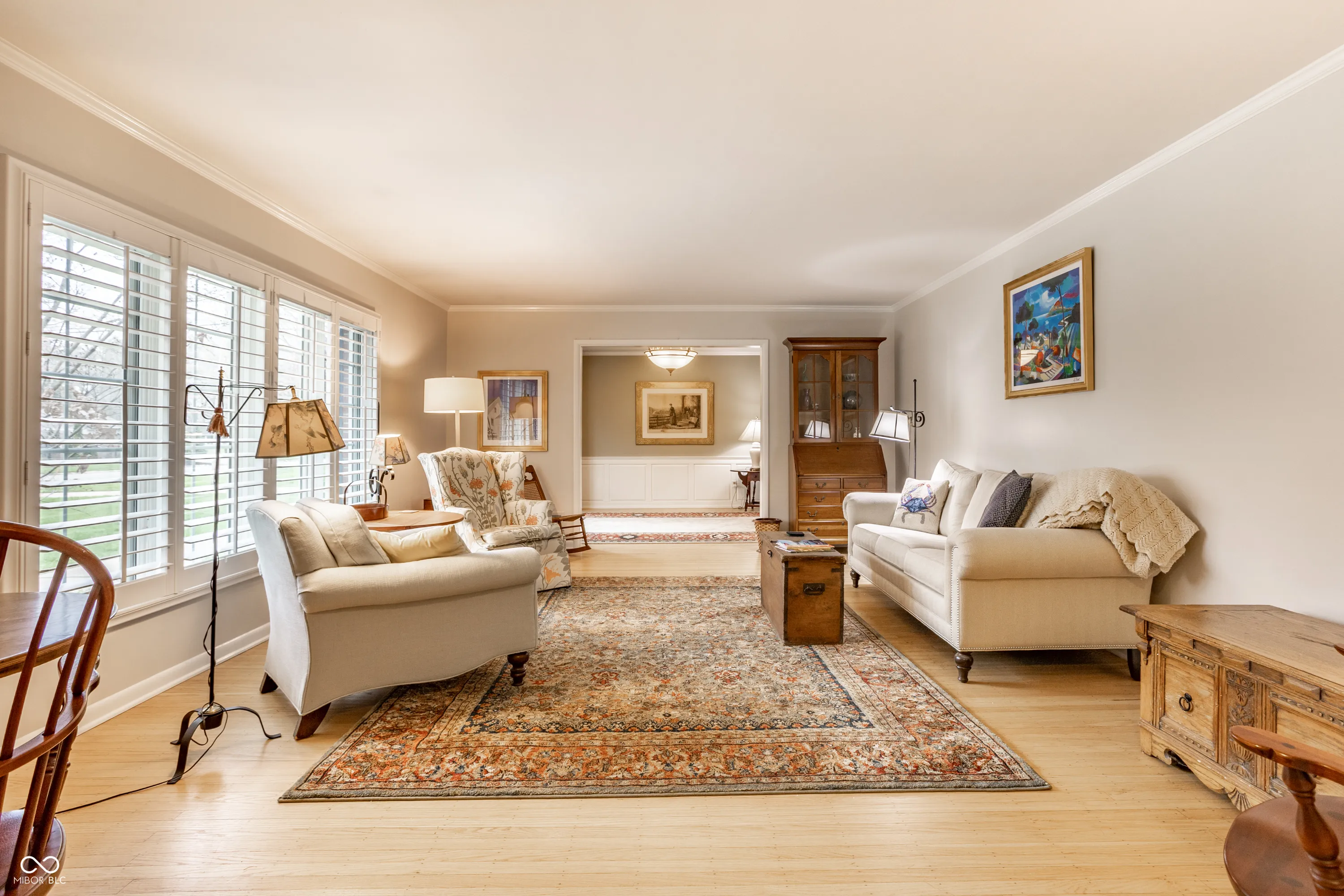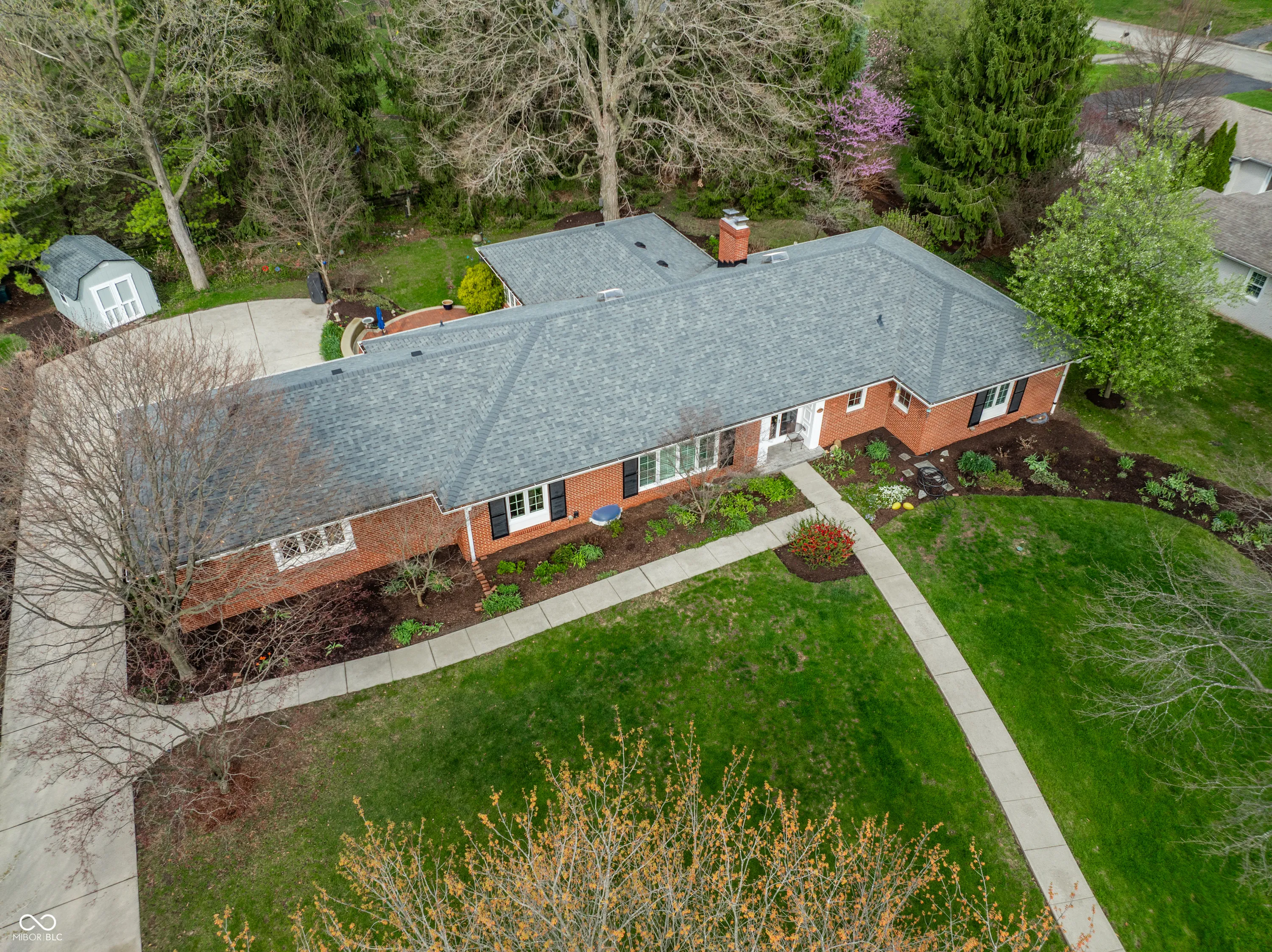 Welcome home to this beautifully maintained 3-bedroom, 2.5-bath all-brick ranch in highly desirable Washington Township, just a short walk to the scenic trails and nature of Holliday Park. Situated on a generous .59-acre lot, this property is a true outdoor retreat, featuring lush landscaping, vibrant perennial gardens, mature trees, and a huge brick patio perfect for relaxing or entertaining. Inside, you’ll find a warm and inviting layout with hardwood floors throughout most of the home, fresh neutral paint, and a cozy hearth room complete with a gas fireplace and custom built-in bookcases. The expanded and updated kitchen is ready for everyday living and hosting, offering granite countertops, stainless steel appliances (including a brand-new refrigerator), a center island, and a stylish backsplash. The sunroom off the back provides the perfect spot to enjoy peaceful views of the backyard year-round. The spacious primary suite has been thoughtfully updated with an expanded bathroom, featuring a walk-in shower and double sinks. Downstairs, the large unfinished basement has been professionally waterproofed and offers endless possibilities, whether you envision a home office, gym, game room, or simply incredible storage. The crawl space has been encapsulated, and additional storage is available via pull-down attic stairs. Major updates bring peace of mind, including new roof, gutters, downspouts, and soffits (2024), new Pella windows, updated electrical, and an added dehumidifier. The home has been meticulously cared for, with HVAC serviced twice a year. Plantation shutters grace the front of the home, adding timeless character and curb appeal. This home blends classic construction with modern updates, all in an unbeatable location, offering space, and comfort.