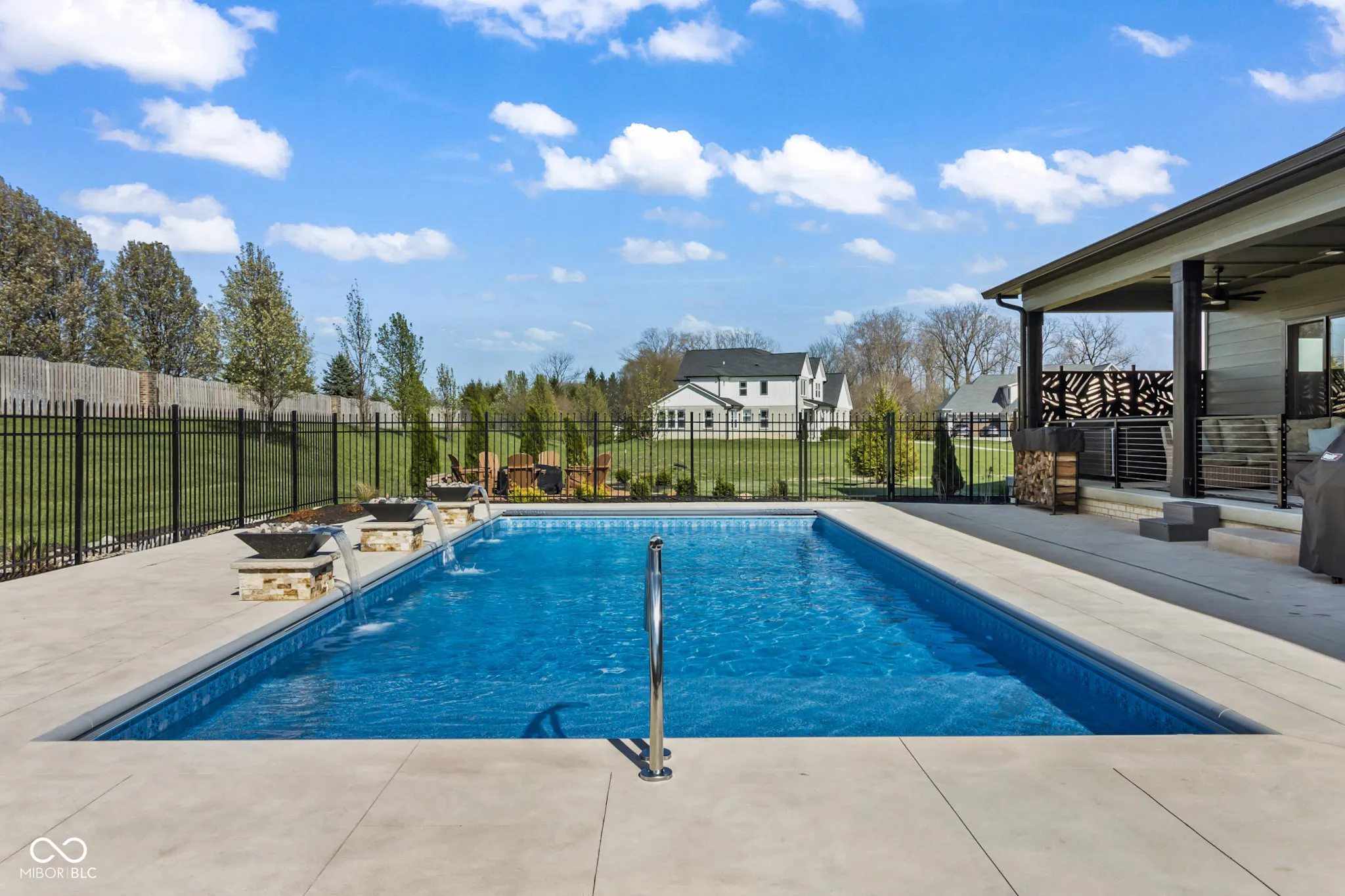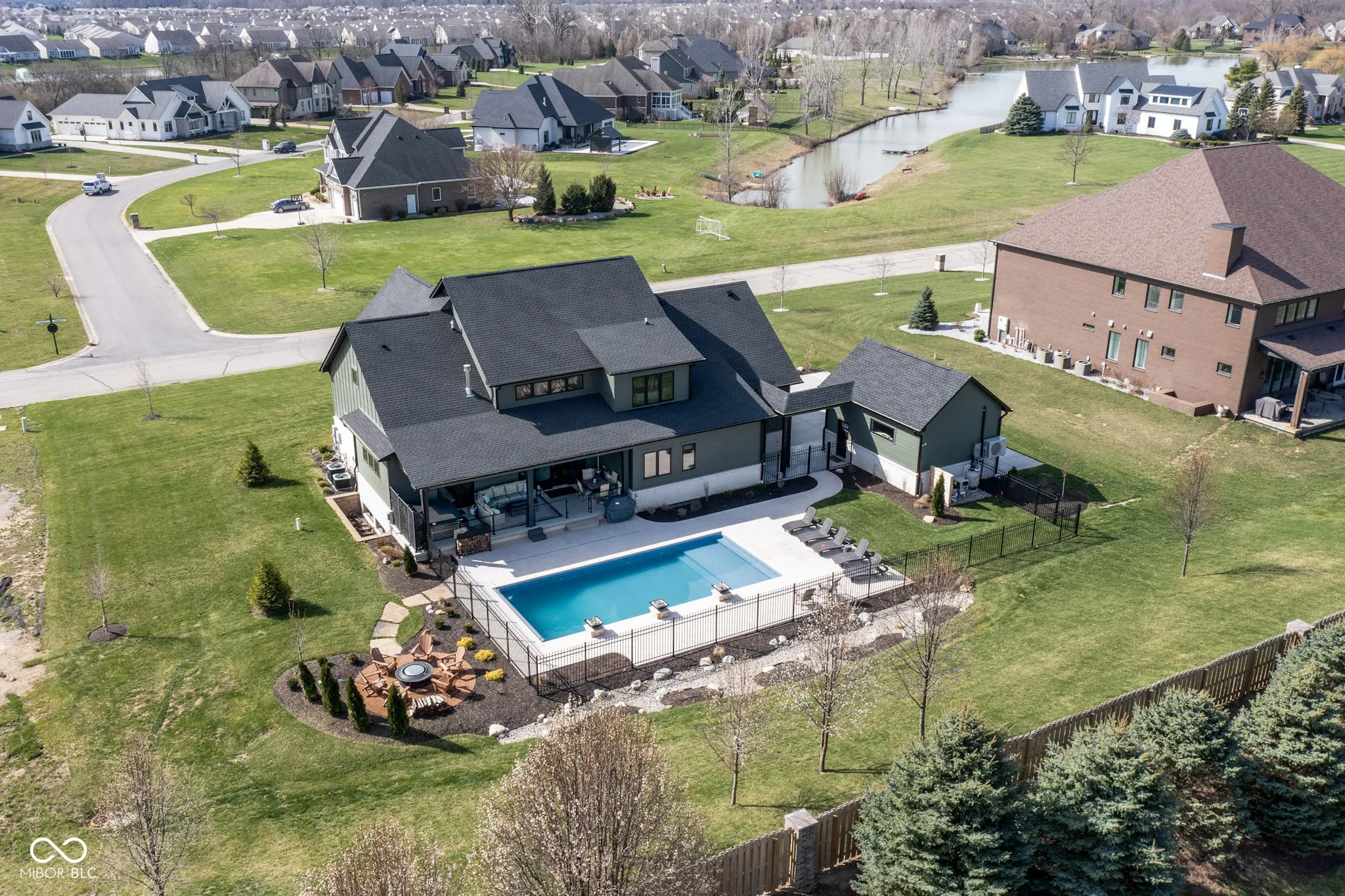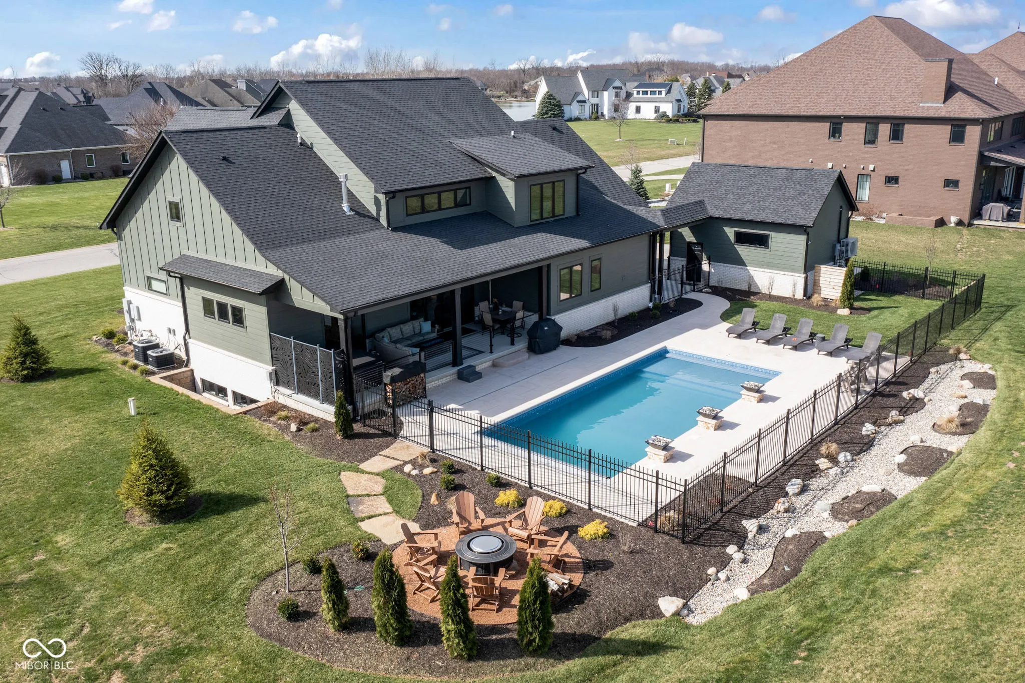 Located in the gated community of Barrington Estates and just minutes from Hamilton Town Center. Offering over 5,700 square feet of finished living space, this home combines modern design with high-end finishes throughout. The main level features an open-concept layout with engineered hardwood floors, a spacious living area with gas fireplace, and a well-appointed kitchen complete with center island, custom cabinetry, and dining area-ideal for both everyday living and entertaining. The main-level primary suite includes a walk-in closet and a spa-like bathroom with double sinks, soaking tub, and separate shower. Upstairs, you’ll find additional bedrooms and flexible living space to accommodate a variety of needs. The finished basement takes entertaining to the next level with a wet bar, wine room, fitness space, and additional living areas-creating the perfect setup for game days, movie nights, or hosting friends and family. But what truly sets this home apart is the backyard lifestyle. Step outside to your private outdoor oasis featuring a brand new 16×36 saltwater pool, covered patio, and custom fire pit area-designed for summer days, cozy evenings, and everything in between. Additional highlights include, a .75-acre lot, a 4-car garage, main-level laundry, and access to Hamilton Southeastern Schools.