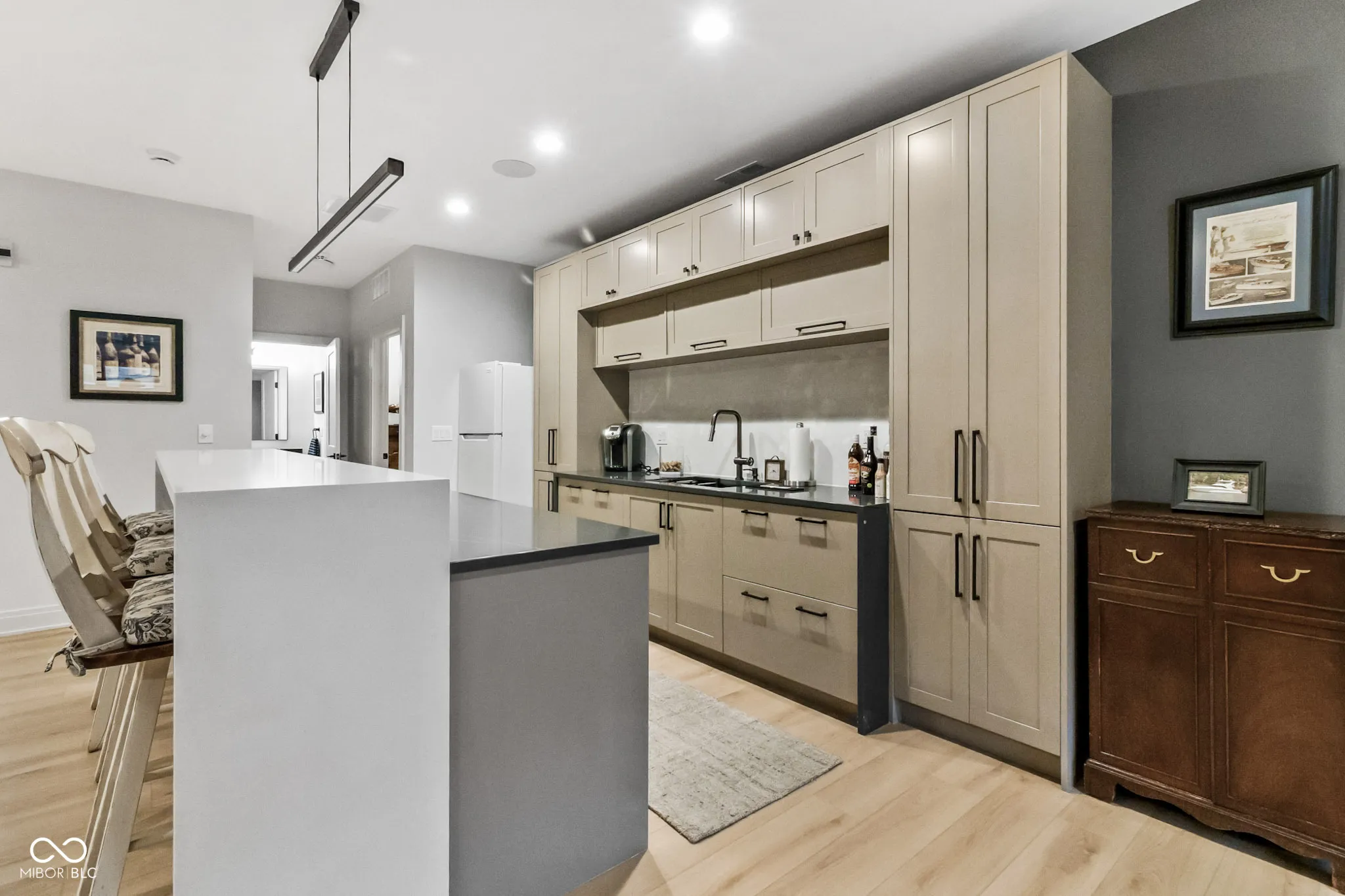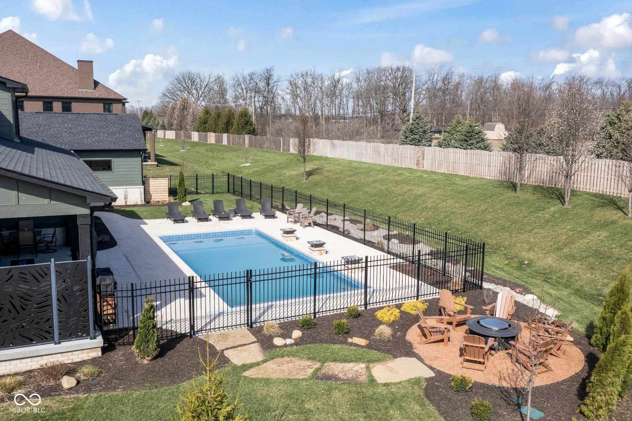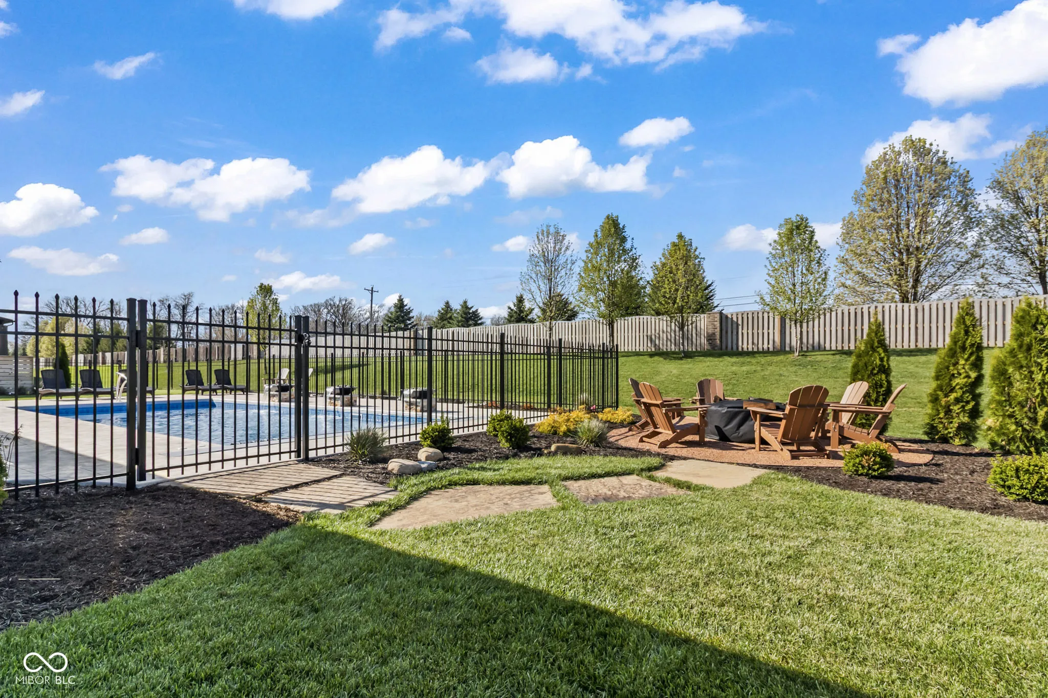 Located in the gated community of Barrington Estates and just minutes from Hamilton Town Center. Offering over 5,700 square feet of finished living space, this home combines modern design with high-end finishes throughout. The main level features an open-concept layout with engineered hardwood floors, a spacious living area with gas fireplace, and a well-appointed kitchen complete with center island, custom cabinetry, and dining area-ideal for both everyday living and entertaining. The main-level primary suite includes a walk-in closet and a spa-like bathroom with double sinks, soaking tub, and separate shower. Upstairs, you’ll find additional bedrooms and flexible living space to accommodate a variety of needs. The finished basement takes entertaining to the next level with a wet bar, wine room, fitness space, and additional living areas-creating the perfect setup for game days, movie nights, or hosting friends and family. But what truly sets this home apart is the backyard lifestyle. Step outside to your private outdoor oasis featuring a brand new 16×36 saltwater pool, covered patio, and custom fire pit area-designed for summer days, cozy evenings, and everything in between. Additional highlights include, a .75-acre lot, a 4-car garage, main-level laundry, and access to Hamilton Southeastern Schools.