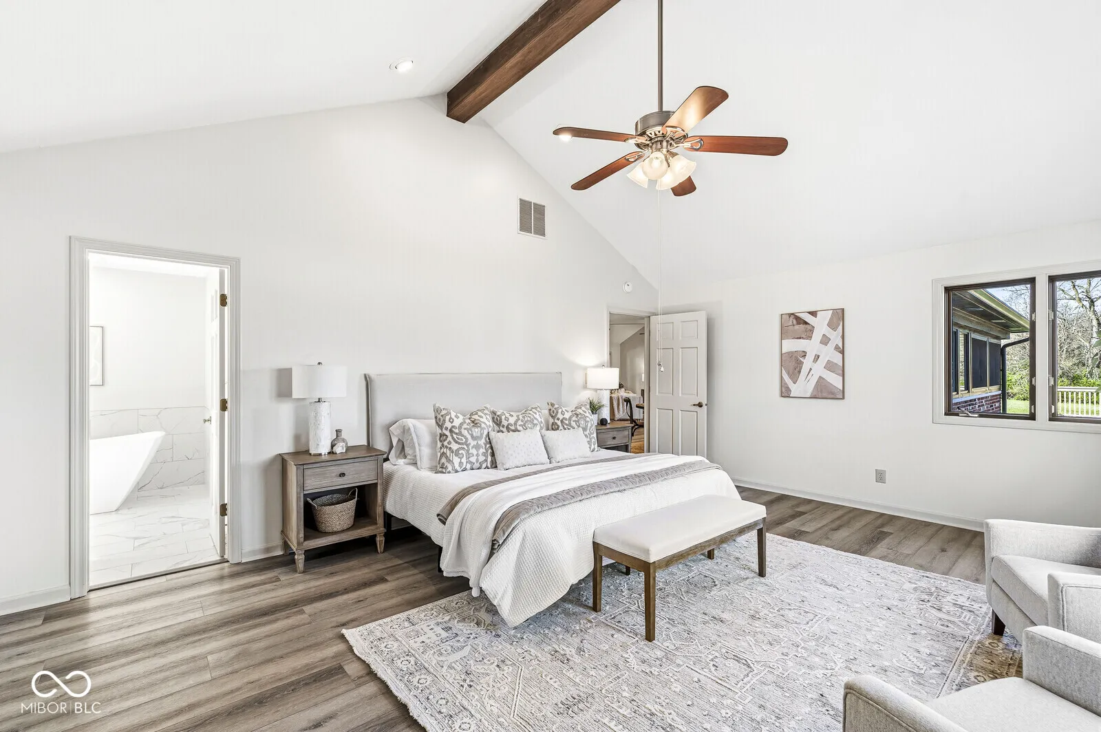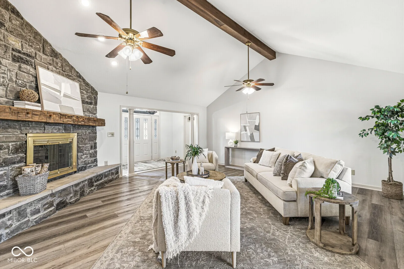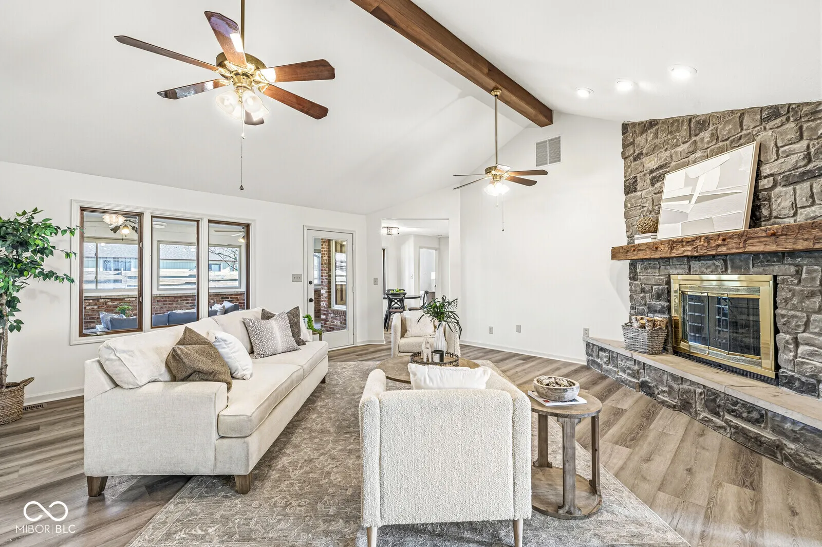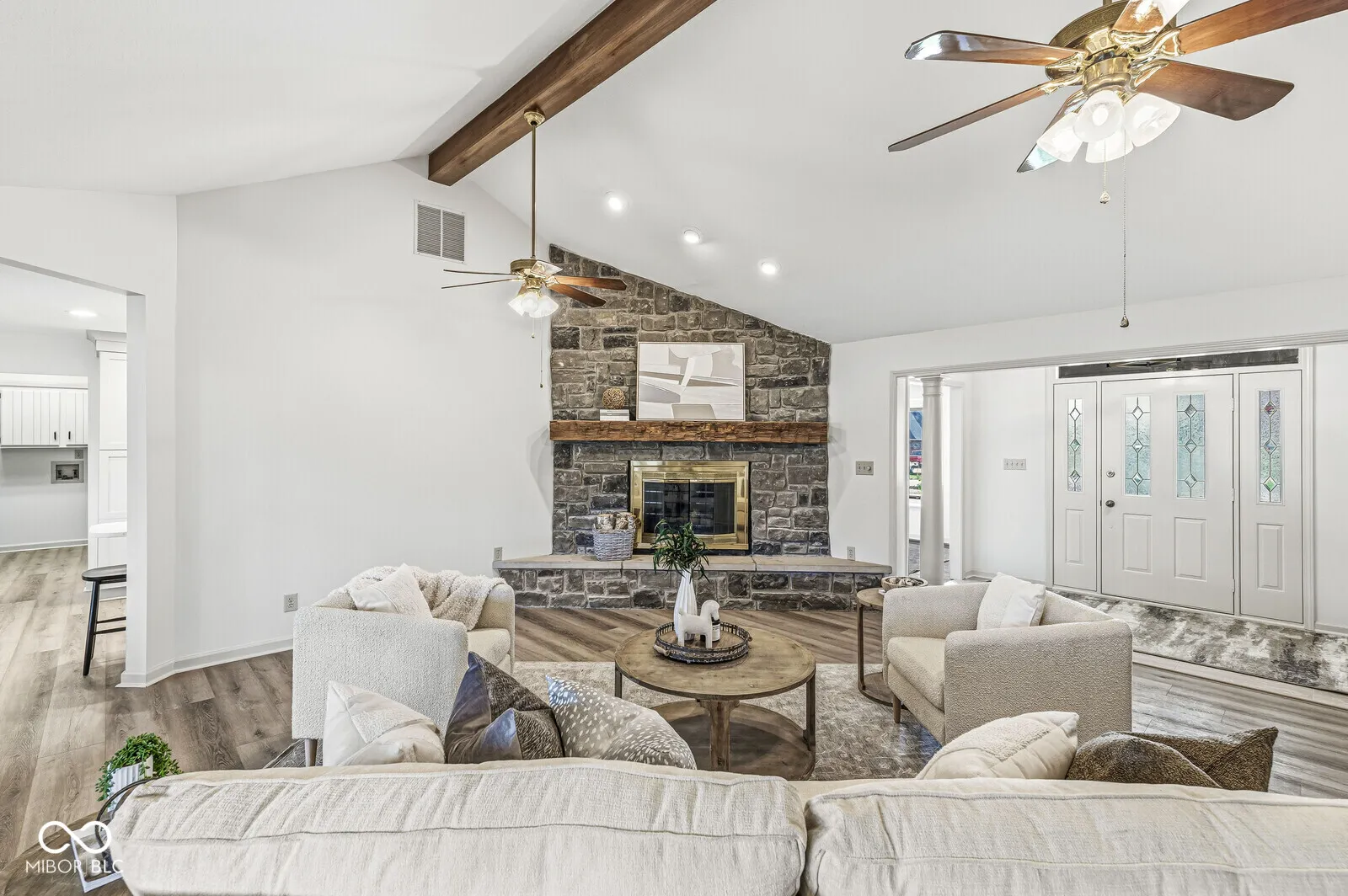 This 2500-plus-square-foot ranch with an almost half-acre lot is completely updated with new cabinets, crown molding, a coffee bar, stylish floating shelves, and a beautiful designer backsplash. The large primary bedroom has his-and-her closets, an updated luxury primary bathroom with double basins, and a sleek, large soaking tub with a separate tile shower. The large great room features vaulted ceilings with wood beams, a floor-to-ceiling stone fireplace, and a rustic wooden mantle. From the great room move to the large heated sunroom, where you can easily entertain family and friends or enjoy your morning coffee in comfort. From the sunroom step out to your 16 x 32 deck. Split bedroom concept with oversized secondary bedrooms. The over 1,000-square-foot garage can hold 4 cars or plenty of room to create your own workshop area.