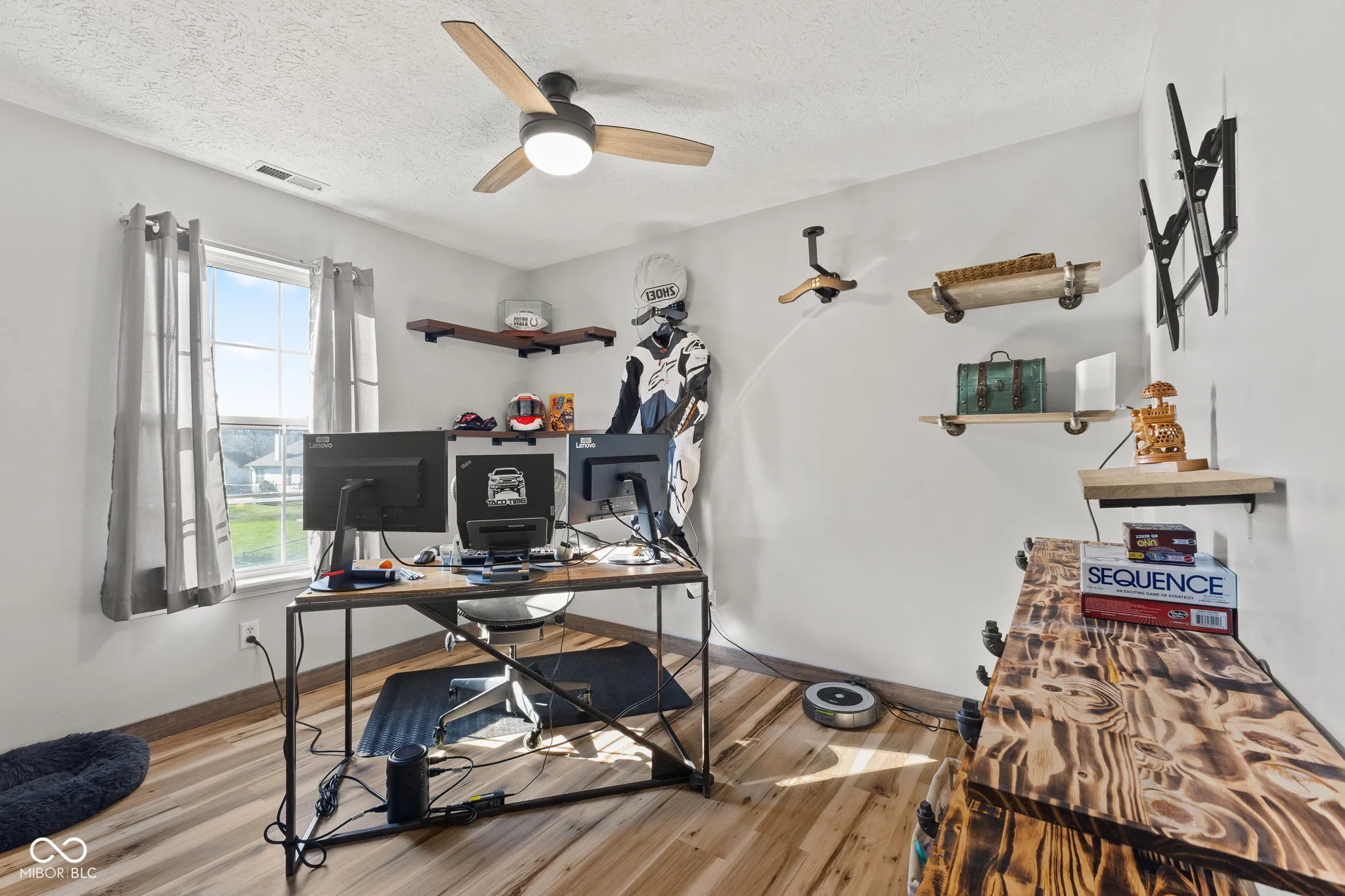 Sunningdale Commons is unique in its location on the west side of Indianapolis and its design. Woods surrounding and scattered throughout the neighborhood create a warm and welcoming feeling to living in the neighborhood. *A wonderful home with incredible features: upon entry you’re greeted with a one of a kind staircase, a beam for your mantle, bourbon barrel strips around the kitchen sink, marble counters, so much fresh paint-hand fired stair treads*Updated Flooring*Upgraded Appliances*The comfort of an established outdoor space with an amazing deck, firepit and fenced backyard–The storage unit tucked behind the garage provides additional storage-add that to the additional space in the garage (not shown on the floorplan)**To find comfort, function and convenience all in one place is AMAZING!! Come See Us NOW!!
