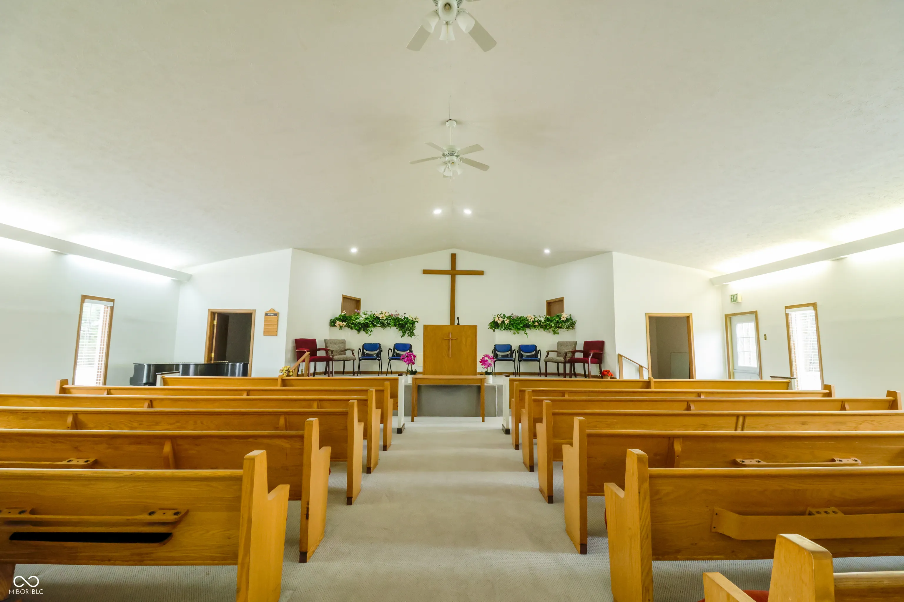 Rare opportunity to own a 5-acre church property in Shelby County! Formerly known as Fairland Baptist Temple, this 2,400 sq ft building offers a versatile layout ideal for continued religious use, community gatherings, or potential redevelopment. Situated on a level lot with ample space for parking and expansion, the property provides a peaceful rural setting with convenient access to surrounding areas. The property is only 5 minutes from I74 about 15 minutes from Shelbyville, and 30 minutes from Indianapolis. The building, constructed in 1988, features an open interior that can easily be adapted to suit a variety of needs. Along with a 320 sq ft accessory shed offering additional storage. The building has a new roof, water heater, well pump and the bathrooms have new toilets. The floors have been replaced throughout the building with laminate flooring and the auditorium with carpet. There is a 1981 Kawai Baby Grand piano and Hustle Raptor 60″ Mower that is available for negotiating.