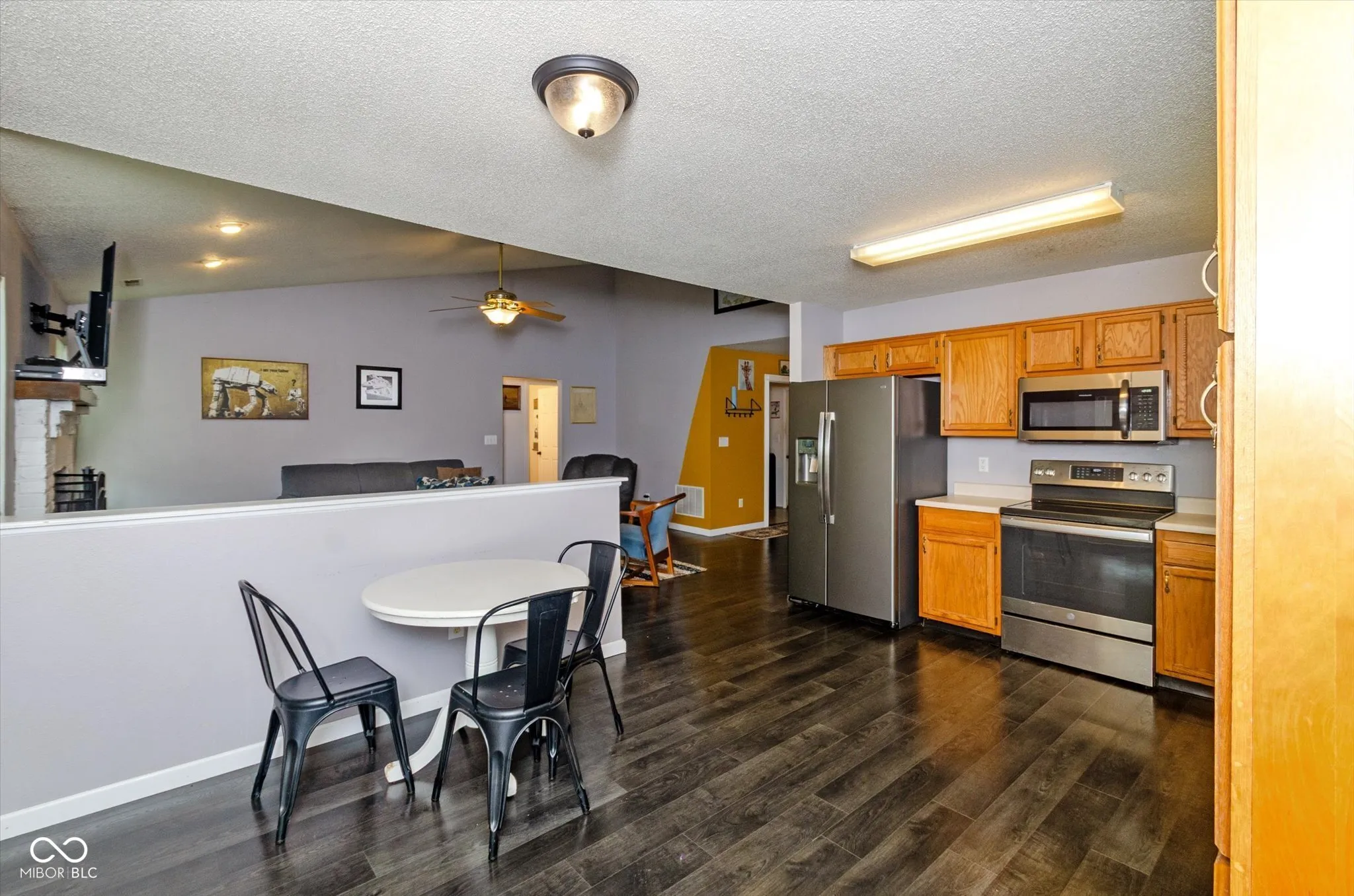 Brixton Lakes 3BR/2BA ranch ideally situation on a cul-de-sac w/2 car garage. The covered porch leads into 1500+ square feet comprised of a large entry space that flows into the great room w/woodburning fireplace and vaulted ceiling. The living area is separated by a half wall and opens to the eat-in-kitchen and is separated by a half wall. All appliances remain, including washer and dryer. Split bedroom layout offers extra privacy for the main BR w/ walk-in closet and also a full bath w/garden tub, double sinks and separate shower. The second bedroom also has a walk-in closet. The backyard has a substantial concrete patio w/a free-standing metal pergola. Fruit trees were planted in 2020: 3 cherry and 1 nectarine with raspberries and blackberries at the side. This house has solid mechanical ages. Roof 2019; Furn and AC 2019; Water heater 2023; all windows replaced 2021. So it’s ready for the next owner to come in and do some revitalization with the original vinyl flooring and countertops. Garage has a 240 outlet for any additional electricity needs. Just a couple minutes outside Brownsburg w/EZ access to shopping, restaurants, I-74 and SR267.