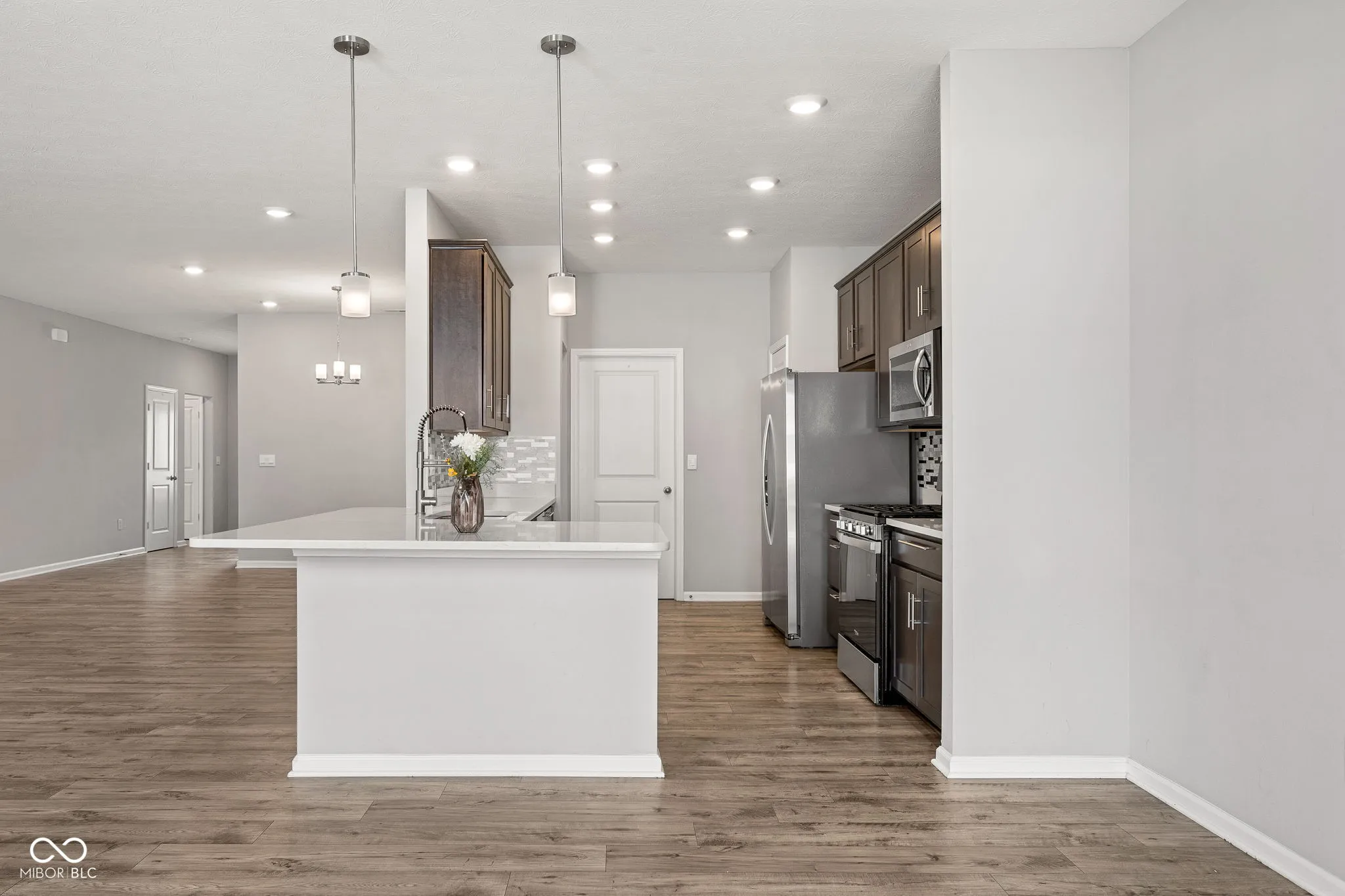 Welcome to this gorgeous ranch home in Pendleton just built in 2023 that’s been thoughtfully designed and is completely move-in ready. Inside, the kitchen is the heart of the home with quartz countertops, shaker cabinets, a stylish backsplash, and a large peninsula that’s perfect for everyday living and entertaining. The layout flows extremely well with three spacious bedrooms and two full baths. The primary suite features a double vanity and a walk-in shower that feels clean, functional, and easy to live in. You’ve also got a dedicated laundry room and a large 2 car garage. With almost 2,000 square feet of living space all on one level, this is perfect for someone looking for a great home, without all of the stairs. Out back, there’s a private patio that gives you a great spot to unwind or host, sitting on a manageable lot that doesn’t come with a ton of upkeep. If you’re looking for something newer, low-maintenance, and with a great open concept flow, this home is the one for you! This home is perfectly situated being just minutes from I-69, or right into downtown Pendleton.