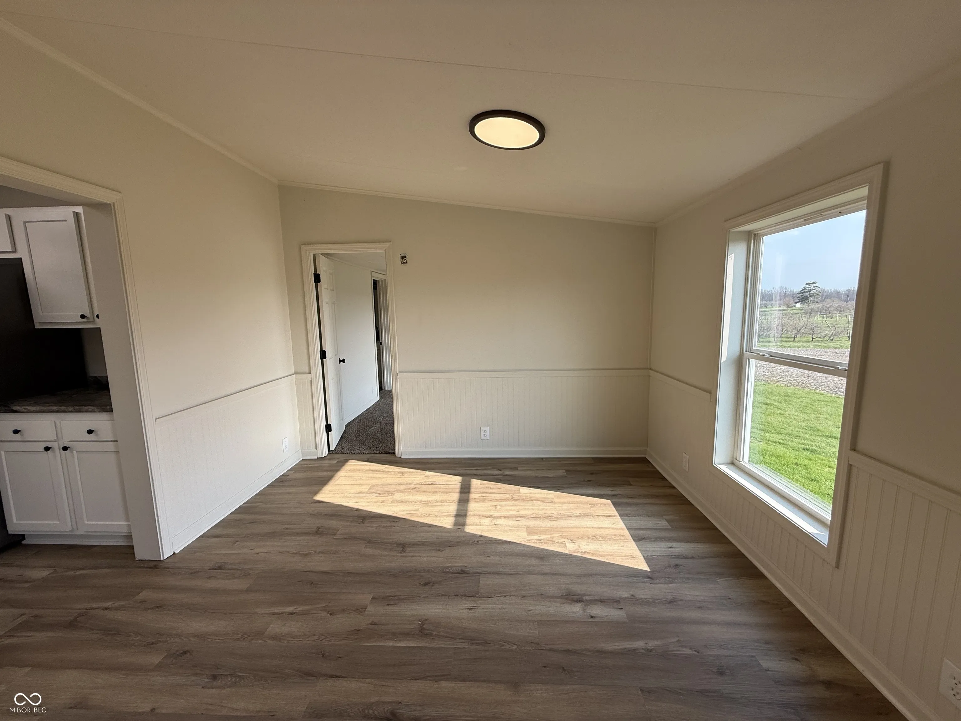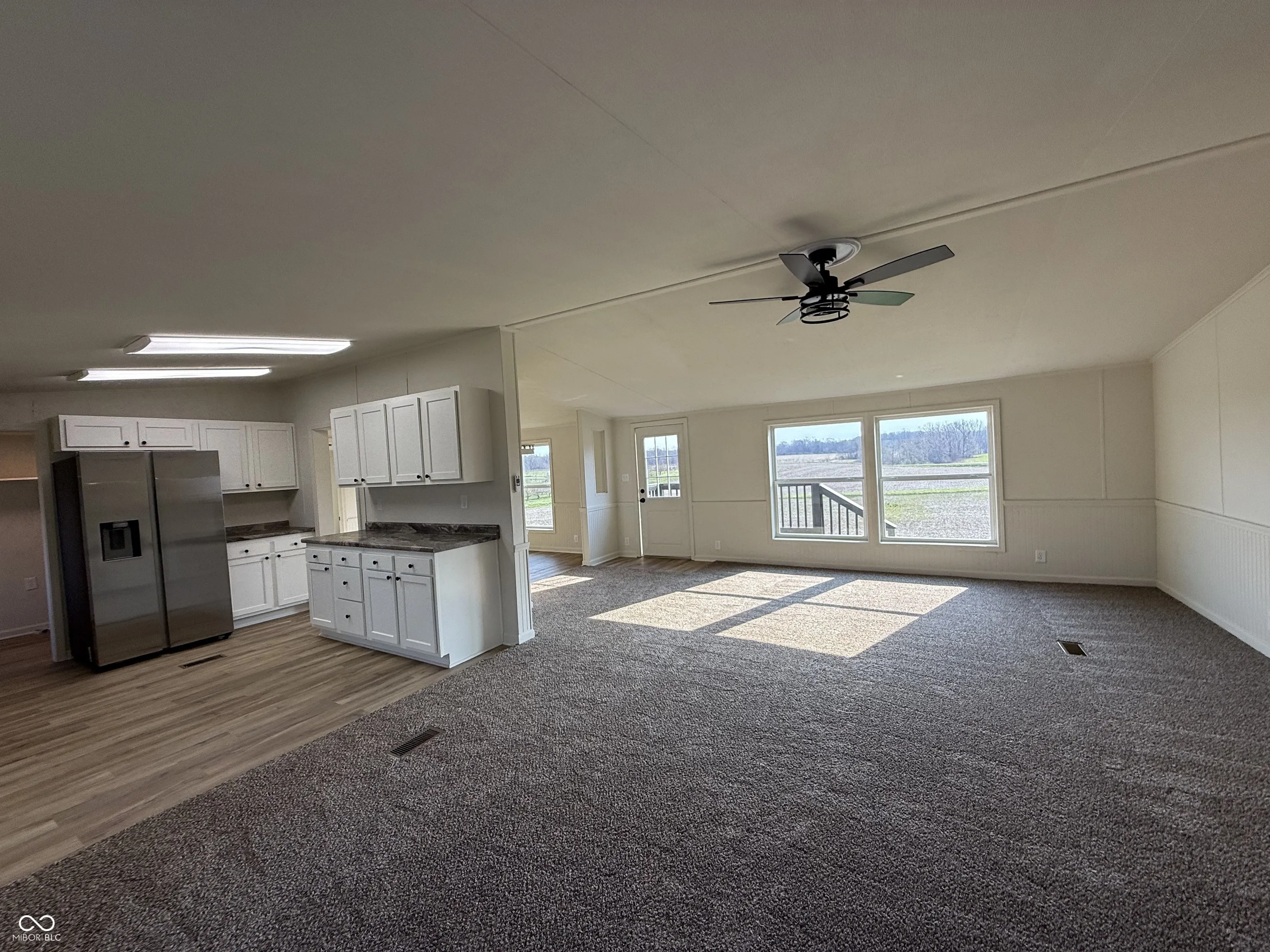 Let’s take a look at this newly renovated manufactured home on a peaceful country setting on 2.48 acres! It’s a 1400 square foot one level home with an open concept floor plan that’s inviting and great for entertaining! Upon pulling up to the property the home sits on a hill and has a new roof, siding, windows, HVAC, A/C unit, flooring, kitchen cabinets, counter tops and new appliances. Upon entering you find a large open living space with a corner electric fireplace. The home has a new kitchen with white cabinetry and staidness steel appliances. Off of the kitchen is a formal dining space with vinyl plank flooring that overlooks the master suite. The master bedroom has an En suite bathroom with a double sink vanity and a walk-in closet. On the other end of the home are two bedrooms and a full bathroom. Off the back of the home is a brand-new deck and nice sized yard. The home also has a detached two car garage and is move in ready!