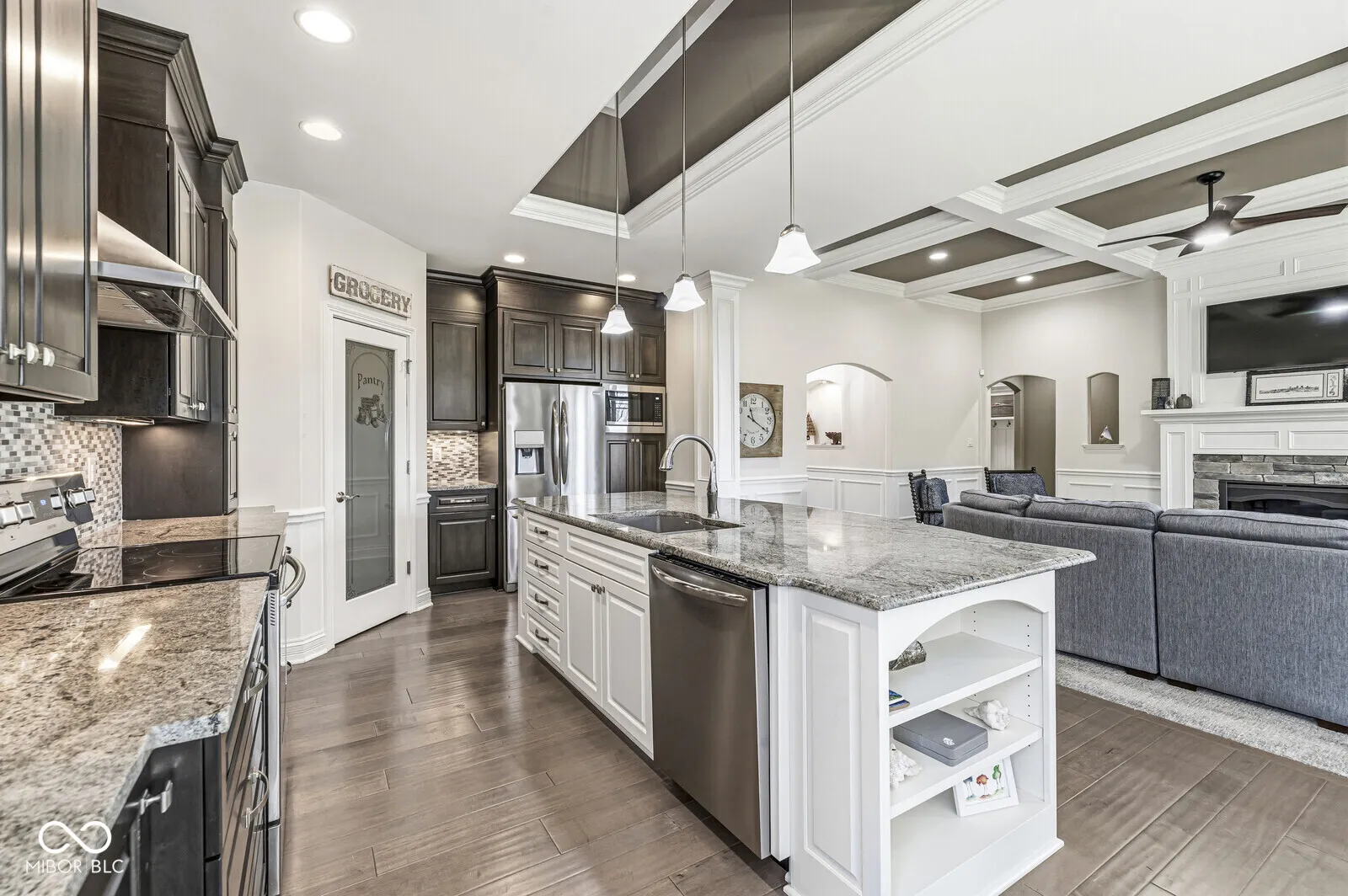 Custom brick ranch with finished basement, 3-car garage, and standout outdoor living in Avalon Estates! This 4-bedroom, 3-bath home in Plainfield offers the space, layout, and upgrades buyers are looking for. The open-concept main level features a beautifully designed kitchen with granite countertops, stainless steel appliances, a center island, and a walk-in pantry, flowing into a spacious living room with new carpet, a gas fireplace, and backyard views. High-end finishes throughout include coffered ceilings, crown molding, and detailed wainscoting. The primary suite is a true retreat with dual vanities, a large tiled walk-in shower, and an oversized closet with impressive storage. The finished basement expands your living space with two large gathering areas, additional bedrooms, and a full kitchen/bar setup-perfect for entertaining, guests, or multi-generational living. Step outside and you’ll find three separate outdoor living spaces, including a screened-in porch, stamped concrete patio with hot tub, and covered patio, all overlooking a fenced yard with irrigation and low-maintenance landscaping. The finished 3-car garage features durable epoxy flooring. Located less than a mile from the Richard A. Carlucci Recreation & Aquatic Center with easy access to walking and biking trails, this home offers a great combination of comfort, function, and convenience.