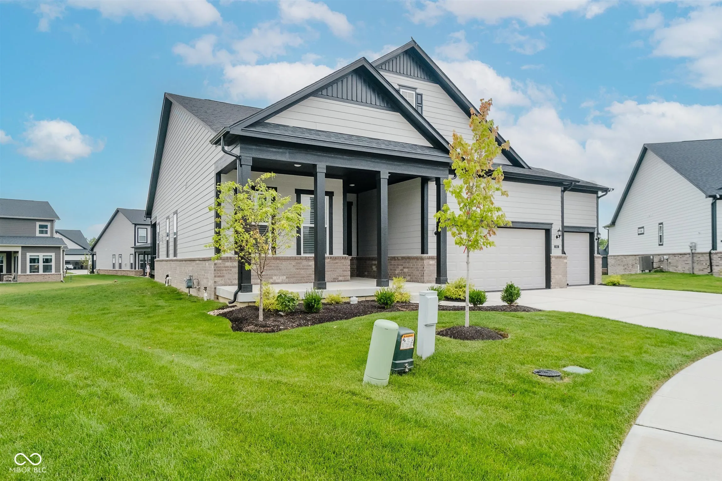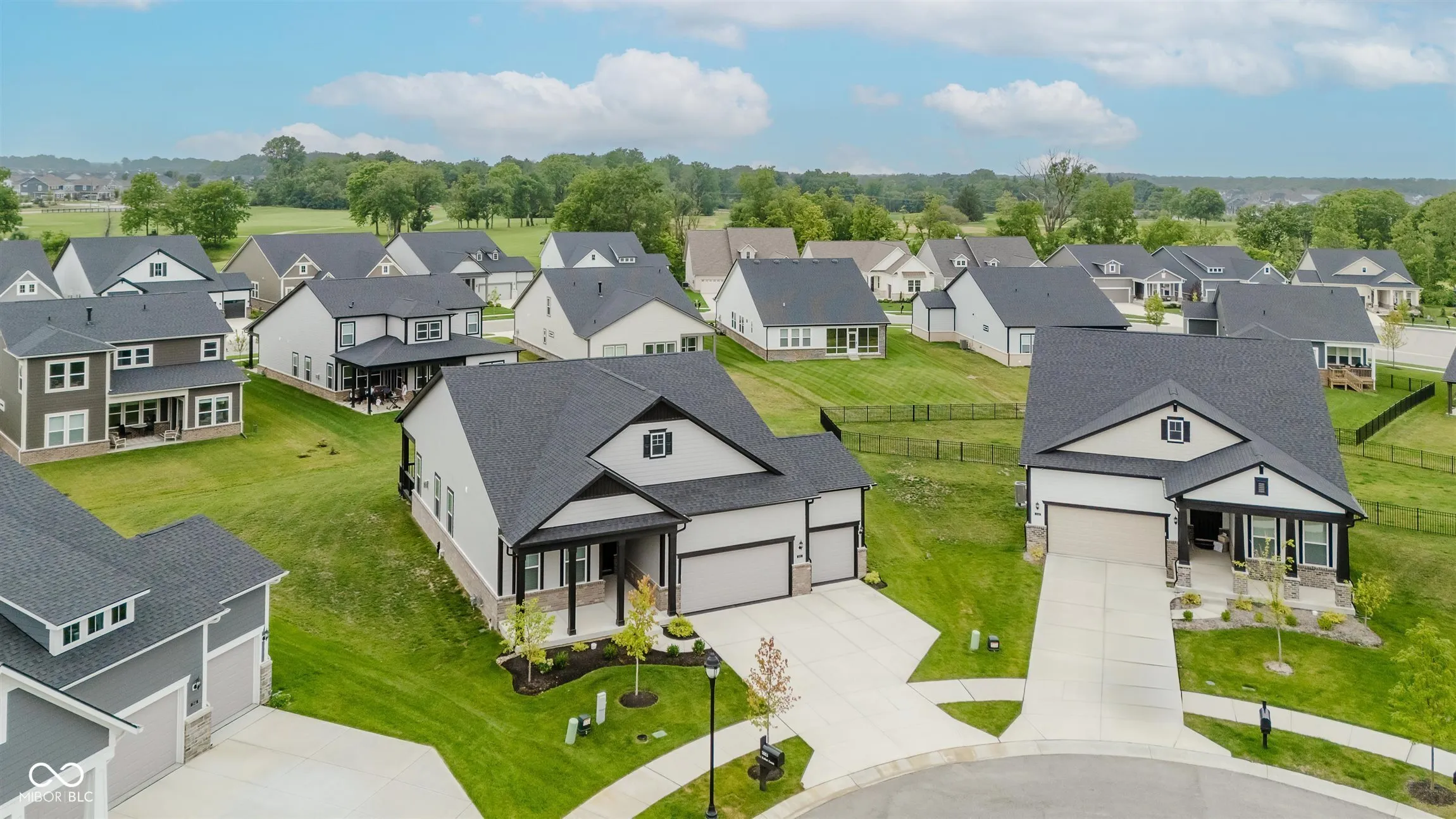 Welcome to this stunning 3 bedroom, 3 full bath Ranch w/finished basement home located in the Coveted Wood Wind Golf Community in Westfield, where modern elegance blend with custom craftsmanship. Upon entering, you’ll be greeted by spacious interiors featuring impressive 10′ ceilings and custom trim that screams timeless sophistication. The gourmet kitchen is a chefs dream, equipped with quarts countertops, massive island, high-end stainless steel appliances, built in oven and gas cooktop. Dining area is perfect for hosting large gatherings. Relax by the gas log fireplace in the great room. Primary Suite will not disappoint! With a spa-like feel, highlighted by luxurious ceramic tile floors and shower, as well as quartz countertops and a custom walk-in closet. Enjoy seamless indoor-outdoor living with the covered rear deck, equipped with ceiling fan for those warm Indiana nights and full yard irrigation system. This home exemplifies functional excellence with a 4 car finished garage & stunning epoxy floors. Entertain in style in the finished basement equipped with surround sound, wet-bar rough in, cozy nook or game room area as well as a guest bedroom with walk in closet and a full bath. The location is exceptional being close to Grand Park, walking distance to Wood Wind Golf Course, Clay Terrace, Restaurants, walking trails etc. Discover your dream home in this meticulously crafted and maintained newly constructed home (2024) on an oversized premium cul-de-sac lot in this stunning community.