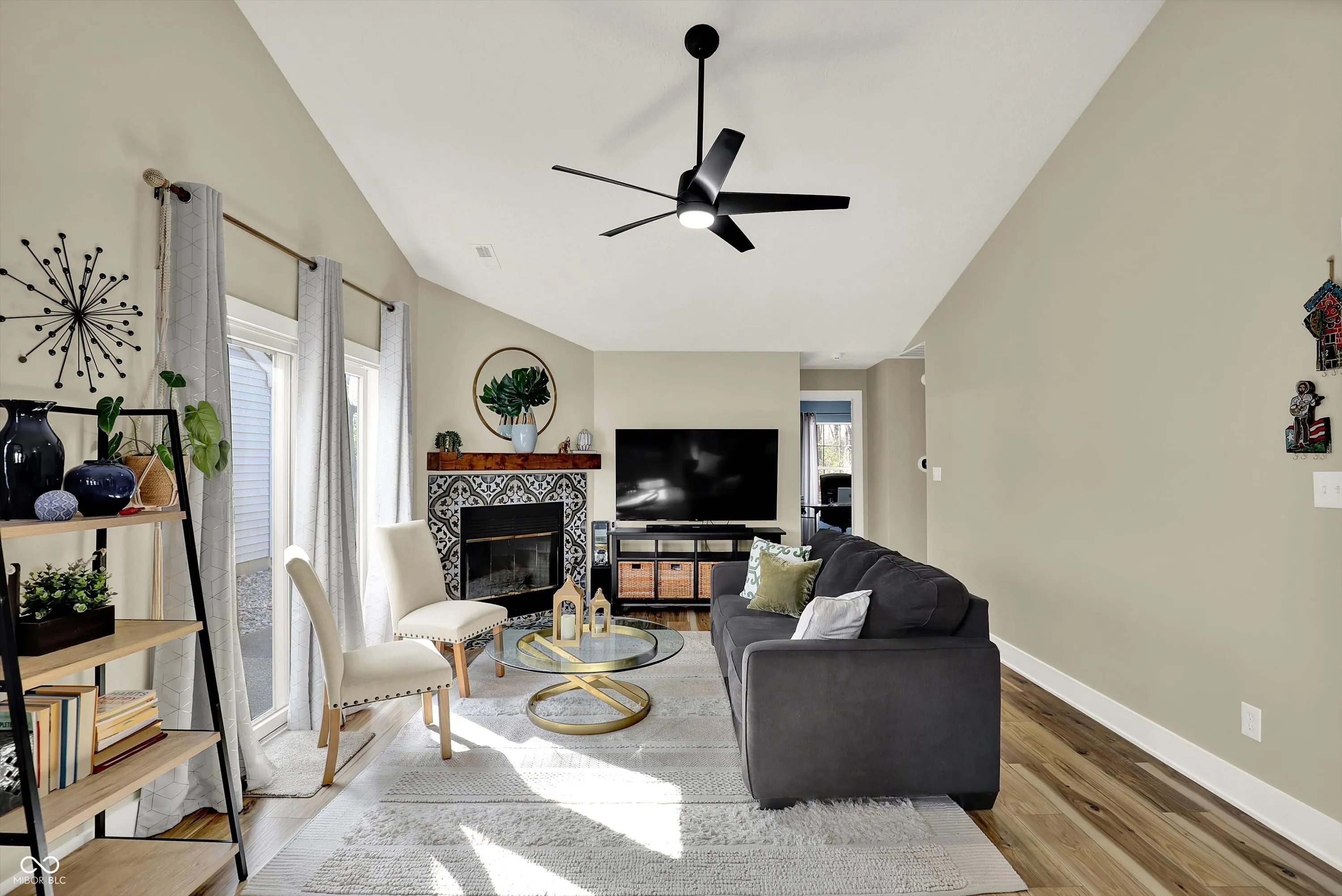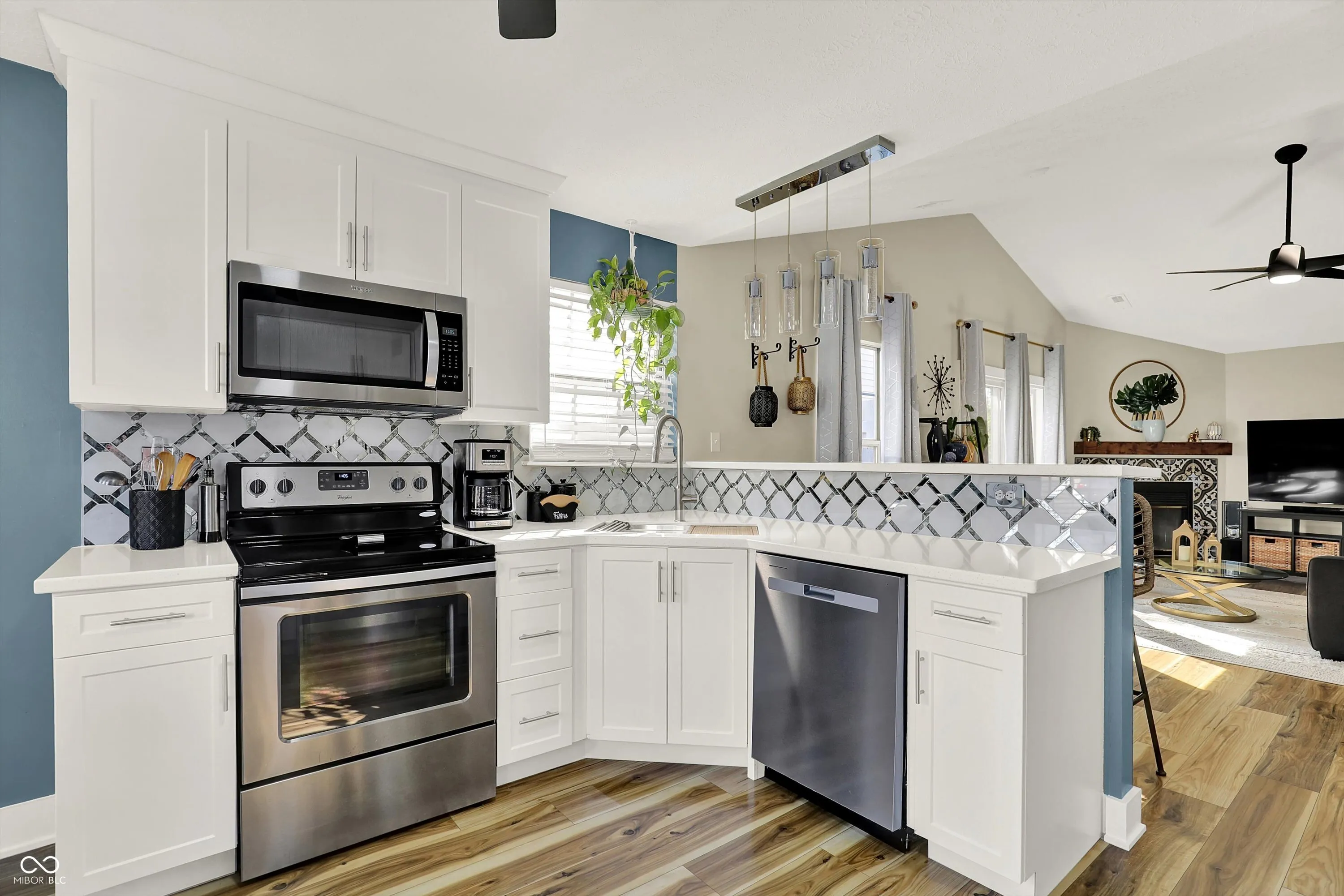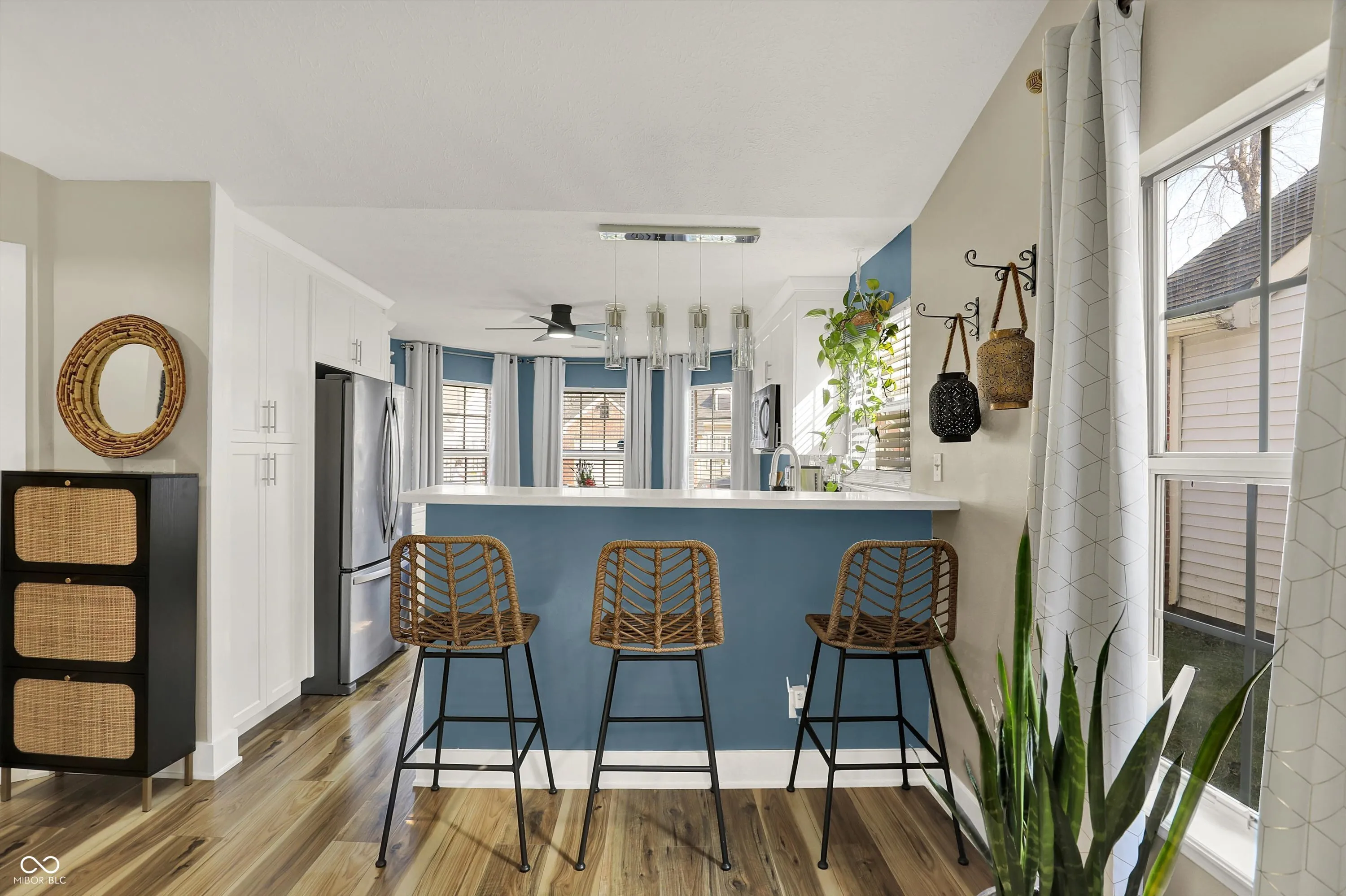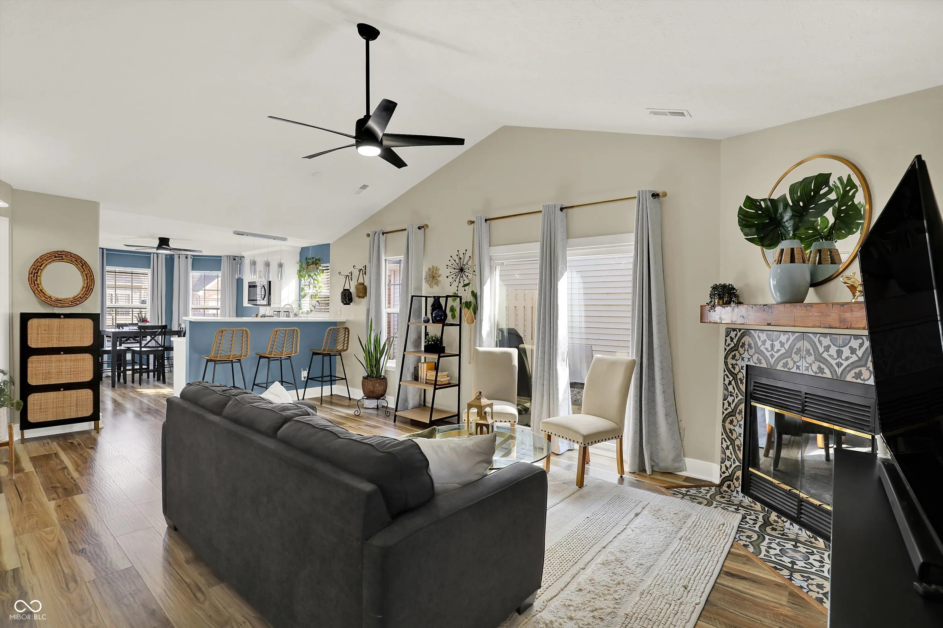 Nestled on a beautiful wooded lot, this fully updated 3-bedroom, 2-bath home offers the perfect blend of modern style and serene natural surroundings. Enjoy peaceful views from the expansive custom deck overlooking mature trees and a gently flowing creek-your own private retreat right at home. Step inside to a bright, open great room with vaulted ceilings, updated wood-style flooring, contemporary fixtures, and fresh paint throughout. A cozy wood-burning fireplace with a stunning Mediterranean-style tile surround and rustic mantel creates a warm and inviting focal point. The updated eat-in kitchen features new cabinetry, Corian countertops, stainless steel appliances, brushed nickel hardware, tile backsplash, and a breakfast bar, all complemented by a charming bay window that fills the space with natural light. The spacious primary suite boasts vaulted ceilings, a private en-suite bath, and direct access to the back deck-perfect for morning coffee or unwinding in the evening. A large second bedroom with a bay window offers flexibility as a guest suite or second primary, while the third bedroom overlooks the tranquil backyard. Additional highlights include a dedicated laundry room with built-in storage cabinets and a finished attached one-car garage with extra storage space. Outdoor living shines with a private patio leading to the expansive deck, ideal for entertaining or simply enjoying the peaceful wooded setting and soothing sounds of the nearby stream. Located in a desirable area near Eagle Creek Reservoir with access to trails, and just minutes from shopping, I-465, I-65, the airport, and downtown Indianapolis-this move-in-ready home truly has it all.