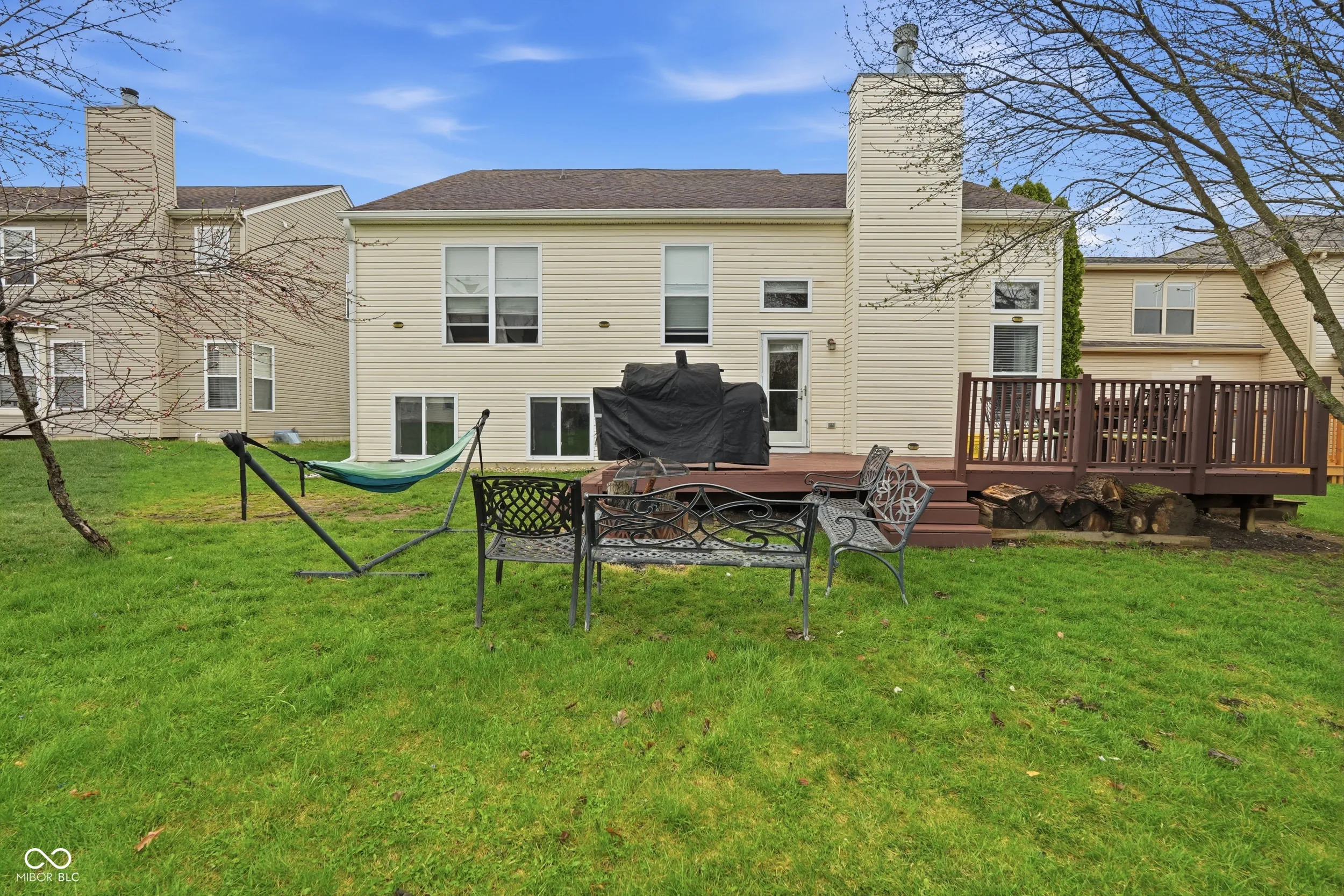 Gorgeous multi level home with space for everyone in popular Brookstone Park! This beautifully maintained 5 bedroom, 3.5 bathroom home offers a thoughtfully designed floor plan with 9 foot ceilings throughout and a dramatic 20 foot ceiling in the living room, creating an open and inviting feel from the moment you walk in. The main level features a separate formal dining room, eat in kitchen with large island, laundry room, and spacious living room with wood burning fireplace, perfect for both everyday living and entertaining. The kitchen opens to an expansive back deck overlooking a quiet backyard, ideal for outdoor living. The lower level offers incredible flexibility with an entertainment room, bedroom and/or office space, full bathroom, and separate gym area. Upstairs, the private primary suite occupies its own level, featuring a large walk in closet, double sinks, garden tub, and separate shower, creating a peaceful retreat. The top level includes a large loft area, three additional bedrooms, and a full bathroom, providing plenty of space for family, guests, or work from home needs. Additional features include a 2 car garage with large side bump out for extra storage, spacious multi level layout, and thoughtful updates throughout. Highly desired Carmel location close to shopping, dining, parks, and top rated schools, this home offers comfort, flexibility, and room to grow.
