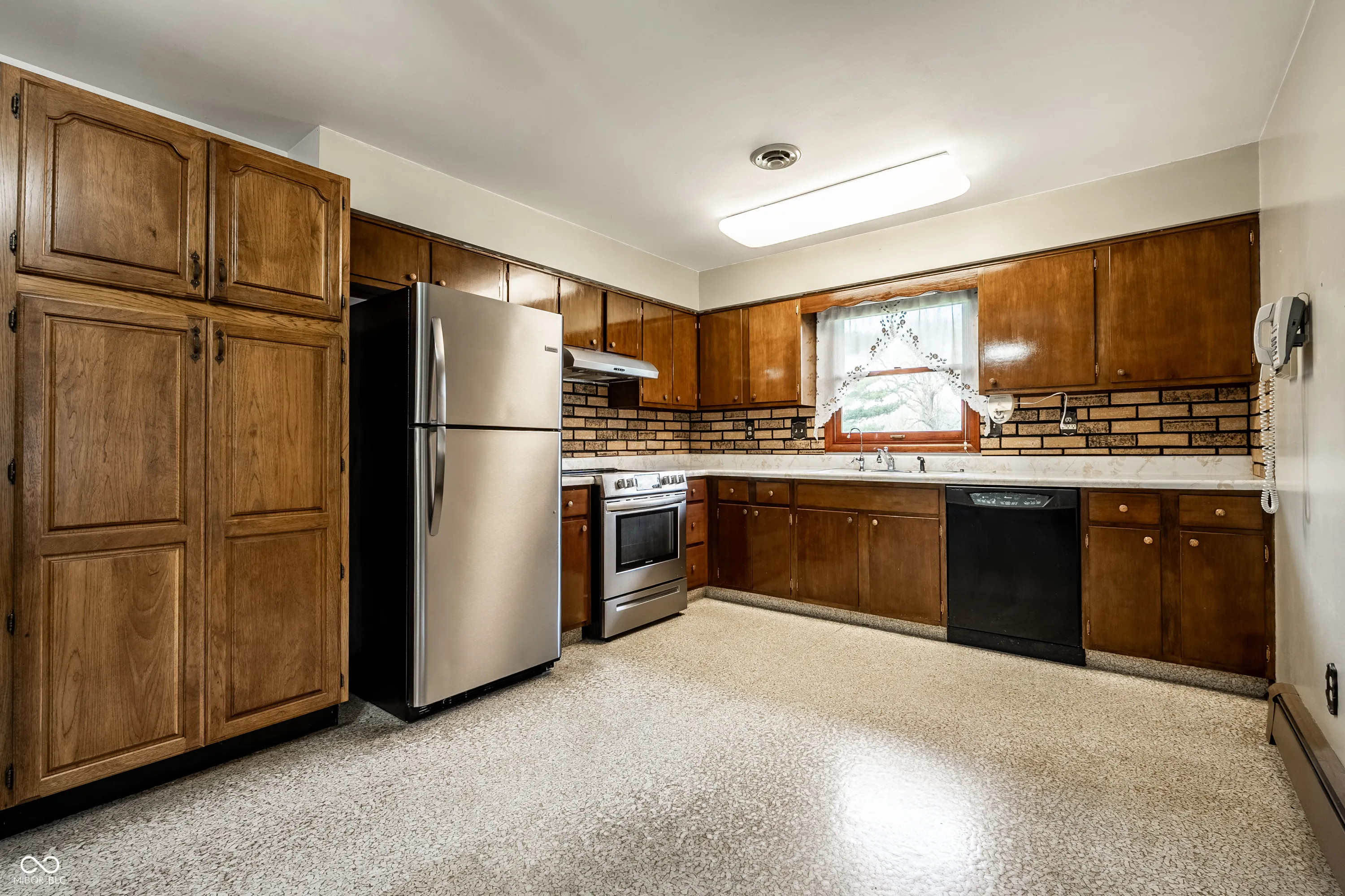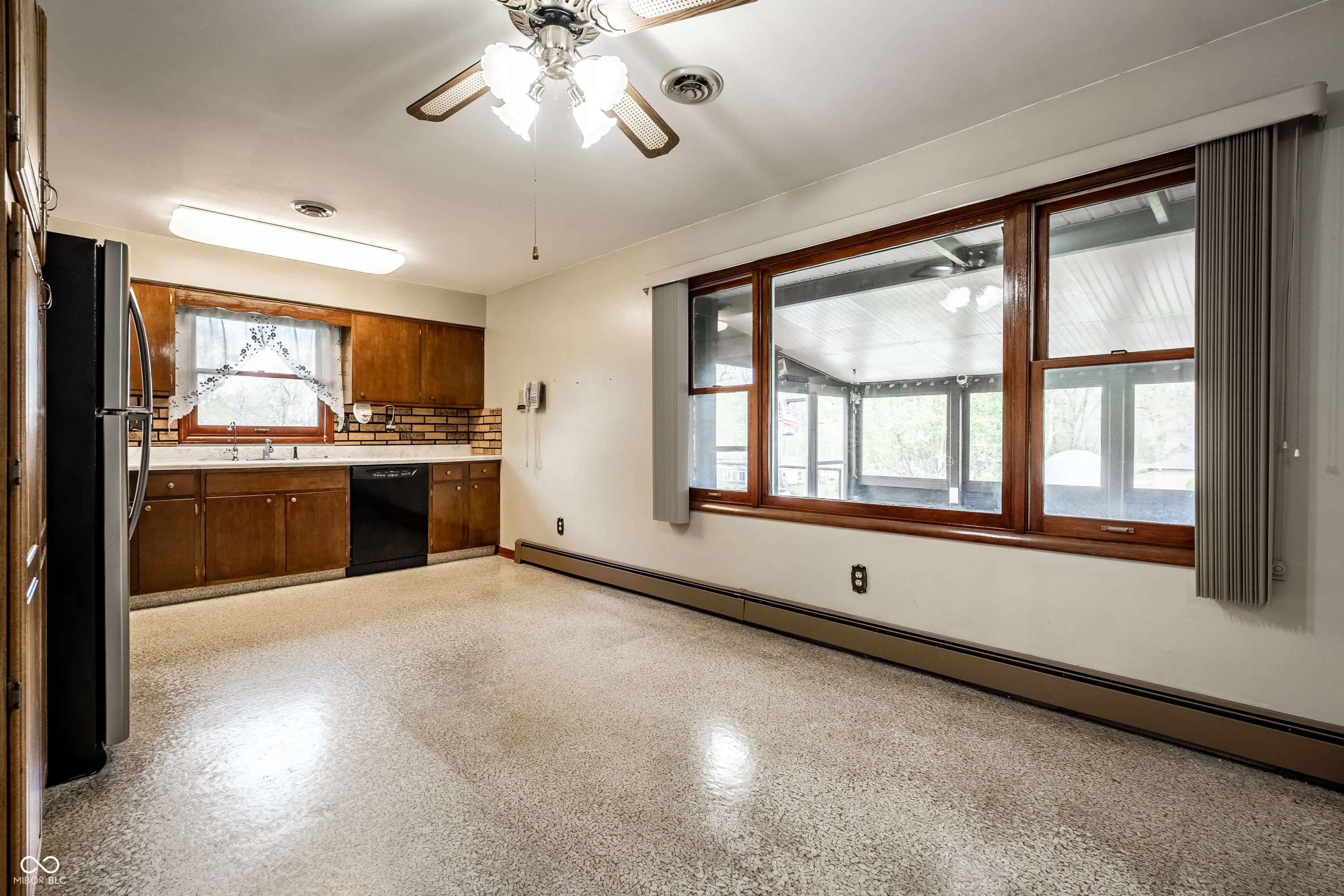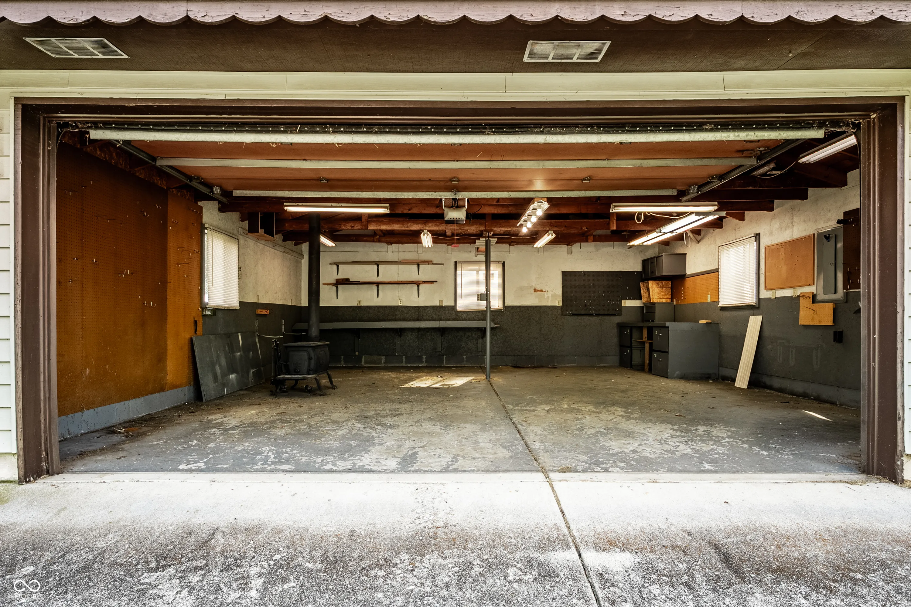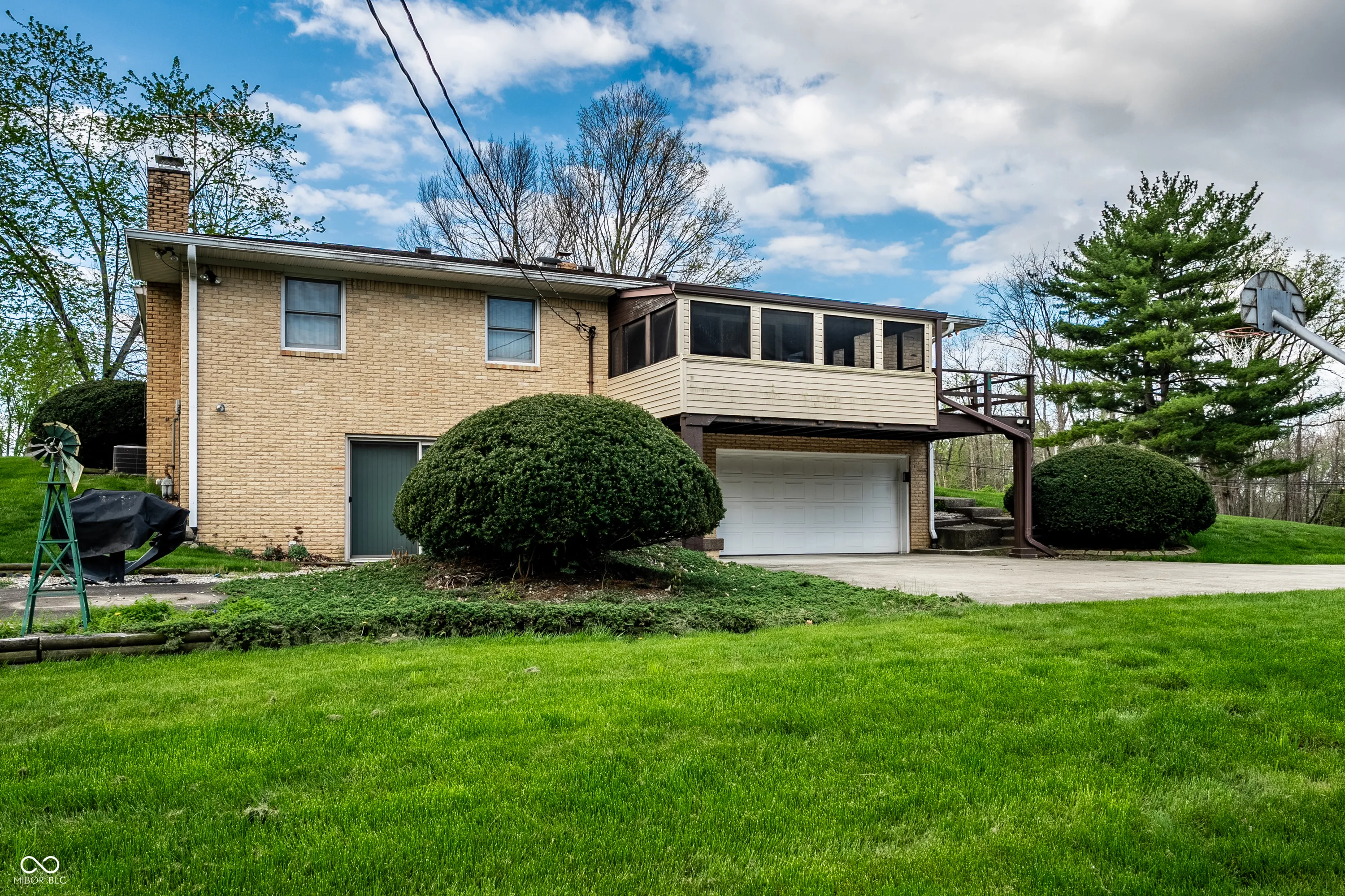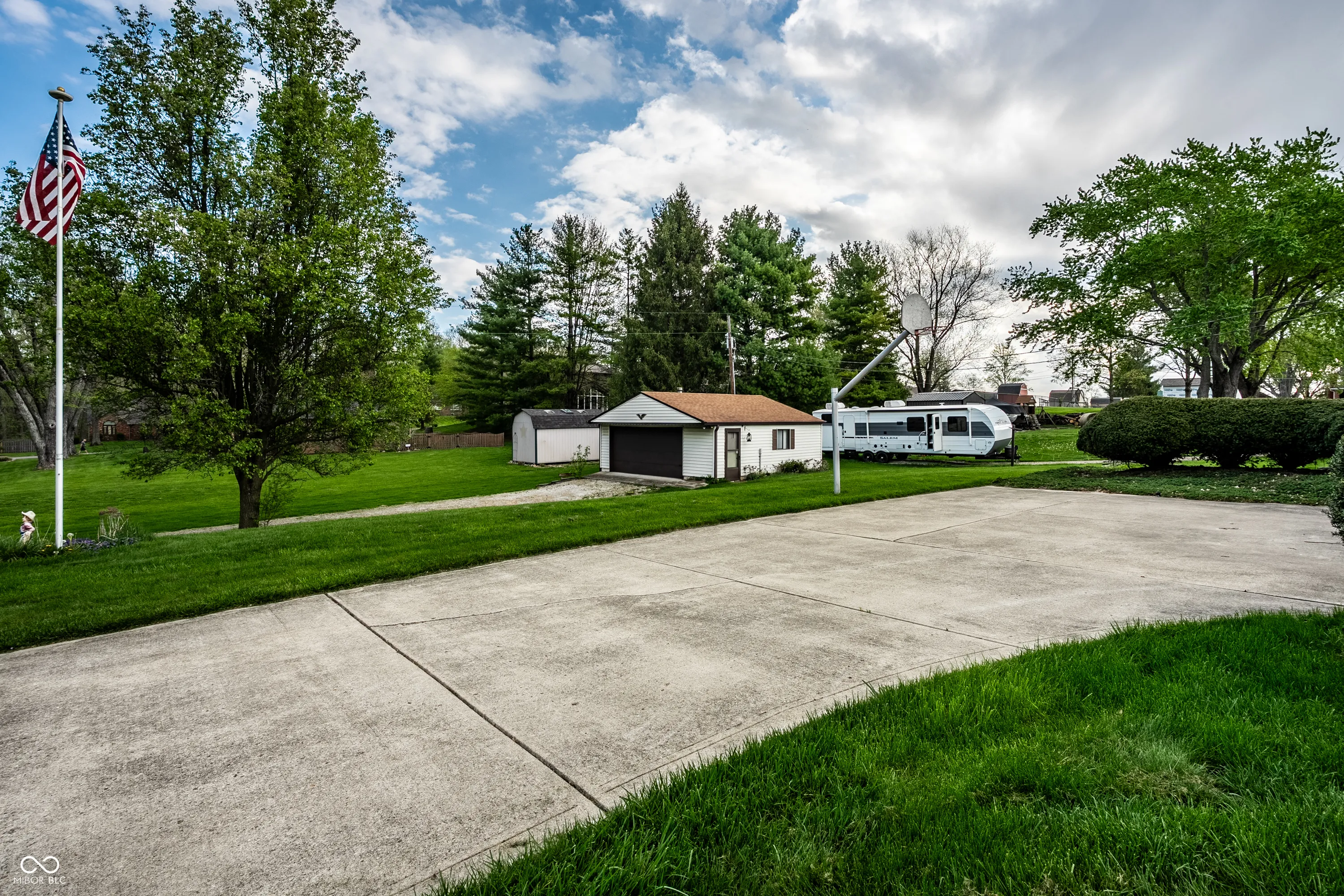 Situated in the highly sought after town of New Palestine, this single-family, one owner, well maintained home presents a distinctive opportunity for a personalized living experience. Established in 1967, this property is a blank canvas to make your own without the confines of an HOA. The single-story layout encompasses 1288 square feet of interior living space on the main floor and features a large front living room, spacious kitchen, 3 bedrooms and screened-in balcony porch extending your living space. The walk-out basement offers an additional 729 square feet, currently used as the family room and complete with full bath, laundry room and access to the attached spacious 2 car garage . Outside, the property extends across an impressive .65 acre corner lot with a second detached 2 car garage, previously used as a wood-working workshop and complete with a cozy wood burning stove. A nice perk of this home is the existence of hardwood floors present under the existing main floor carpet. The sturdy brick structure, appealing floorplan, large amount of storage areas and space for parking with nearby proximity to restaurants and shopping make this home a keeper awaiting its next chapter.