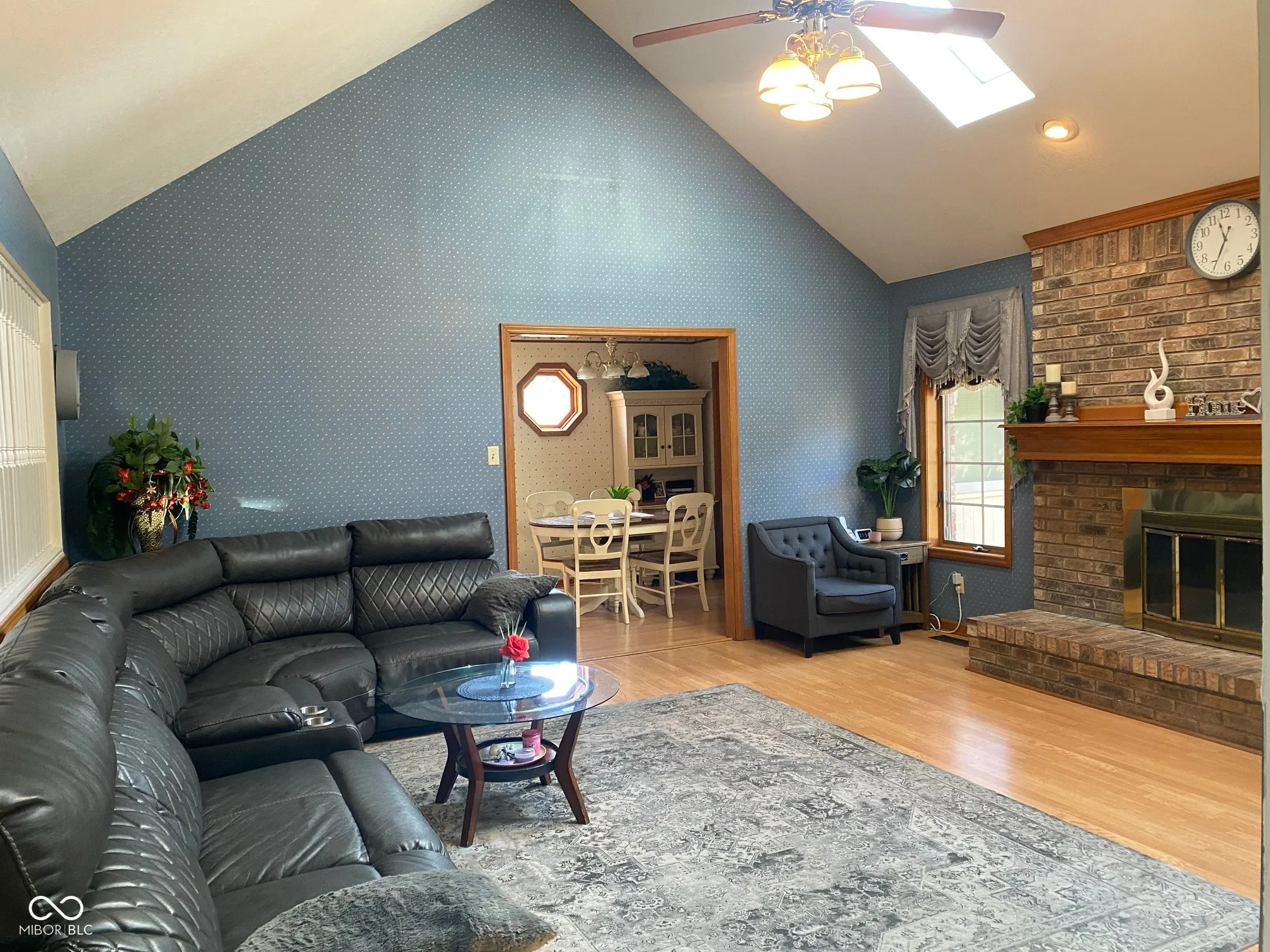 This single family residence brick ranch with basement presents an inviting home, thoroughly ready for immediate enjoyment. Roof, gutters, sky lights were replaced in 2025. The central living room offers a captivating ambiance, featuring a cozy fireplace that promises warmth and comfort. Overhead, the high ceiling and vaulted ceiling create an expansive atmosphere, further enhanced by a strategically placed skylight that bathes the area in natural illumination. A skylight brightens the space, making meal preparation a cheerful experience. Beyond the interior, a delightful sunroom provides a tranquil retreat, perfect for quiet moments. Outdoor enjoyment is effortless with a dedicated deck and an outdoor dining area, ideal for alfresco meals and gatherings. The property also includes a private fenced backyard, offering a secure outdoor space, complemented by a practical shed for additional storage.