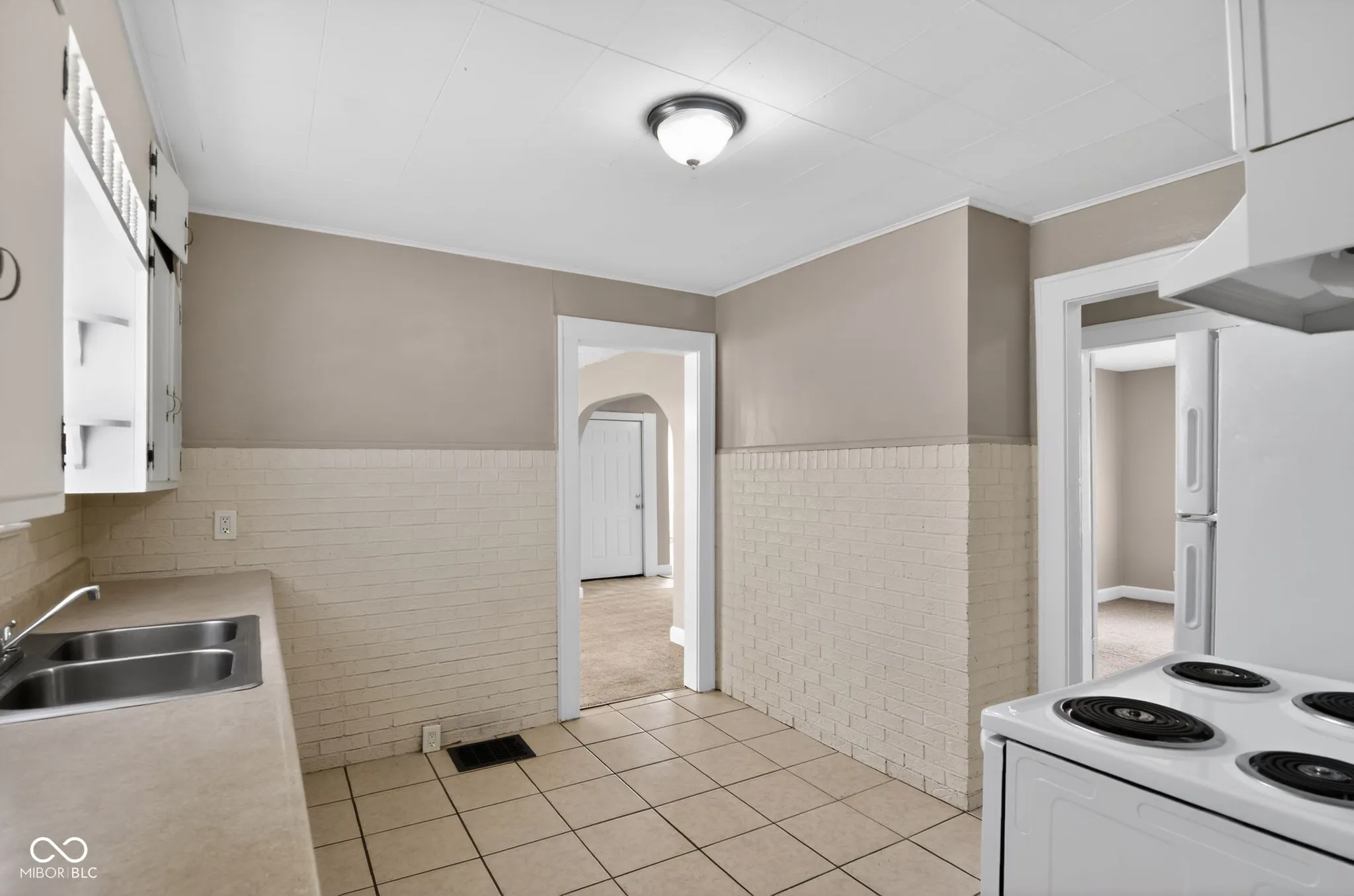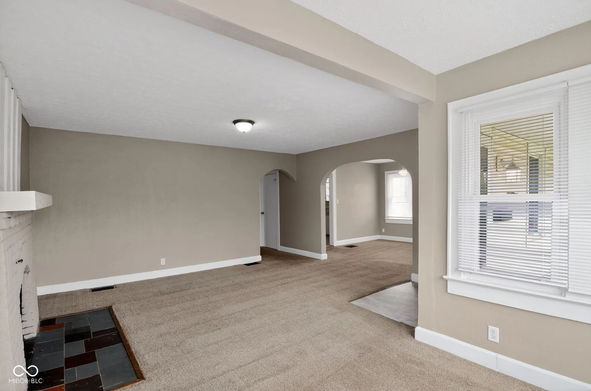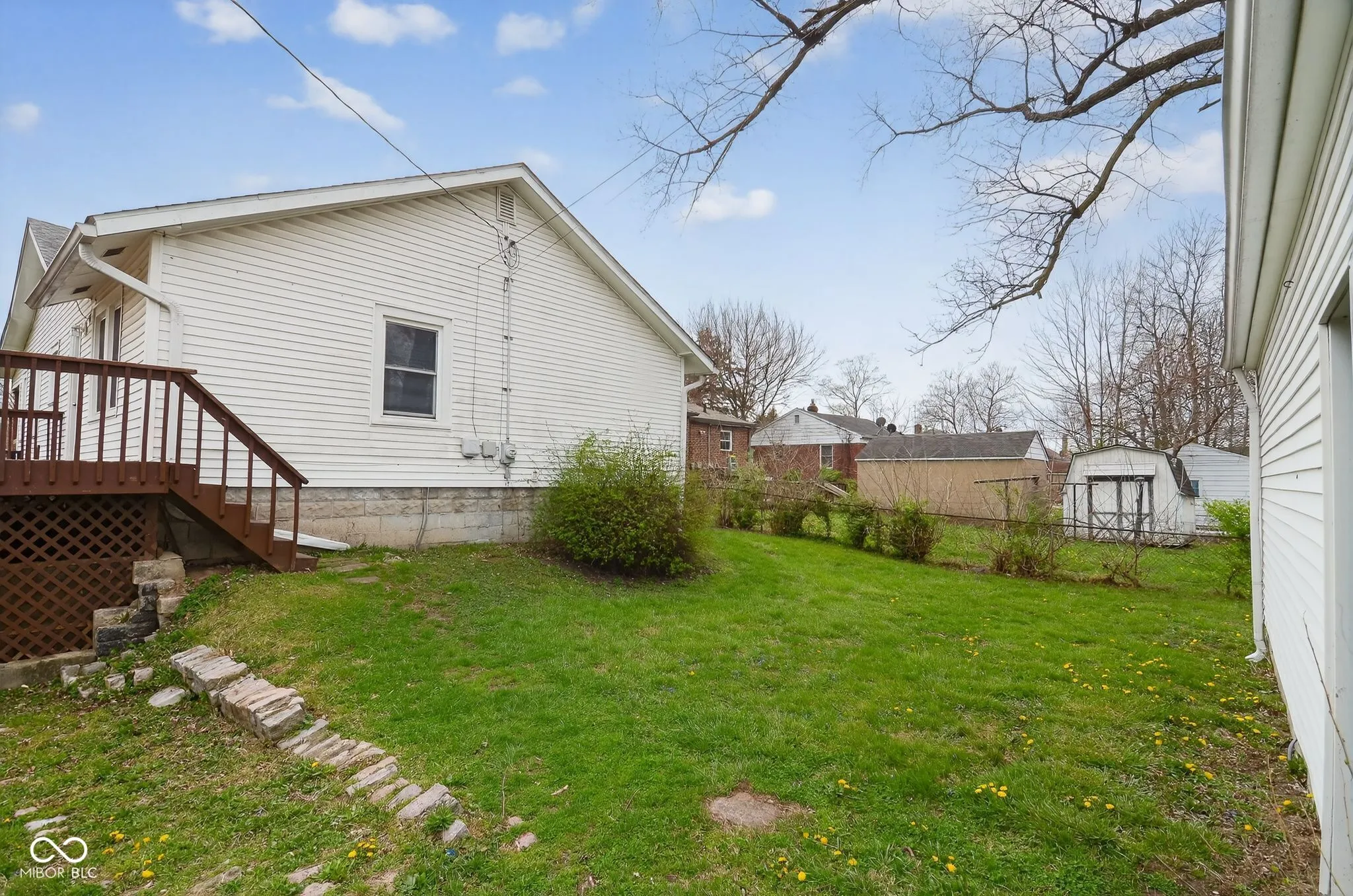This charming bungalow at 5528 E 21st St offers a perfect blend of classic character and functional updates in the vibrant Community Heights area. The main level welcomes you with an open-concept living and dining space featuring neutral tones, an arched doorway, and an abundance of natural light. The well-preserved kitchen boasts ample cabinetry and original built-ins, maintaining the home’s historic appeal. The property includes three comfortable bedrooms and a clean, vintage-style full bathroom with classic wall tiling. A major highlight is the massive, over-sized detached two-car garage-ideal for a workshop or significant storage-accessible via a long gravel driveway. The expansive rear deck provides a great space for outdoor dining, overlooking a deep, level backyard. Complete with a full, unfinished basement for additional storage or future expansion, this move-in-ready home is conveniently located just minutes from the amenities of Irvington and the 10th Street corridor.