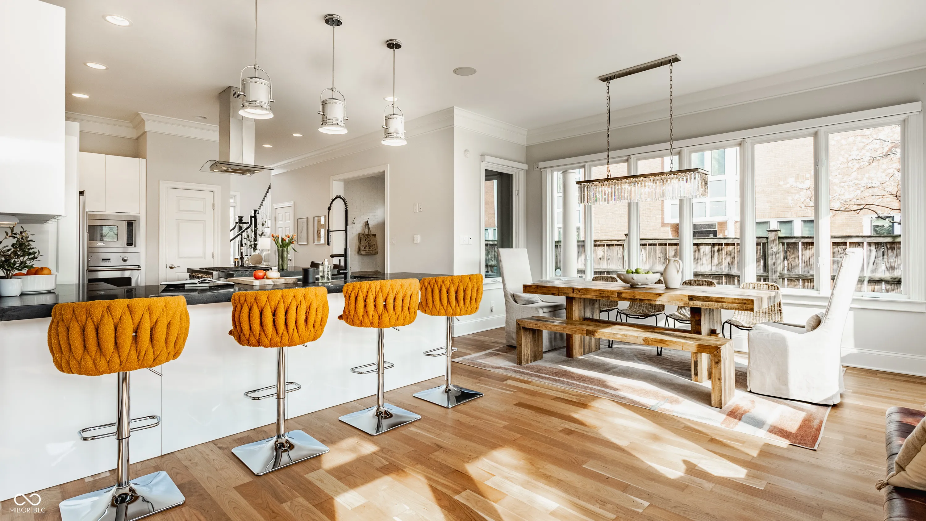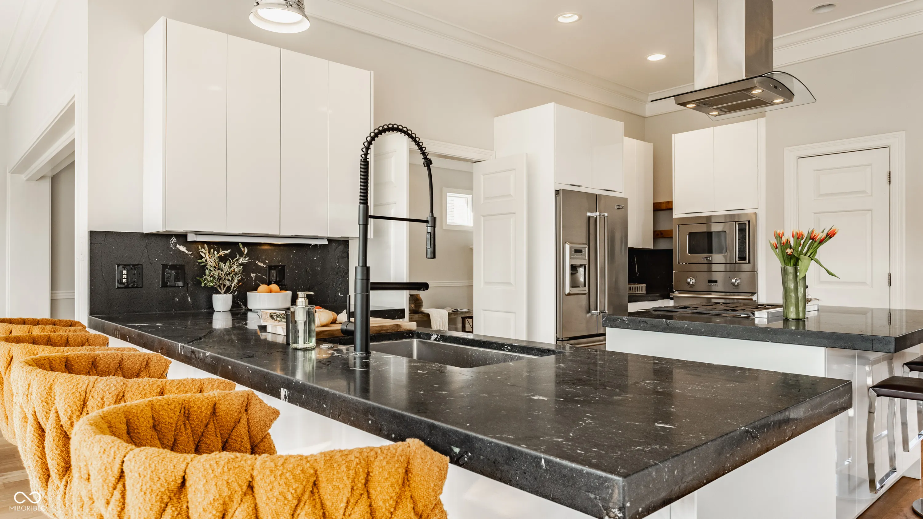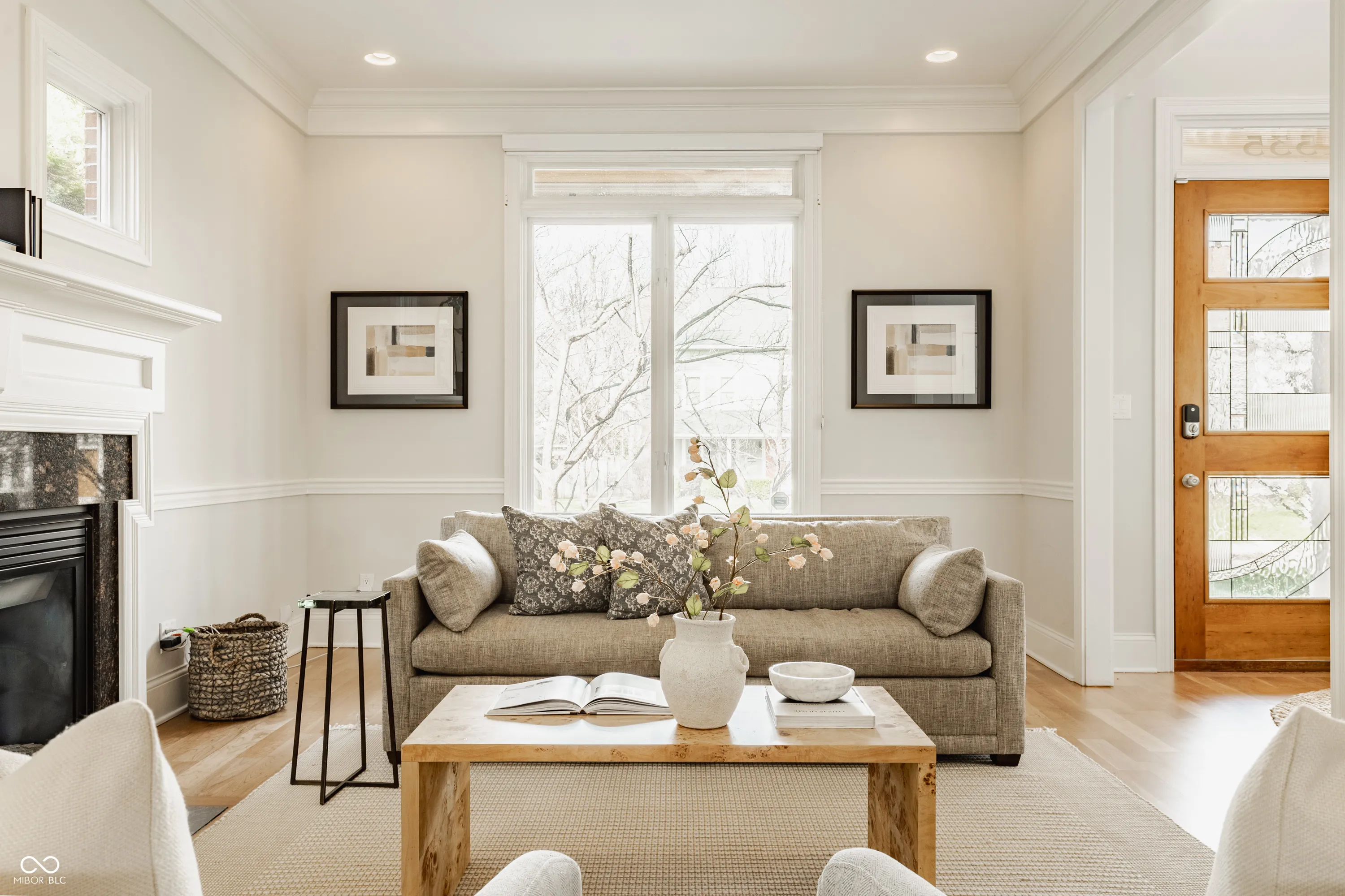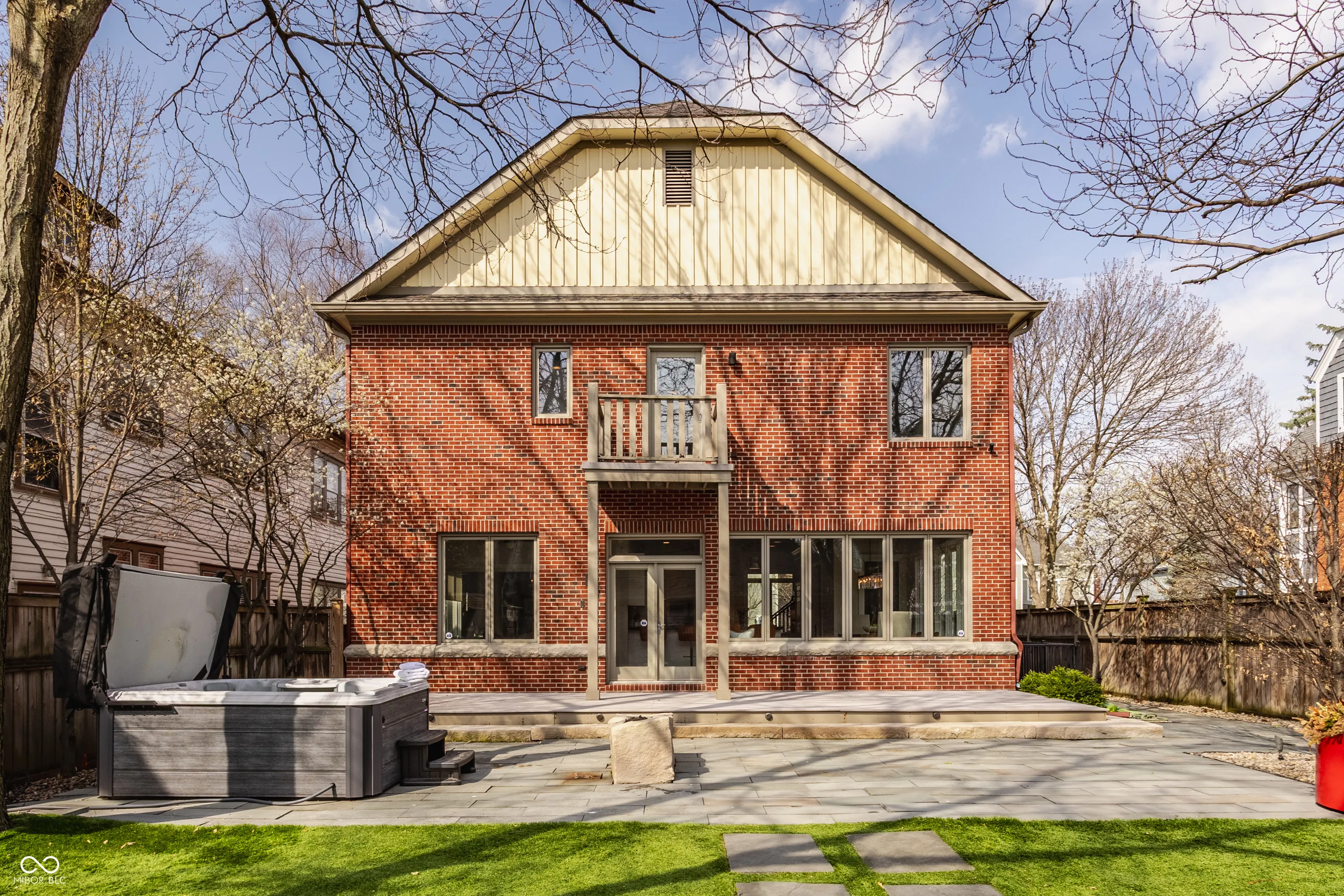 Located in the heart of the prestigious Old Northside, this custom-built residence offers sophisticated living space that seamlessly blends historic charm with timeless luxury. The large foyer makes a striking first impression with soaring 20-foot ceilings and a spacious loft, leading into a light-filled main level defined by 10-foot ceilings and stunning solid, natural American cherry hardwood floors. Recently refinished to highlight their organic warmth, these floors complement a fresh, neutral palette and custom woodwork that flows throughout the entire home. The gourmet kitchen, bathed in natural light, is a chef’s dream, featuring custom cabinetry, professional-grade Viking appliances, and thick soapstone countertops that provide a durable yet high-end aesthetic perfect for entertaining. Practical luxury is found in automated blinds that offer effortless control over the sunlight throughout the main living areas, as well as the beautifully appointed mudroom featuring a dedicated dog bath for ultimate convenience. Equally impressive is the primary suite, which includes a meticulously designed bathroom featuring a large walk-in shower, a deep soaking tub that maintains a modern, spa-like feel, a custom walk-in closet and upstairs covered porch. The expansive finished basement is perfect for a home theater and includes a custom wine cellar and wet bar. Outside, the professionally landscaped backyard serves as a private oasis with premium blue stone, a brand-new hot tub, and high-quality turf for year-round durability. A rare four-car garage is perfect for the car enthusiast. The home is steps away from the vibrant energy of Bottleworks, Mass Ave, Tinker Street, Bocca and Provider, among others. Also situated minutes from the IU Health multi-billion dollar project, this home represents a rare opportunity in the city’s most walkable neighborhoods. Welcome home!
