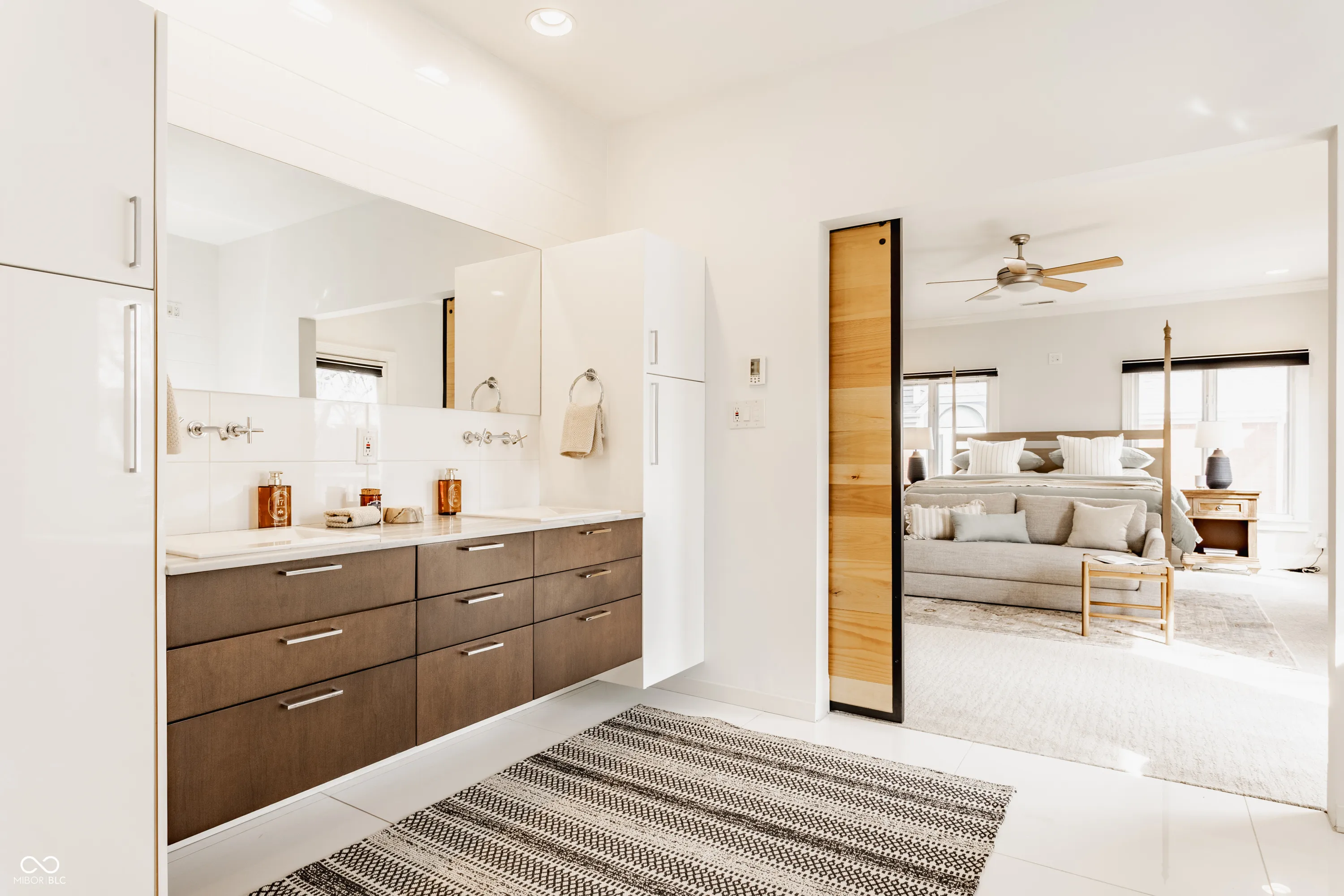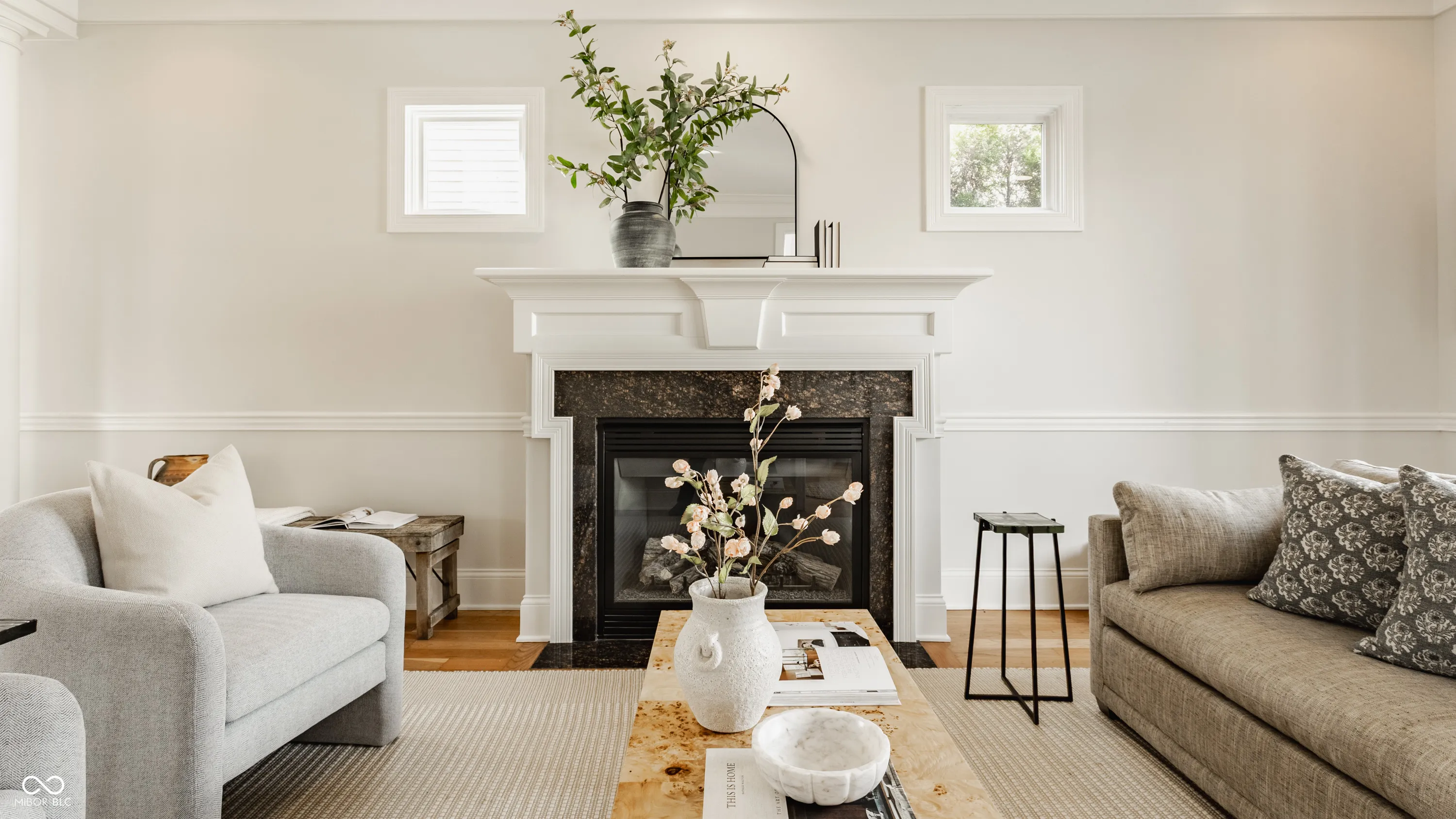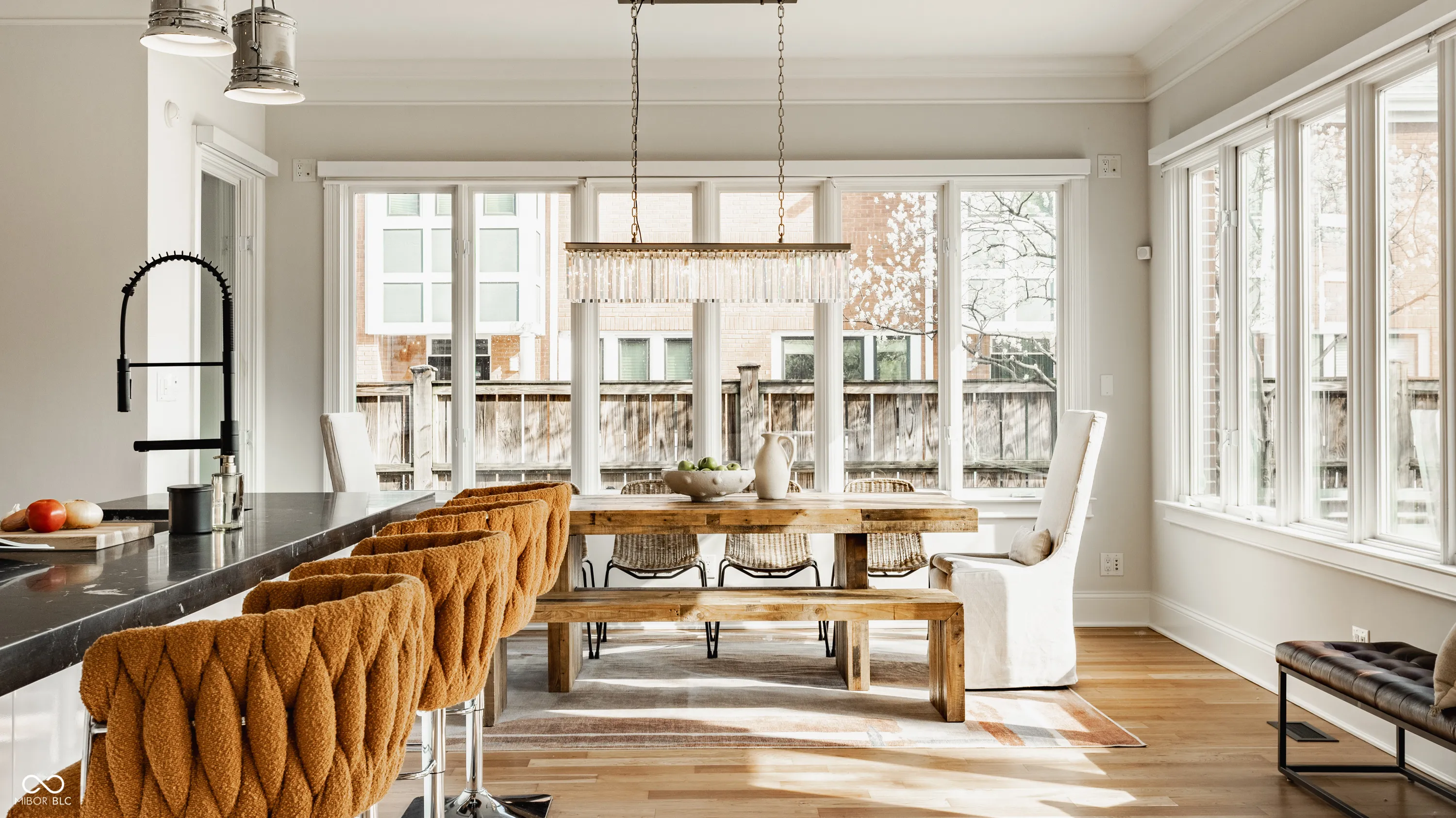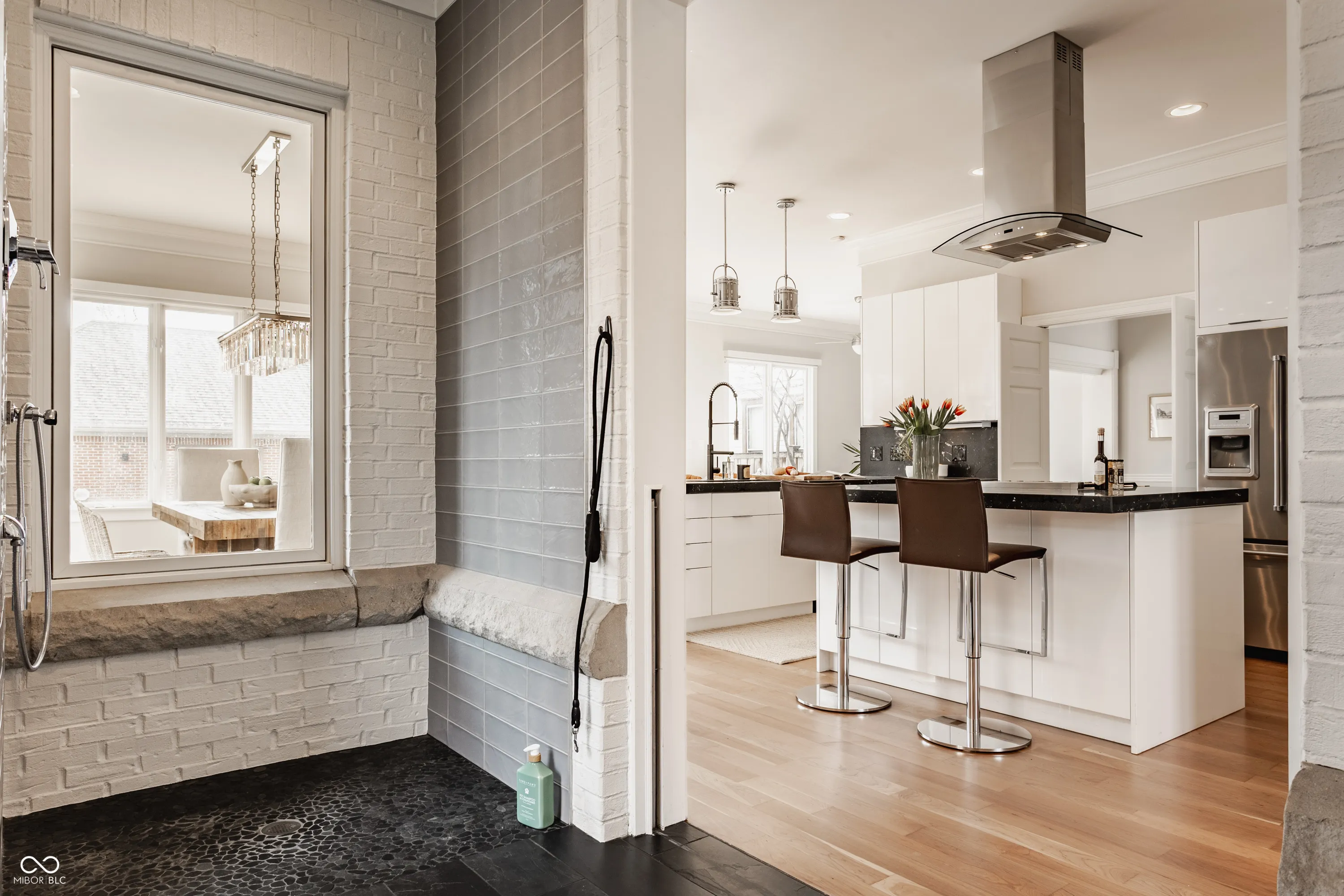 Located in the heart of the prestigious Old Northside, this custom-built residence offers sophisticated living space that seamlessly blends historic charm with timeless luxury. The large foyer makes a striking first impression with soaring 20-foot ceilings and a spacious loft, leading into a light-filled main level defined by 10-foot ceilings and stunning solid, natural American cherry hardwood floors. Recently refinished to highlight their organic warmth, these floors complement a fresh, neutral palette and custom woodwork that flows throughout the entire home. The gourmet kitchen, bathed in natural light, is a chef’s dream, featuring custom cabinetry, professional-grade Viking appliances, and thick soapstone countertops that provide a durable yet high-end aesthetic perfect for entertaining. Practical luxury is found in automated blinds that offer effortless control over the sunlight throughout the main living areas, as well as the beautifully appointed mudroom featuring a dedicated dog bath for ultimate convenience. Equally impressive is the primary suite, which includes a meticulously designed bathroom featuring a large walk-in shower, a deep soaking tub that maintains a modern, spa-like feel, a custom walk-in closet and upstairs covered porch. The expansive finished basement is perfect for a home theater and includes a custom wine cellar and wet bar. Outside, the professionally landscaped backyard serves as a private oasis with premium blue stone, a brand-new hot tub, and high-quality turf for year-round durability. A rare four-car garage is perfect for the car enthusiast. The home is steps away from the vibrant energy of Bottleworks, Mass Ave, Tinker Street, Bocca and Provider, among others. Also situated minutes from the IU Health multi-billion dollar project, this home represents a rare opportunity in the city’s most walkable neighborhoods. Welcome home!