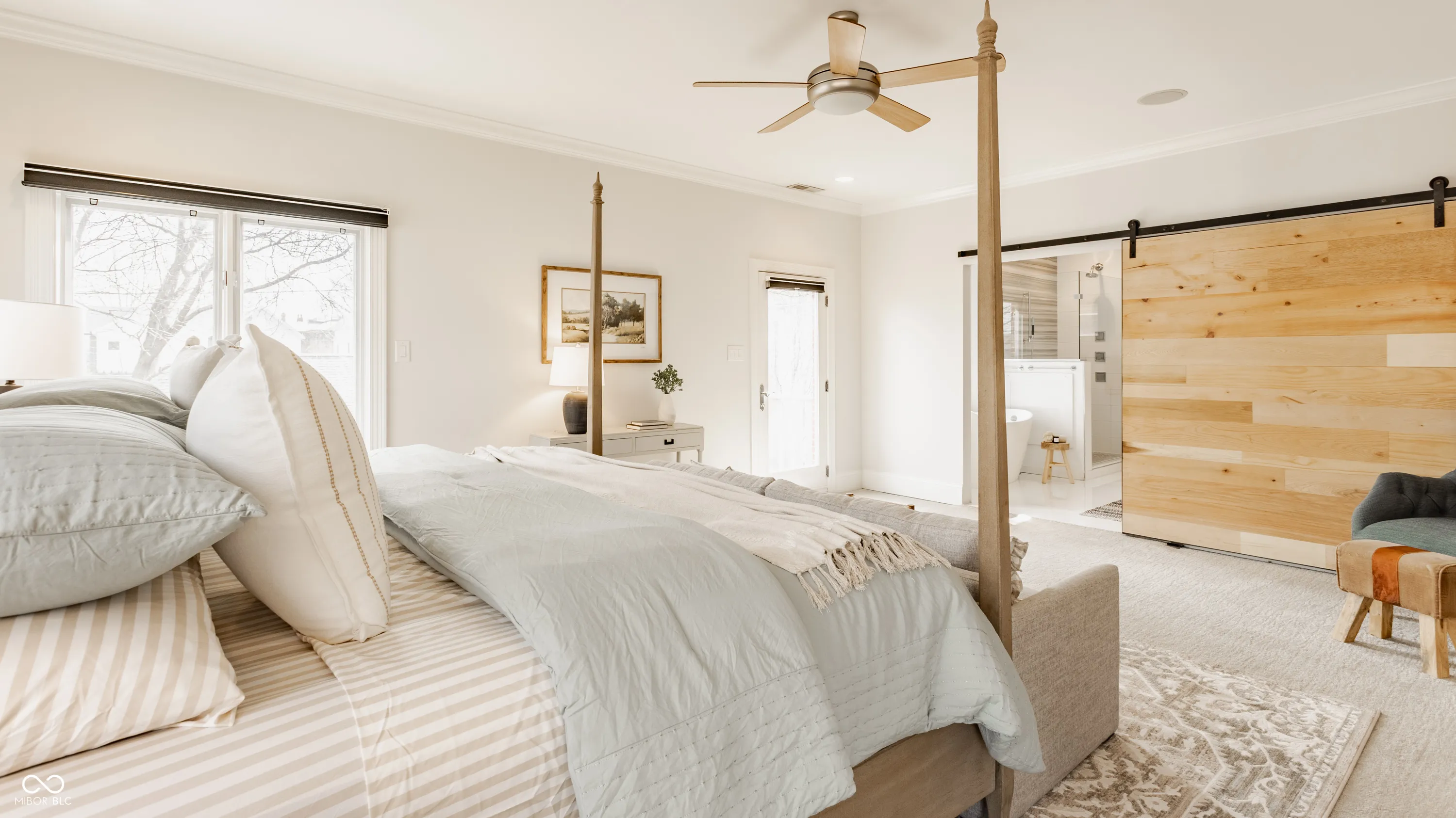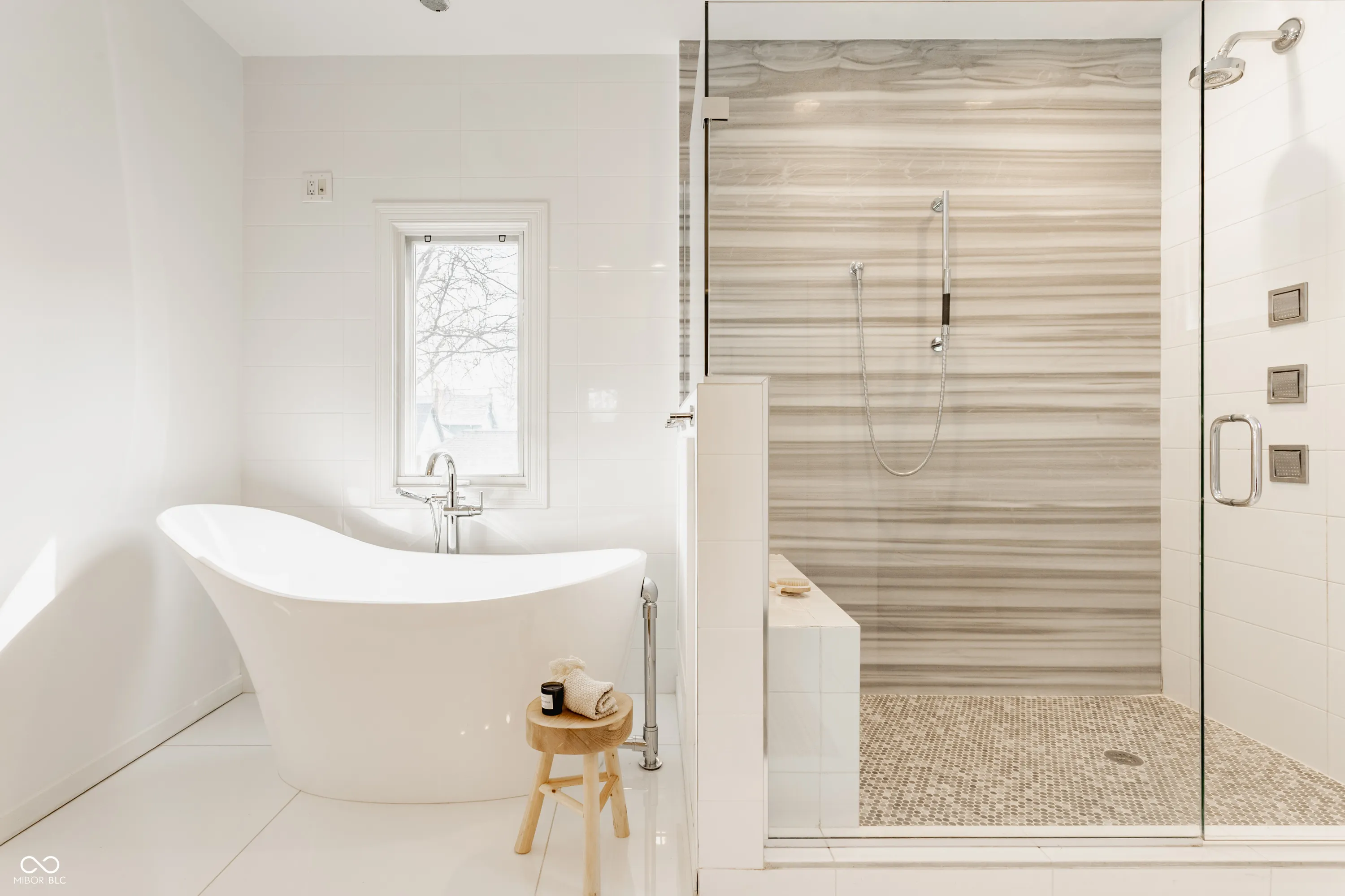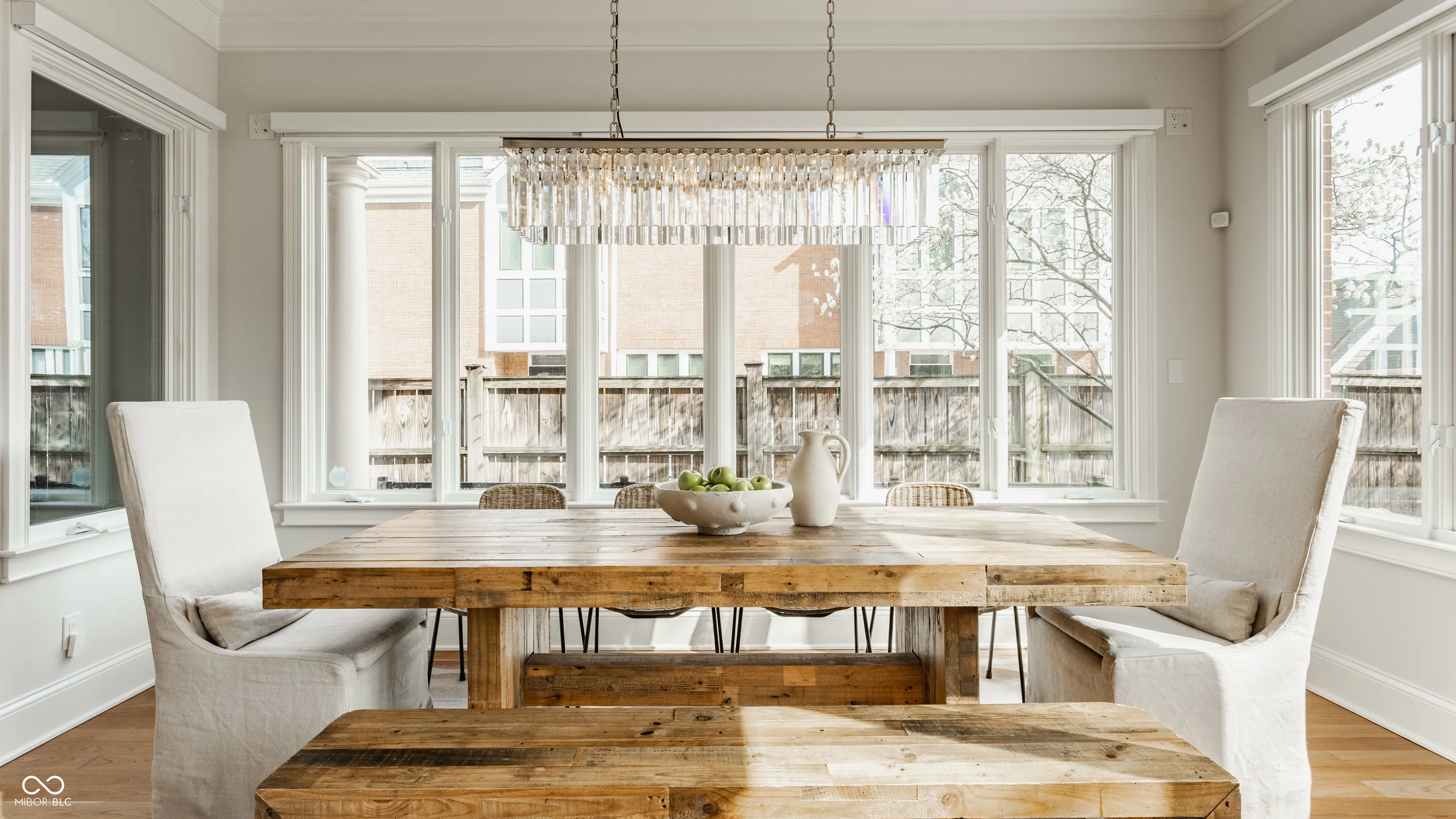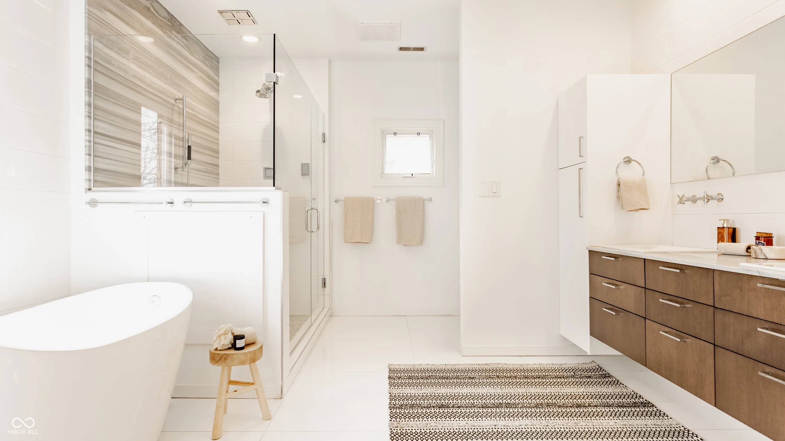 Located in the heart of the prestigious Old Northside, this custom-built residence offers sophisticated living space that seamlessly blends historic charm with timeless luxury. The large foyer makes a striking first impression with soaring 20-foot ceilings and a spacious loft, leading into a light-filled main level defined by 10-foot ceilings and stunning solid, natural American cherry hardwood floors. Recently refinished to highlight their organic warmth, these floors complement a fresh, neutral palette and custom woodwork that flows throughout the entire home. The gourmet kitchen, bathed in natural light, is a chef’s dream, featuring custom cabinetry, professional-grade Viking appliances, and thick soapstone countertops that provide a durable yet high-end aesthetic perfect for entertaining. Practical luxury is found in automated blinds that offer effortless control over the sunlight throughout the main living areas, as well as the beautifully appointed mudroom featuring a dedicated dog bath for ultimate convenience. Equally impressive is the primary suite, which includes a meticulously designed bathroom featuring a large walk-in shower, a deep soaking tub that maintains a modern, spa-like feel, a custom walk-in closet and upstairs covered porch. The expansive finished basement is perfect for a home theater and includes a custom wine cellar and wet bar. Outside, the professionally landscaped backyard serves as a private oasis with premium blue stone, a brand-new hot tub, and high-quality turf for year-round durability. A rare four-car garage is perfect for the car enthusiast. The home is steps away from the vibrant energy of Bottleworks, Mass Ave, Tinker Street, Bocca and Provider, among others. Also situated minutes from the IU Health multi-billion dollar project, this home represents a rare opportunity in the city’s most walkable neighborhoods. Welcome home!