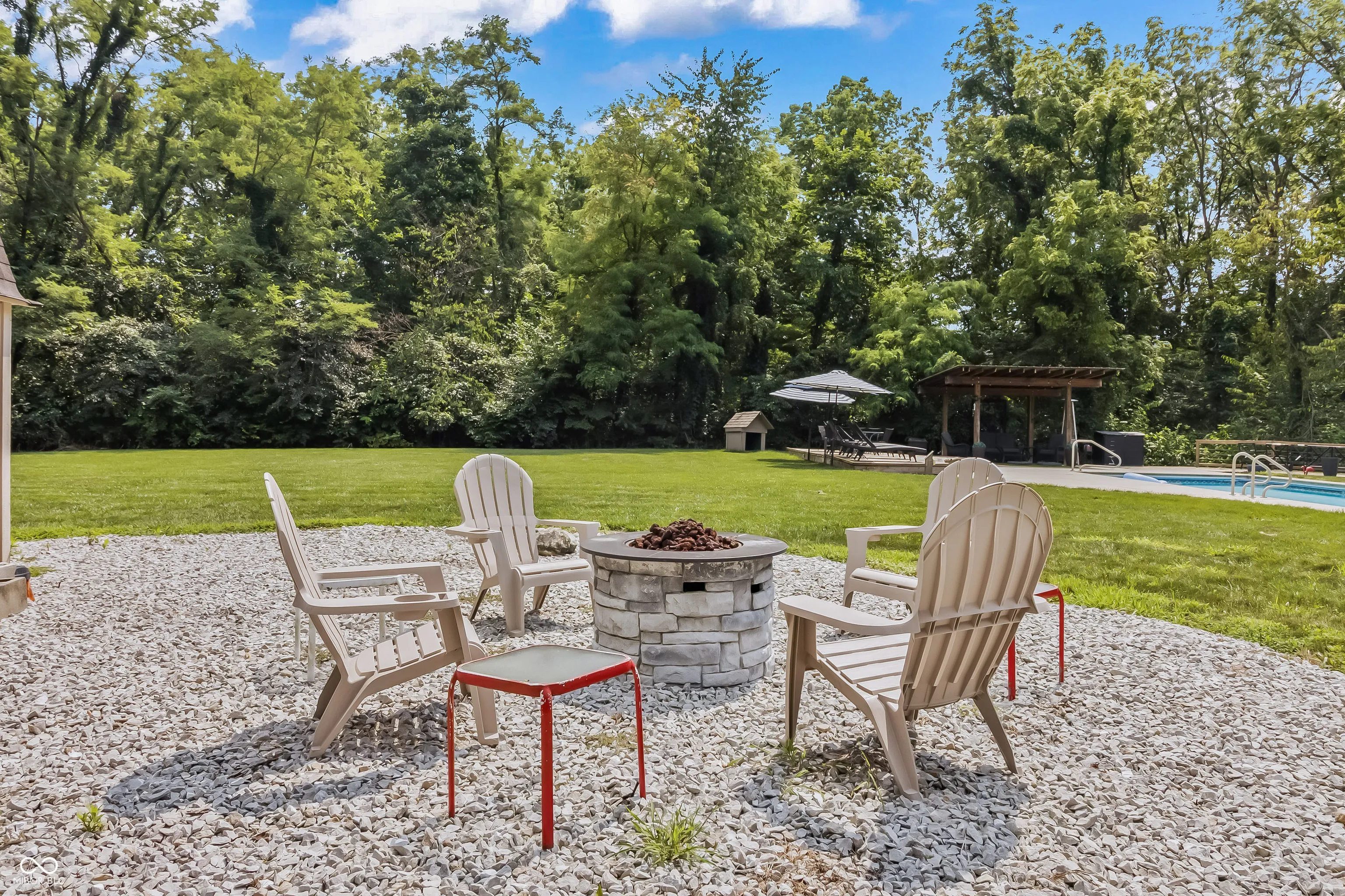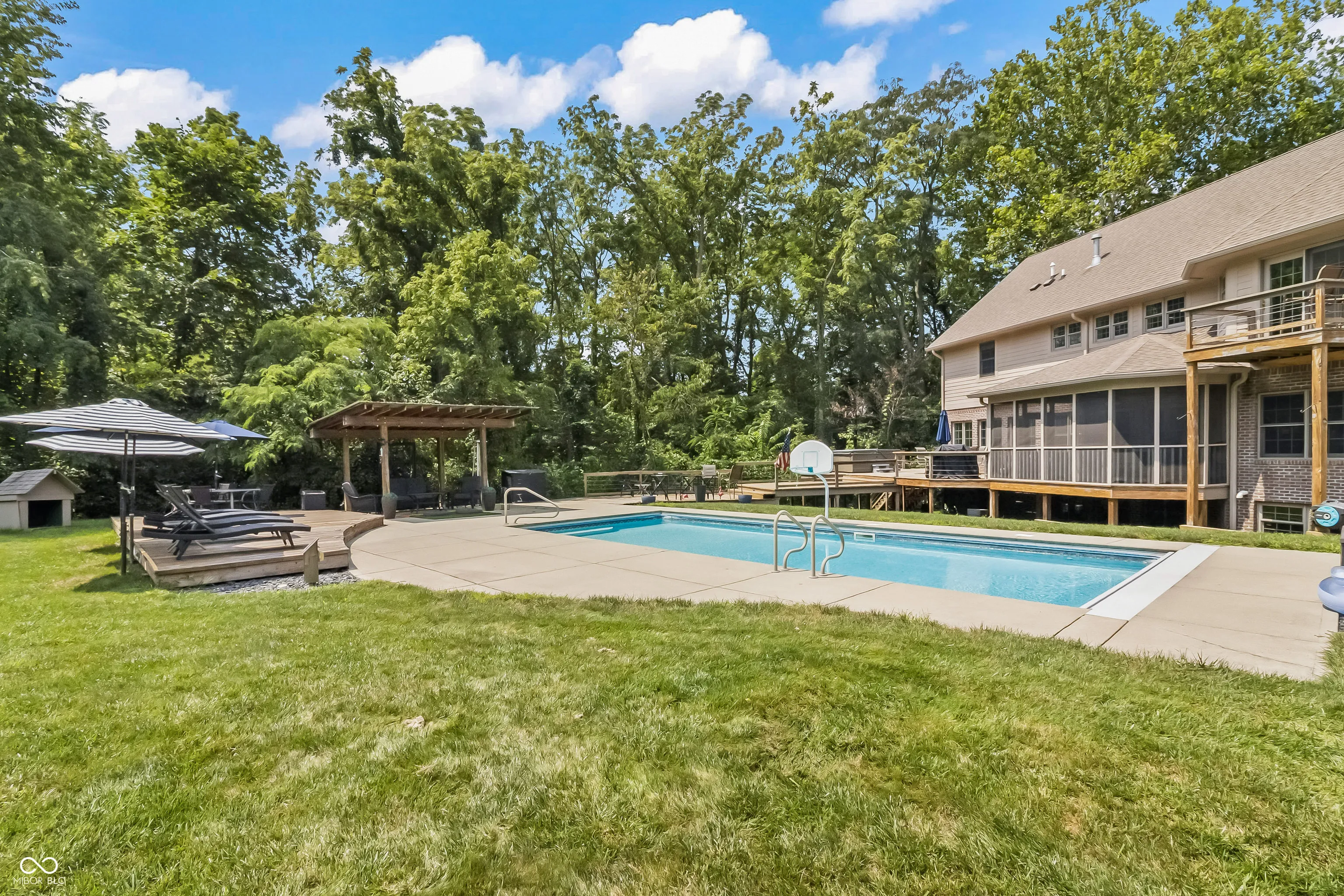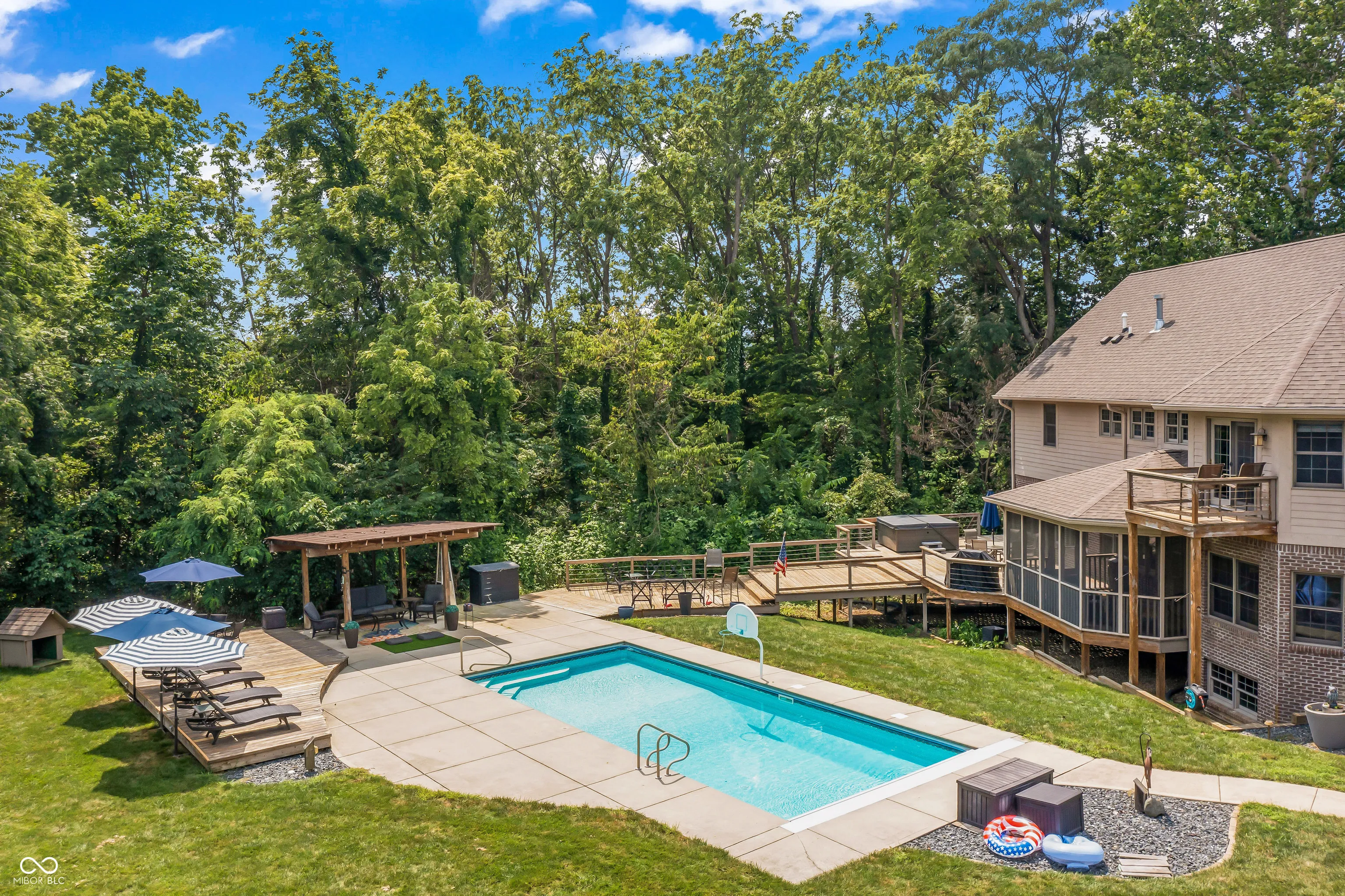 Welcome to the newest listing to hit Hancock County & without question, one of the most desirable! SUGAR CREEK VALLEY is one of the areas most sought-after neighborhoods, filled w/gorgeous custom-built homes & beautiful streetscapes. What makes Blue Spruce unique? Here’s just one – it’s nestled on a 3-ACRE PARK LIKE SETTING, where privacy, space, elegance & convenience are packed into one amazing residence. Follow the winding, wooded driveway from the cul-de-sac to the 1-owner estate. A stately brick exterior w/expansive front porch welcomes visitors & is one of several areas to enjoy quiet mornings or lively evenings. In addition to the 3-car side-load garage, a 30×30′ DETACHED OUTBUILDING provides exceptional flexibility for car enthusiasts, hobbies, storage, sports training, or workspace. The outdoor living experience is impossible to beat. Designed for both entertaining & everyday enjoyment, the backyard features an in-ground SALTWATER POOL, hot tub, fire pit, pergola & multiple gathering areas across an expansive deck, creating a resort-style setting right at home. Inside, 6,300 square feet of custom living offers functionality, luxury & warmth. A two-story entry opens to spacious living areas, including a well-appointed kitchen w/wet bar, formal dining rm, private office & a light-filled family room w/walls of windows overlooking the wooded grounds & a cozy screened-in porch provides a peaceful setting to enjoy the natural surroundings. Upstairs includes a spacious primary suite w/ private balcony, luxurious spa bathroom & the largest walk-in closet on the market today!. Three secondary bedrooms, a hallway bathroom & a convenient laundry rm round out the impressive 2nd story. The FINISHED WALKOUT BASEMENT expands the home’s versatility w/a family rm & fireplace, full kitchen/bar, rec area, fitness space, 2nd laundry rm, full bath & additional entertaining areas that open to the backyard. Open Fri 4-6PM & Sat 2-4PM!