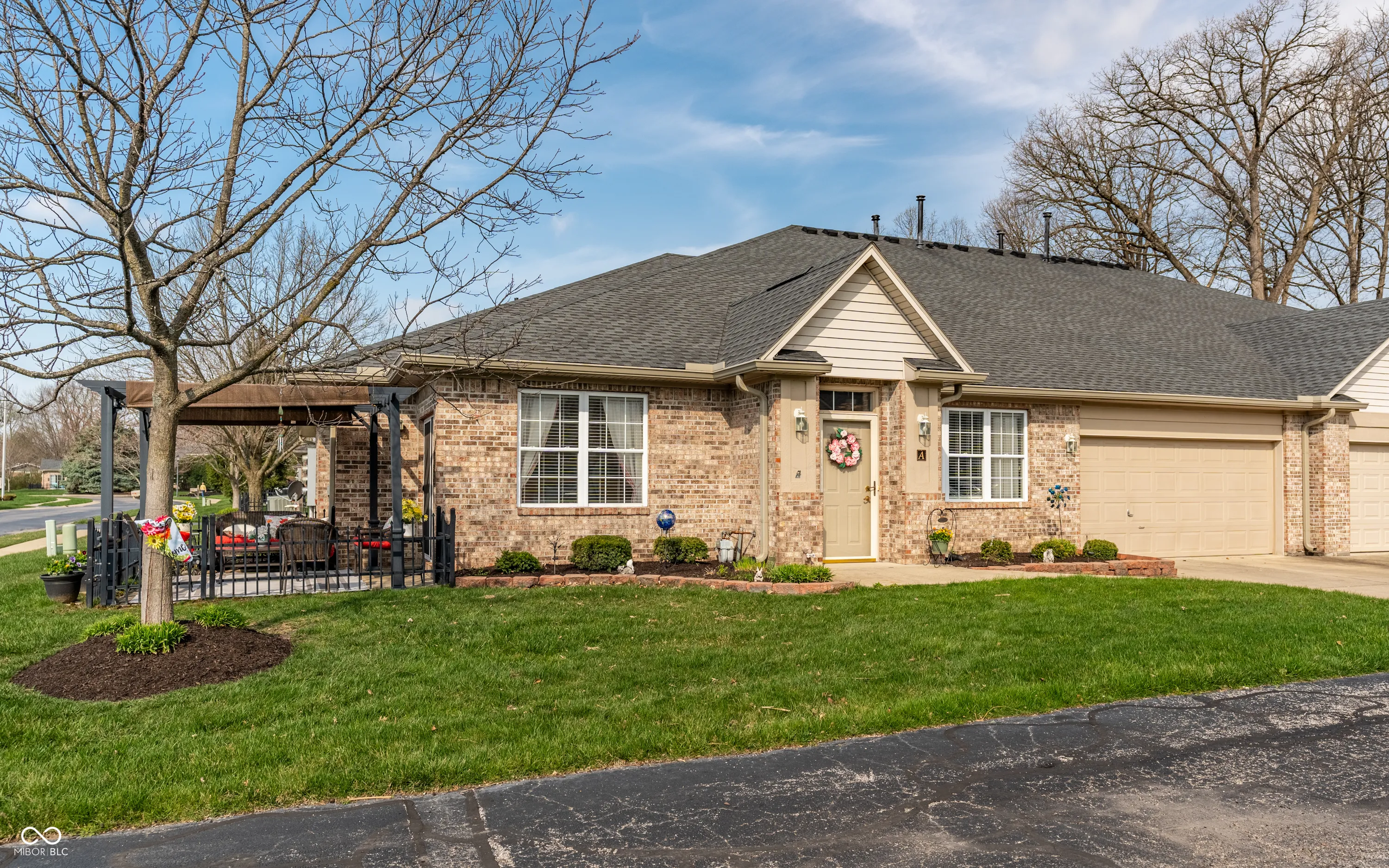 Located in the popular Park Square neighborhood in Avon, this beautiful 2 bedroom, 2 bath condo is packed with features and upgrades to the mechanicals, paint and flooring! Brick exterior, 2 car garage, well-manicured corner lot with a fenced patio and a pergola – perfect for enjoying the sun! Step inside and find an open floor plan with vaulted ceilings and a sunroom that could also be used as an office. The kitchen has loads of storage and an island for added counter space or eating in. The primary bedroom has an ensuite bathroom with double sinks and a walk-in closet. The spacious laundry room is conveniently located off of the garage and a utility sink could easily be added. The HOA covers all exterior upkeep, water and weekly trash pick-up making this a true low maintenance community. Located close to top-rated schools, shopping and dining.