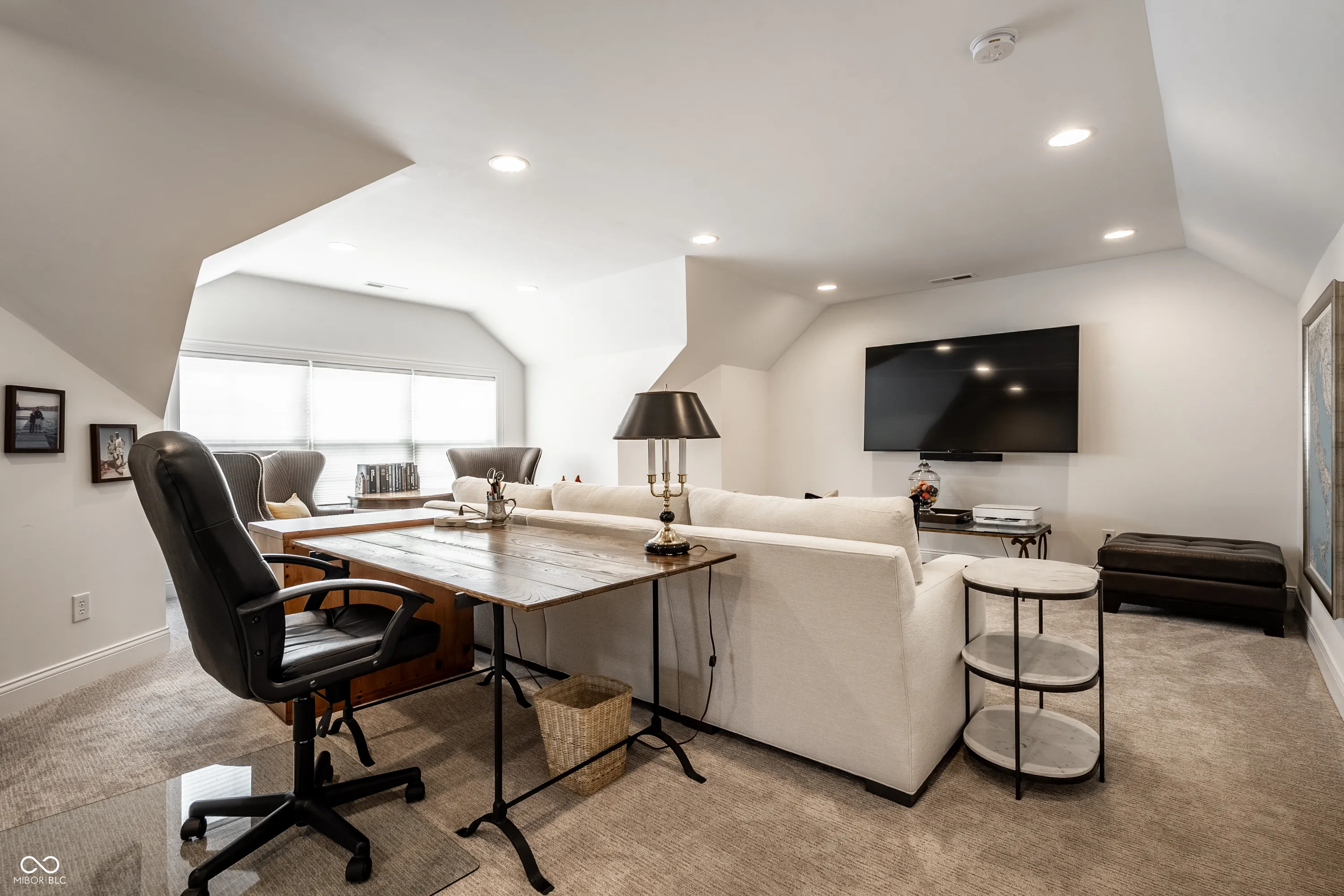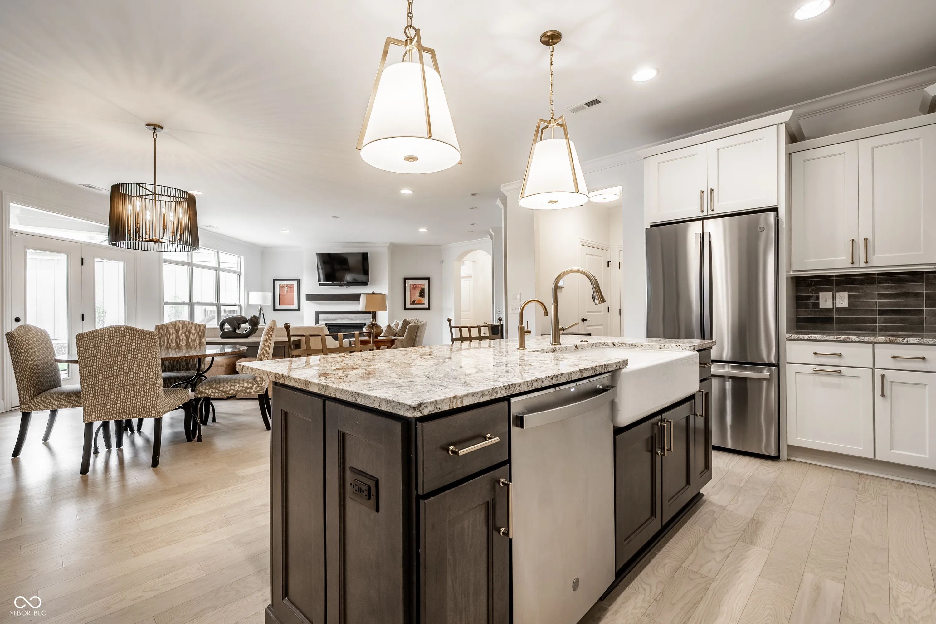 Welcome to 13944 Matt Street, a beautifully crafted home in the highly sought-after Courtyards of Carmel-Carmel’s premier 55+ active lifestyle communities. Built by Epcon Communities, this residence offers low-maintenance living with refined finishes in an exceptional location. This one is loaded with all of the premium upgrades. The attractive exterior features cement board siding, stone accents, and a welcoming covered front porch. Inside, the large main-level living spaces showcase engineered hardwood floors throughout, high ceilings, and an open, light-filled layout. The heart of the home is a seamless living space combining the great room, dining area, and kitchen. A gas fireplace with stone surround anchors the living room, while the kitchen features quality cabinetry, a large island with large farmhouse sink, tile backsplash, premium appliances, and a walk-in pantry. A private office/den with sliding doors sits just off the main living area. The main-level primary suite offers a tray ceiling, spacious layout, and spa-like bath with dual vanities, a large marble-tiled walk-in shower, and walk-in closet. A screened-in porch off the bedroom provides a peaceful retreat. A second main-level bedroom with full bath is ideal for guests. Upstairs, a versatile loft, third bedroom, and full bath create the perfect private guest suite or flex space. Additional highlights include a well-appointed laundry room with custom California Closets cabinetry and utility sink. The fenced outdoor space offers privacy along with room for grilling and entertaining. Residents enjoy a clubhouse, pool, pickleball courts, and an active social calendar-all just minutes from the best of Carmel. This one has all of the quality upgrades and is the definition of a “lock & leave” turnkey home for your active lifestyle and travel schedule.