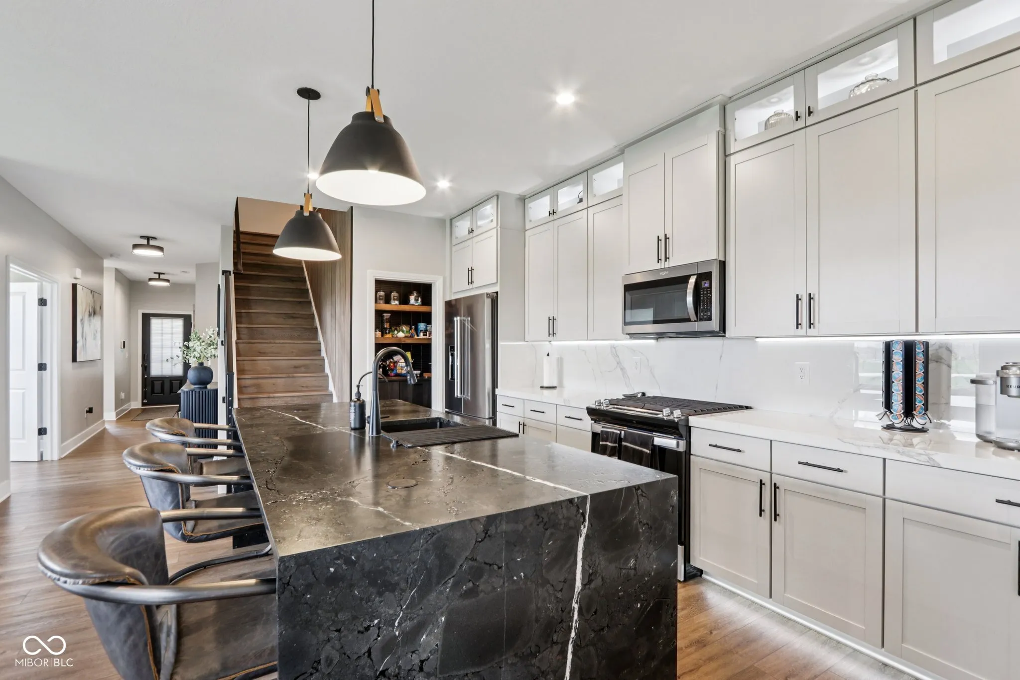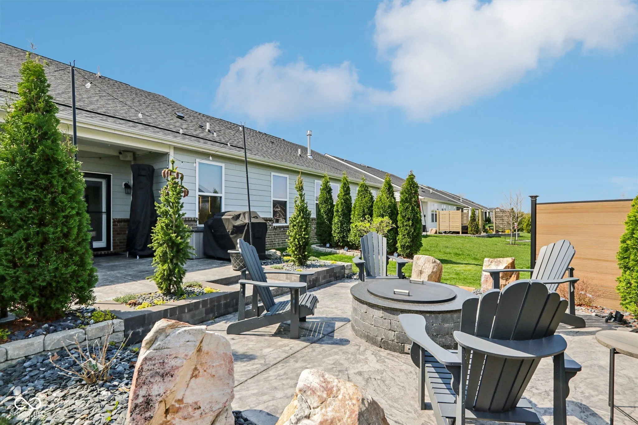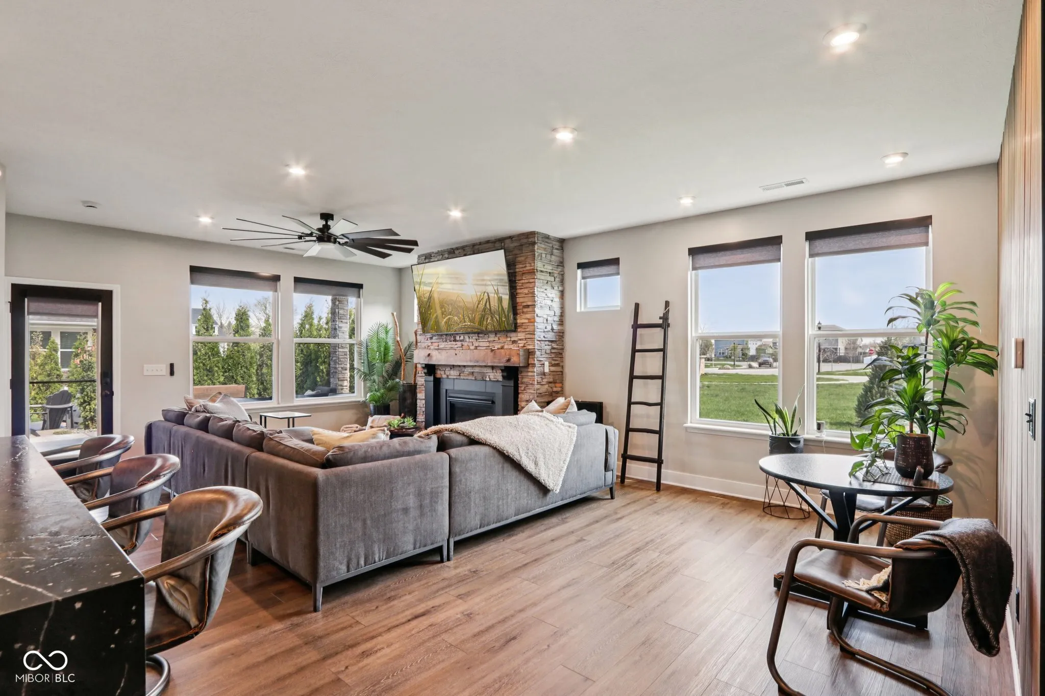 Looking for a home in a low-maintenance neighborhood with Home-a-Rama level luxury interior finishes? Look no further! You cannot miss this fully upgraded spacious 3 bed/ 3.5 bath w/ office masterpiece of detail (all bedrooms have their own full bath). Features include all-new LVP throughout the home, new Infinity Black quartzite counters with waterfall edges in the kitchen (also includes built-in inductive charging for devices), SS appliances, upgraded cabinets, stone backsplash, custom cabinets/backsplash in pantry, closets, and laundry room, beautiful wood acoustic wall paneling accents, and custom steel stair railings. The spacious primary suite features a fully redone custom bath with full slab quartzite backsplash, custom mirrors, and a custom closet system that looks amazing. Additional features: high-end light-up Cristallo quartzite vanity in half bath w/vessel sink, Stone fireplace w/ barn beam mantel, upgraded taller baseboards, custom automatic solar shades, upgraded lighting everywhere, upgraded fixtures, new ceiling fans (Are we noticing a pattern yet?). Moving outside, there is a custom 2-tier stamped and stained partially covered/partially open concrete patio with a built-in gas fire pit, professionally landscaped, irrigation systems, outdoor sound system, and other custom features you would be hard pressed to find anywhere in this price point. The location is also very convenient to many amenities and conveniences. All of this is just part of what this home has to offer, and impossible to list it all. This is truly a must-see home!