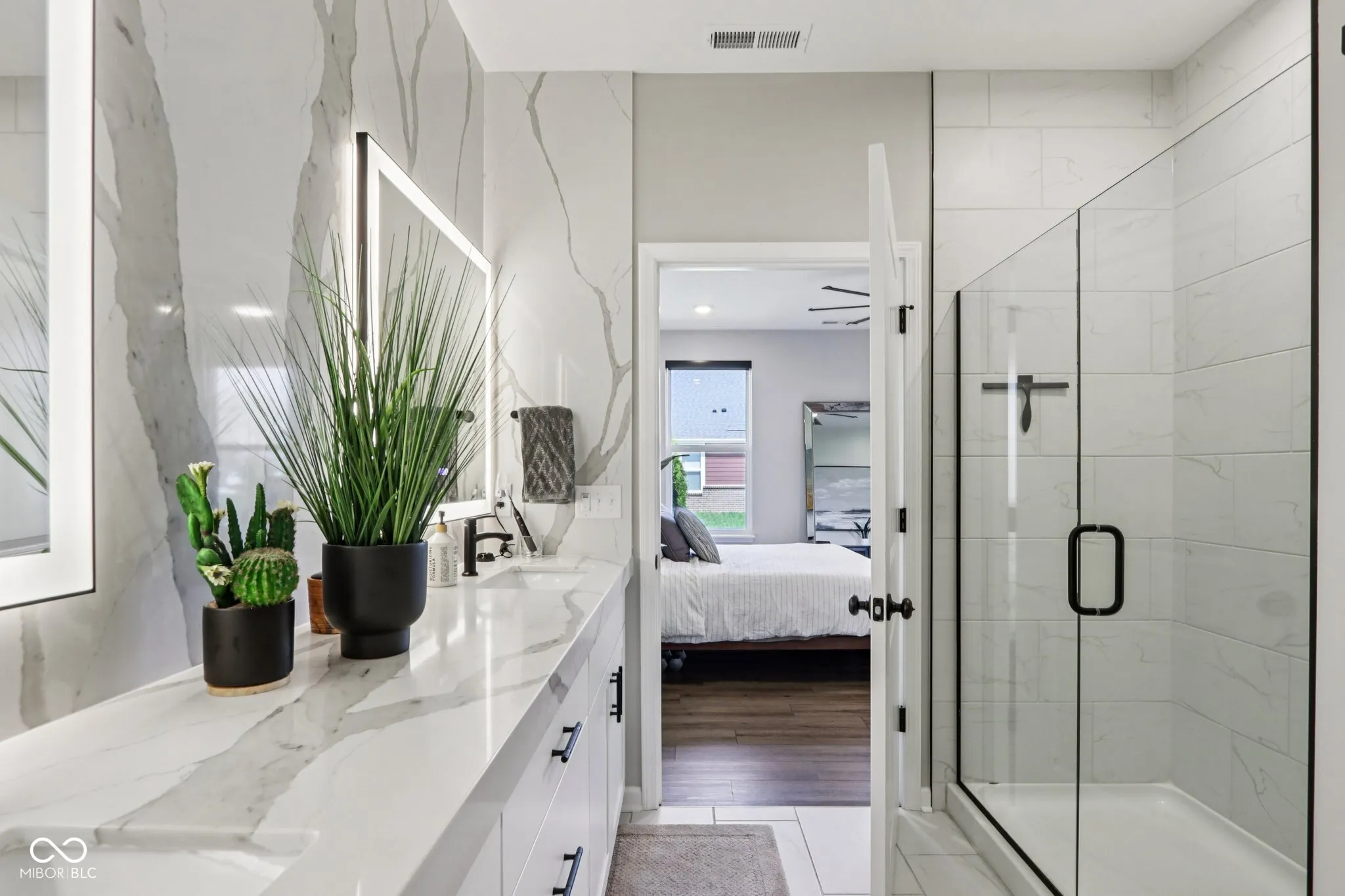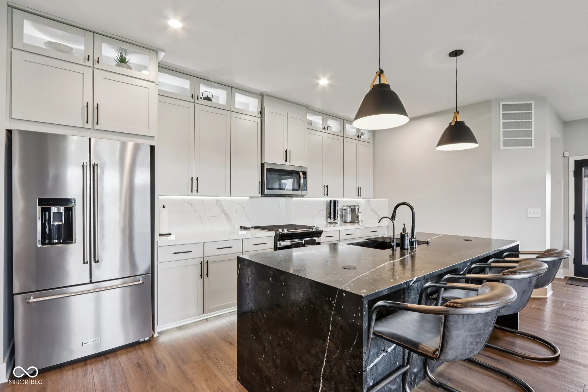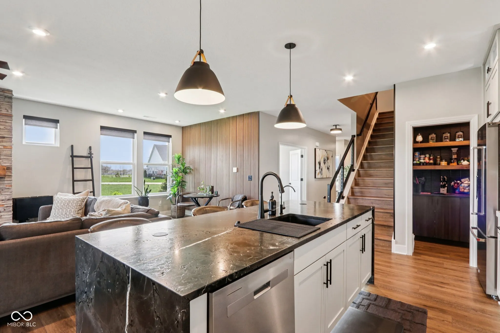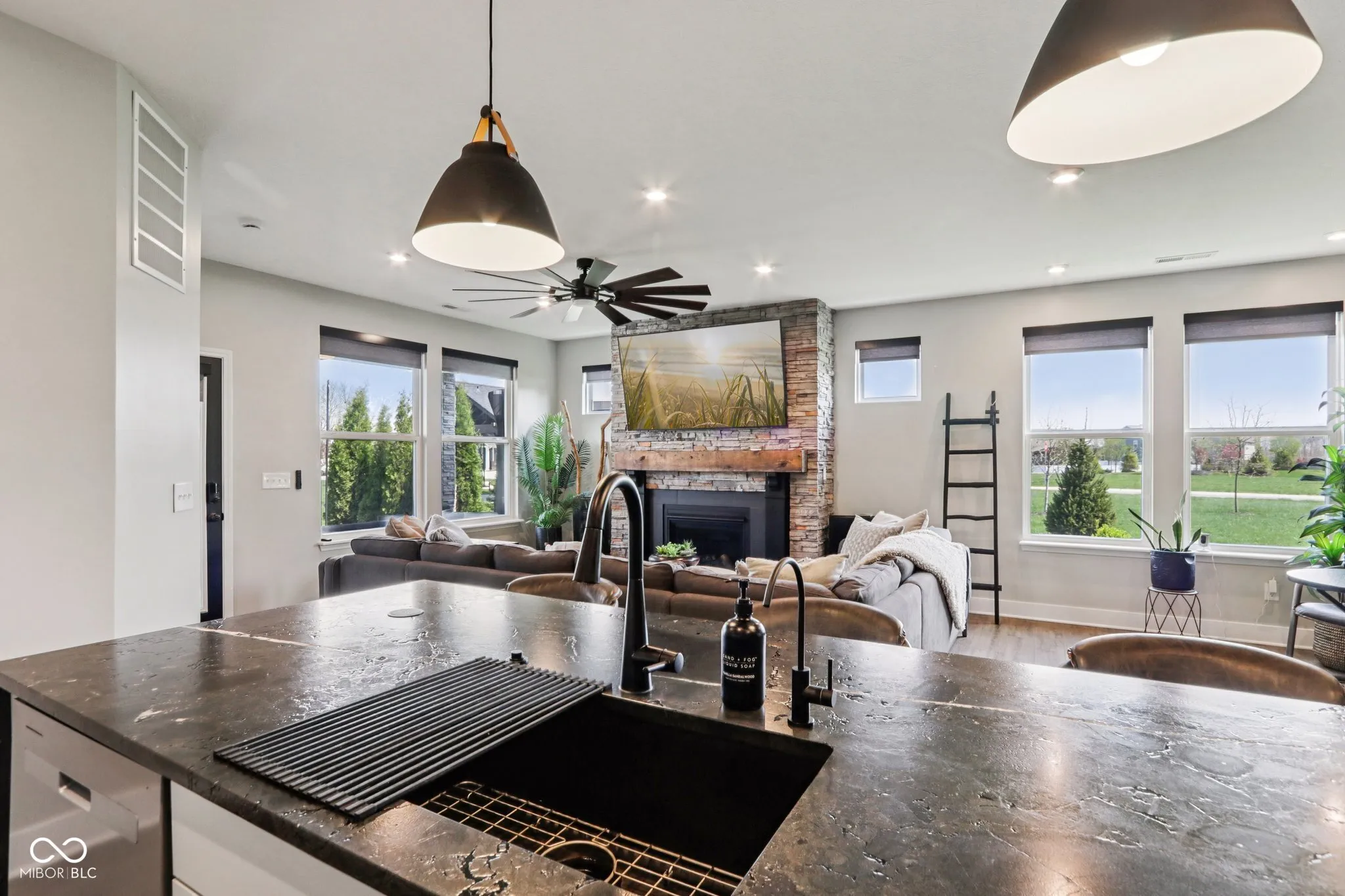 Looking for a home in a low-maintenance neighborhood with Home-a-Rama level luxury interior finishes? Look no further! You cannot miss this fully upgraded spacious 3 bed/ 3.5 bath w/ office masterpiece of detail (all bedrooms have their own full bath). Features include all-new LVP throughout the home, new Infinity Black quartzite counters with waterfall edges in the kitchen (also includes built-in inductive charging for devices), SS appliances, upgraded cabinets, stone backsplash, custom cabinets/backsplash in pantry, closets, and laundry room, beautiful wood acoustic wall paneling accents, and custom steel stair railings. The spacious primary suite features a fully redone custom bath with full slab quartzite backsplash, custom mirrors, and a custom closet system that looks amazing. Additional features: high-end light-up Cristallo quartzite vanity in half bath w/vessel sink, Stone fireplace w/ barn beam mantel, upgraded taller baseboards, custom automatic solar shades, upgraded lighting everywhere, upgraded fixtures, new ceiling fans (Are we noticing a pattern yet?). Moving outside, there is a custom 2-tier stamped and stained partially covered/partially open concrete patio with a built-in gas fire pit, professionally landscaped, irrigation systems, outdoor sound system, and other custom features you would be hard pressed to find anywhere in this price point. The location is also very convenient to many amenities and conveniences. All of this is just part of what this home has to offer, and impossible to list it all. This is truly a must-see home!