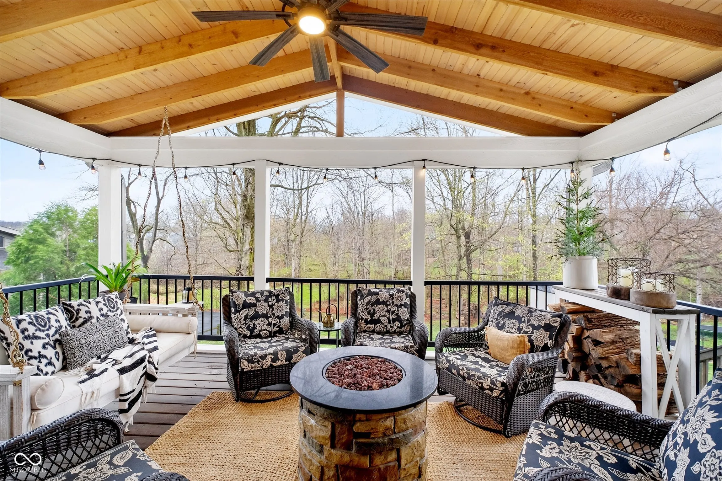 Tucked into the popular North Harbour neighborhood, this home sits on a beautiful .6-acre wooded lot with seasonal sunset views of Morse and a peaceful, tucked-away feel. Enjoy the charm and setting of this sought-after lake community. The outdoor space is a standout-featuring a newer 20×12 screened porch with a vaulted cedar ceiling, a covered porch, fire pit, and a large, park-like backyard surrounded by mature trees. It’s the kind of space you’ll actually use and enjoy. Inside, the home is full of character and custom touches-wood beams, cedar ceilings, hardwood floors, a cozy window seat, and thoughtful details throughout. The open layout flows easily from the updated kitchen and eat-in area to the dining room (perfect for gatherings) and into the great room with a gorgeous wood mantle and wood-burning fireplace. The great room opens directly to the screened porch, making indoor/outdoor living feel natural. Upstairs offers four bedrooms and two full baths, including a spacious primary suite with new hardwood floors and his-and-hers closets. The walk-out basement adds even more living space with a second fireplace, 5th bedroom/office with full bath, and plumbing already in place for a future wet bar. Step outside to an additional covered patio area. The exterior has been freshly painted with new professional landscaping, and the home has been very well maintained throughout. North Harbour, a golf cart neighborhood, offers a community park, playground, and active HOA, plus access to Harbour Trees Golf & Beach Club (membership required) and is located within award-winning Noblesville Schools. Great space, great lot, and a great feel-this one is easy to love.