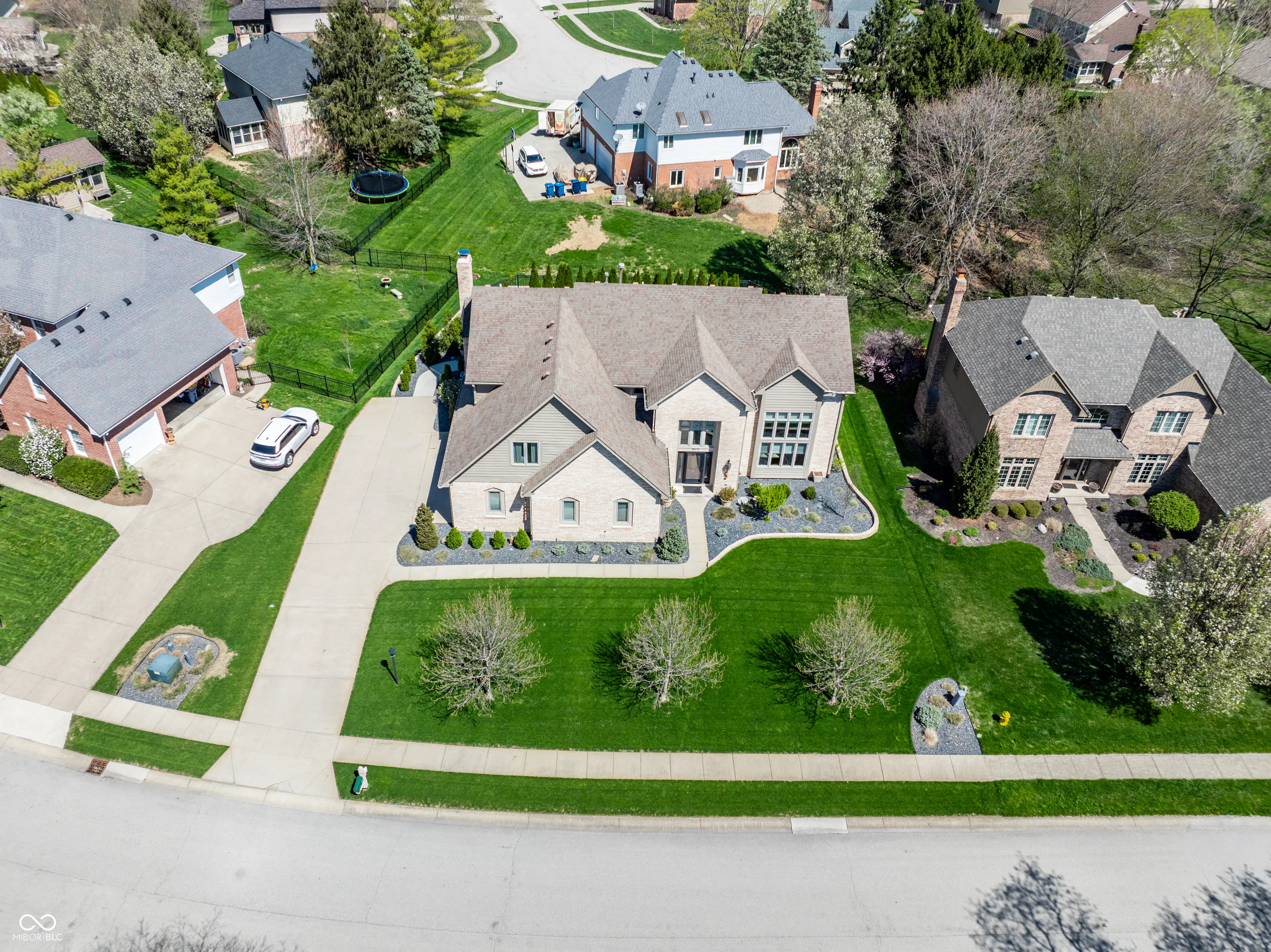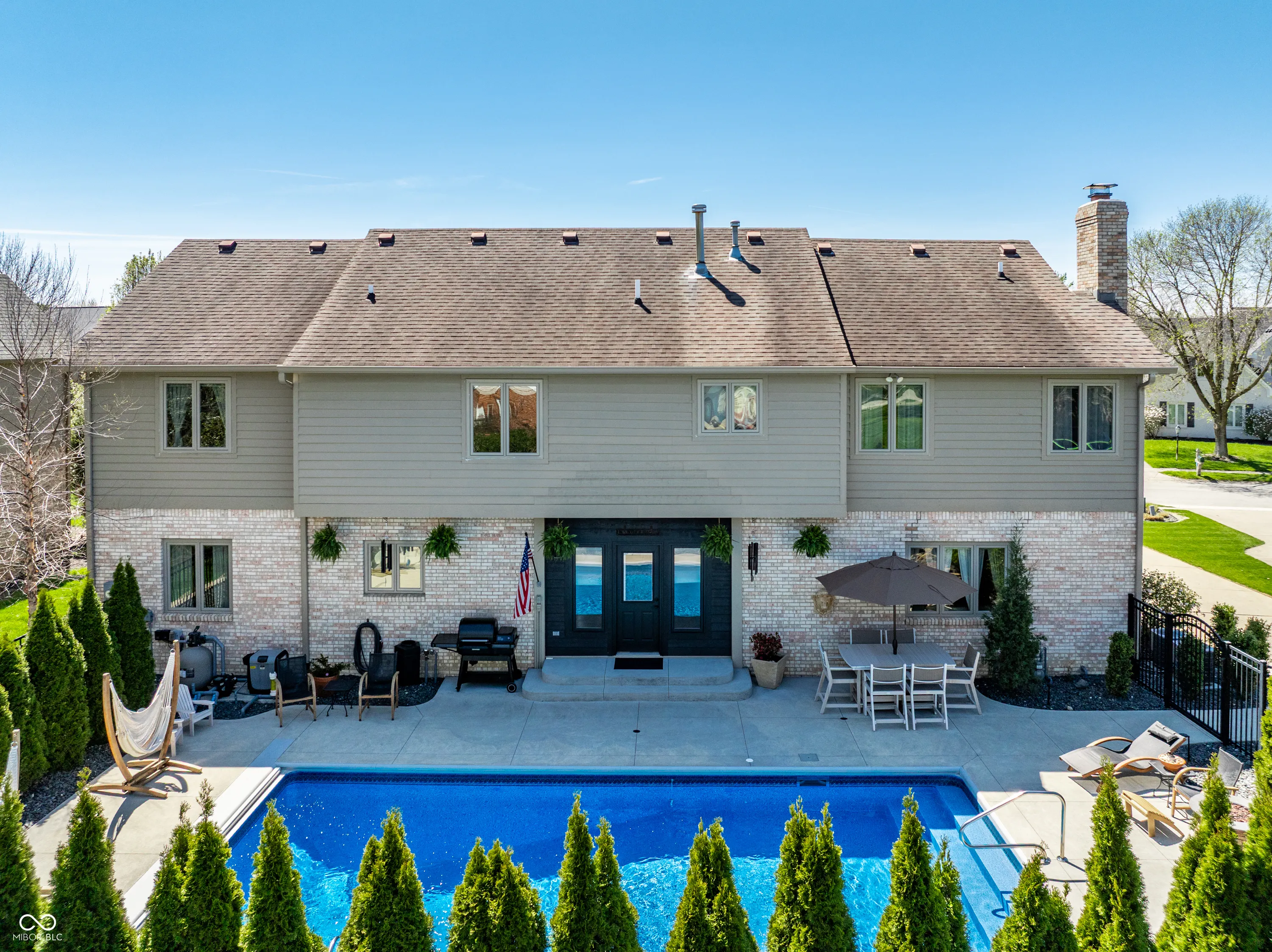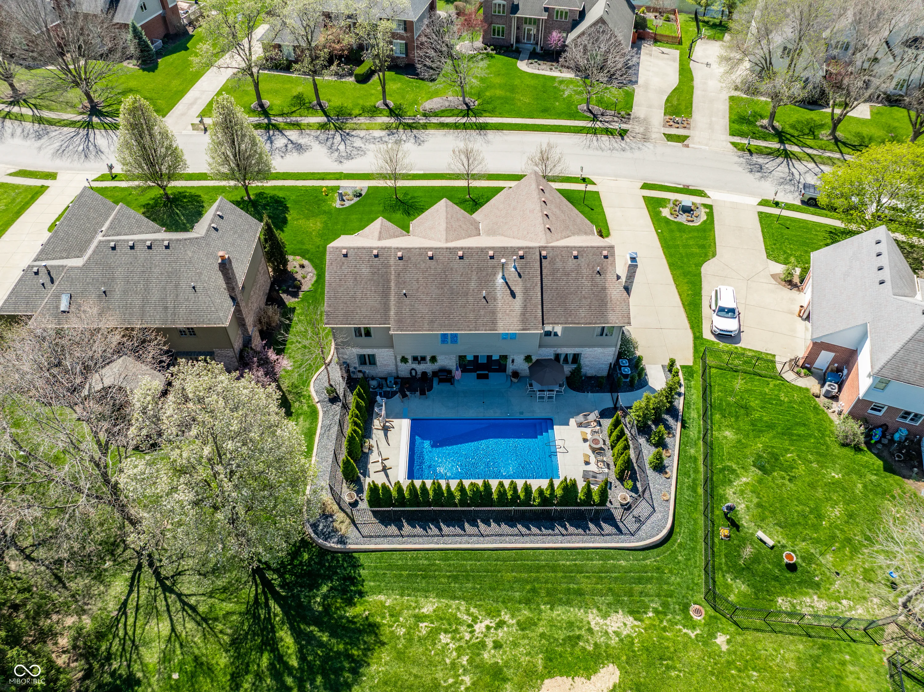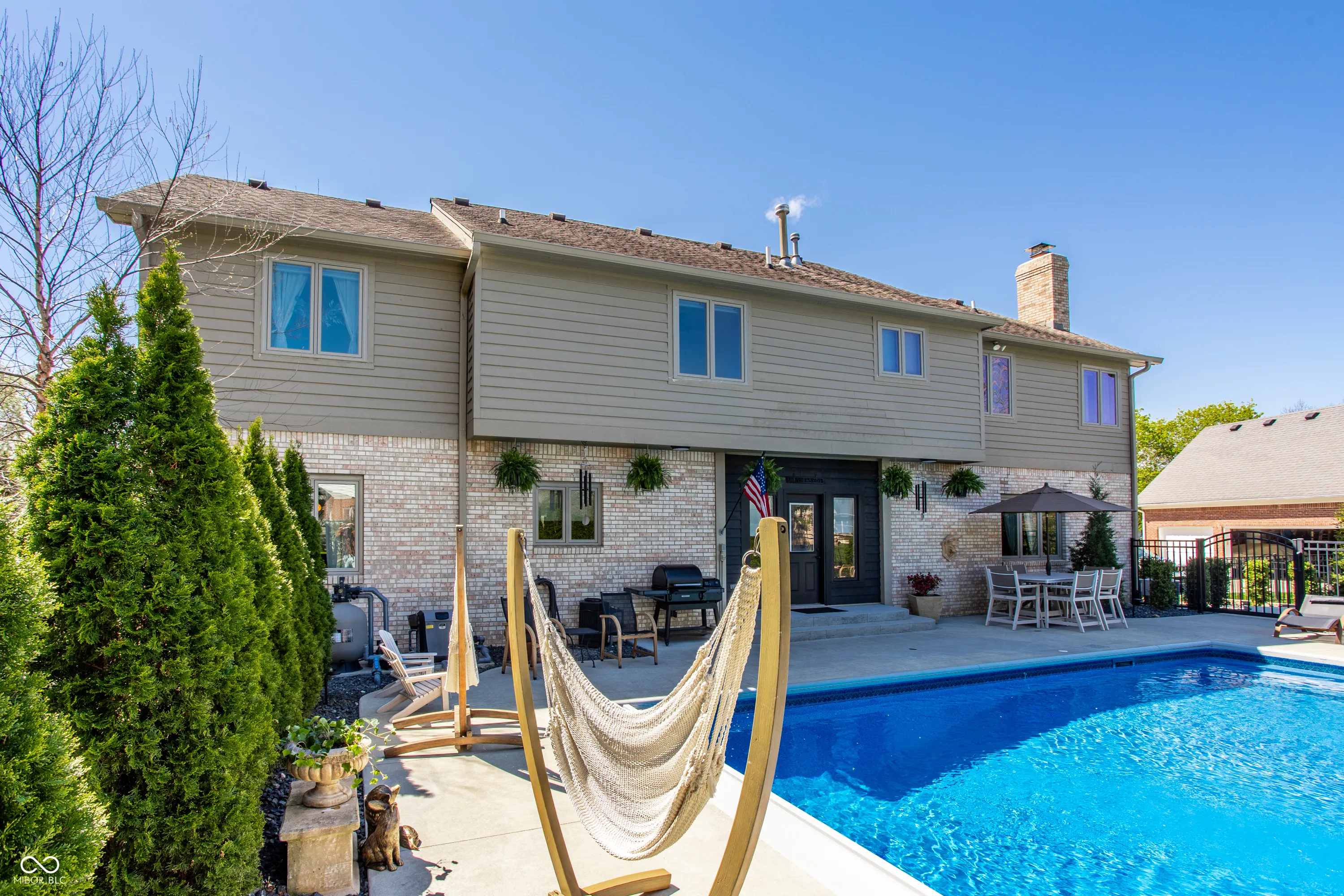 Beautifully maintained custom brick home offering over 4,000 square feet in the highly desirable Springmill Ponds community. Thoughtfully designed for both everyday living & entertaining, this home combines warmth, elegance & functionality throughout. Step outside to your own private backyard oasis, featuring a sparkling pool, lush landscaping & clean-lined hardscaping with ambient lighting-perfect for relaxing or hosting unforgettable gatherings. Inside, the home welcomes you w/crisp white walls, refinished hardwood floors & soaring ceilings that create a bright, cohesive feel. A stylish mudroom w/new tile flooring & floating shelves offers a practical & organized drop zone. The versatile main-level bedroom, complete w/custom built-in bookcases, is ideal for a home office or guest space. The living room is light filled & inviting, highlighted by elevated ceilings & expansive windows. The formal dining room makes a statement with custom ceiling detailing & designer light fixture. The kitchen seamlessly connects to surrounding spaces & features stainless steel appliances, granite countertops & scenic views of the outdoor living area. Off the kitchen, the family room showcases rich wood wall paneling, creamy white pine flooring & cozy wood-burning fireplace framed by built-ins-creating the perfect gathering space. Upstairs, you’ll find three generously sized bedrooms w/ample closet space & a beautifully renovated hall bathroom featuring a large vanity & elegant tilework. The primary suite is a true retreat, w/calming earthy tones, painted pine flooring, vaulted wood-paneled ceilings & floor-to-ceiling subway tile accents. The en-suite bath offers dual vanities, a soaking tub, a walk-in shower & spacious walk-in closet. Additional highlights include a finished basement w/flexible recreational space, epoxy-coated garage flooring & abundant storage throughout. Community offers pool, courts + playground. Visit nearby Monon Trail & Midtown Carmel for endless entertainment!