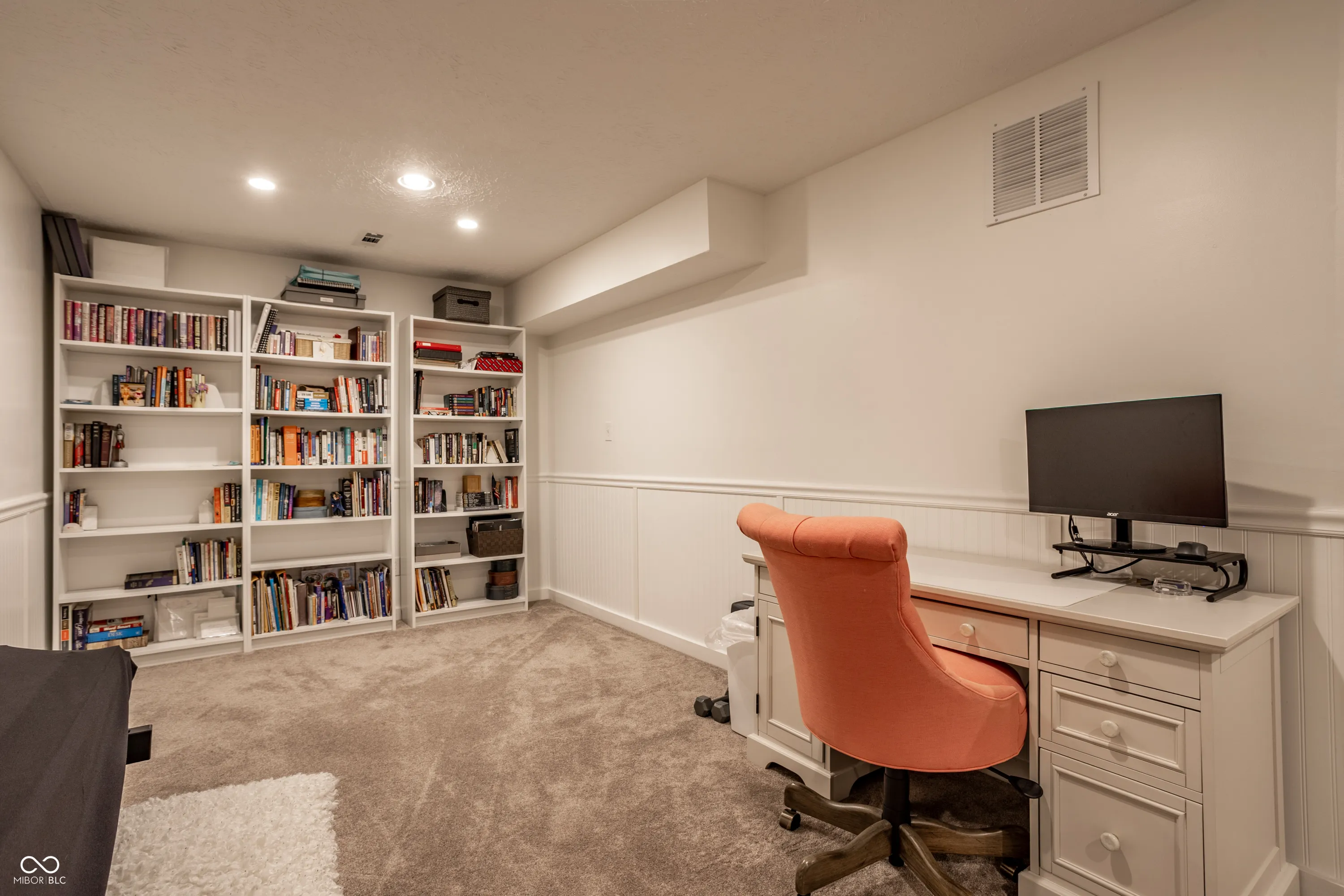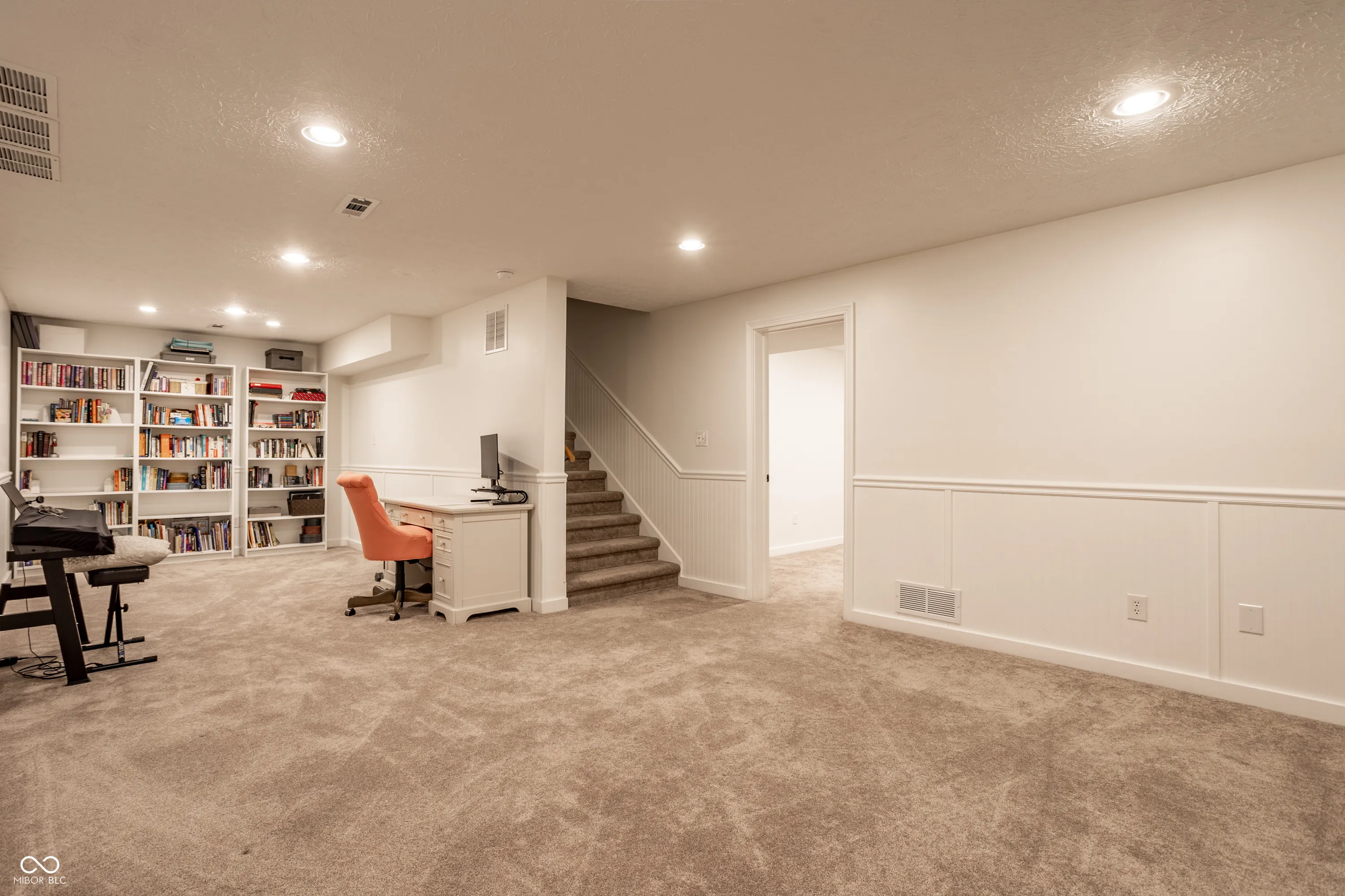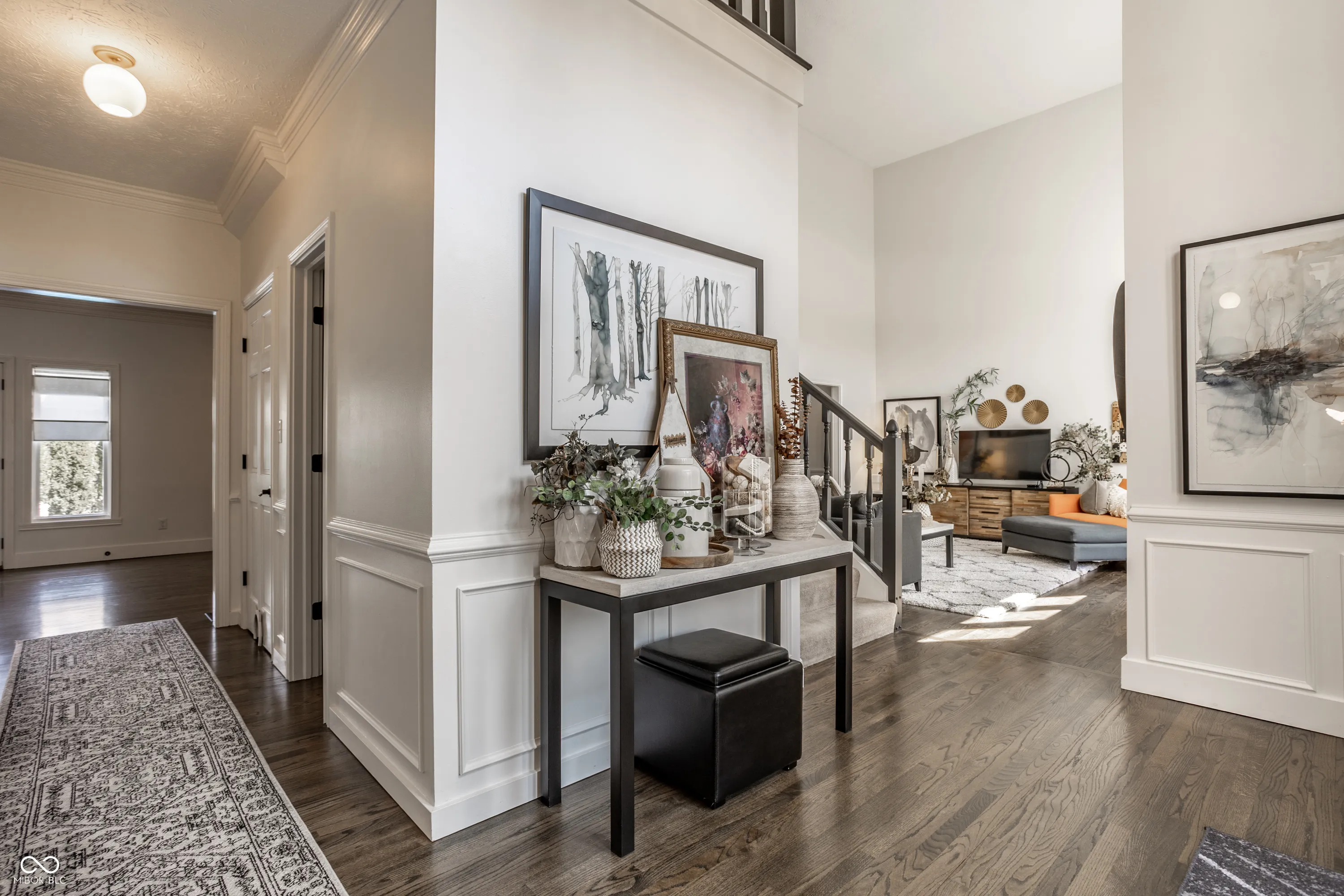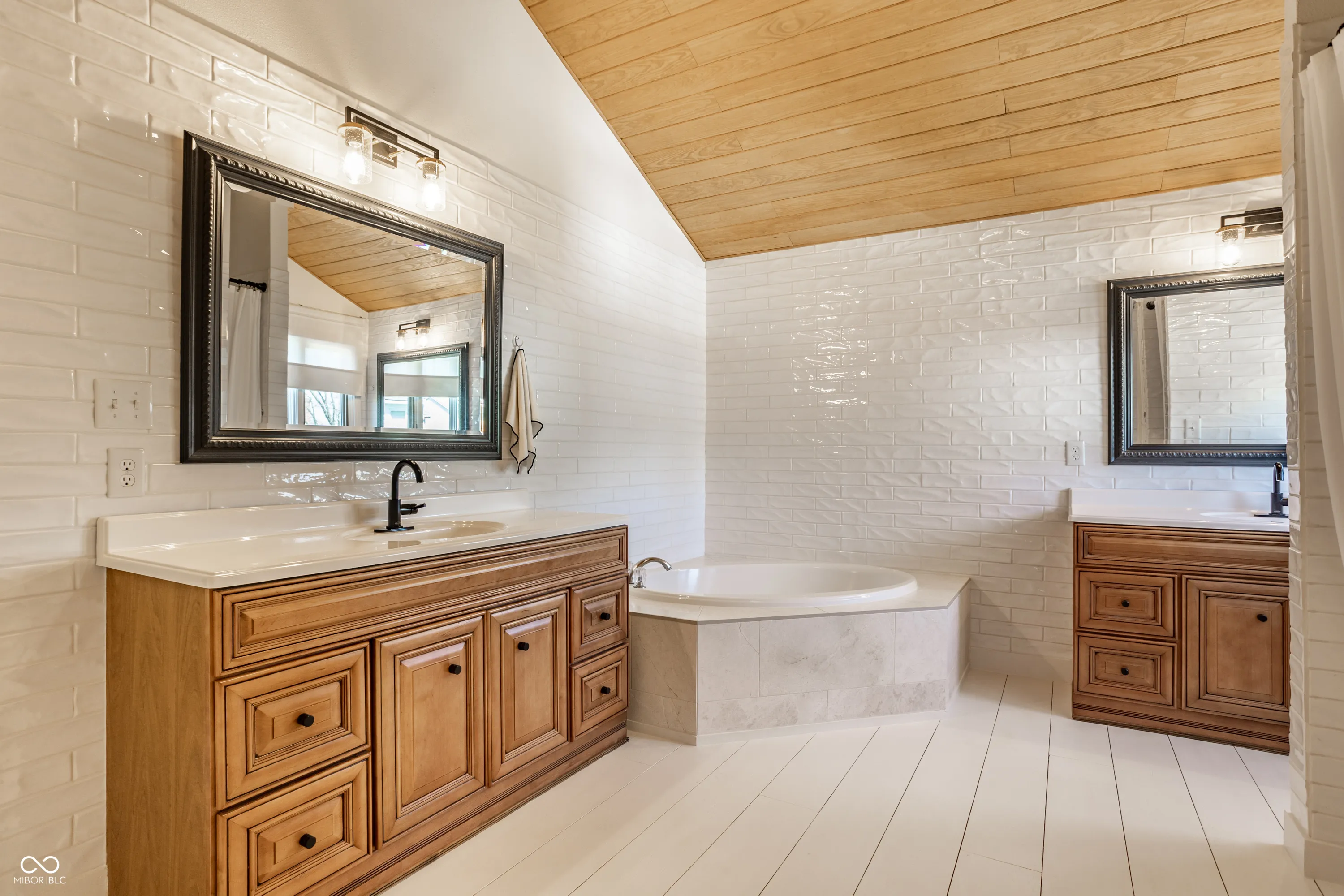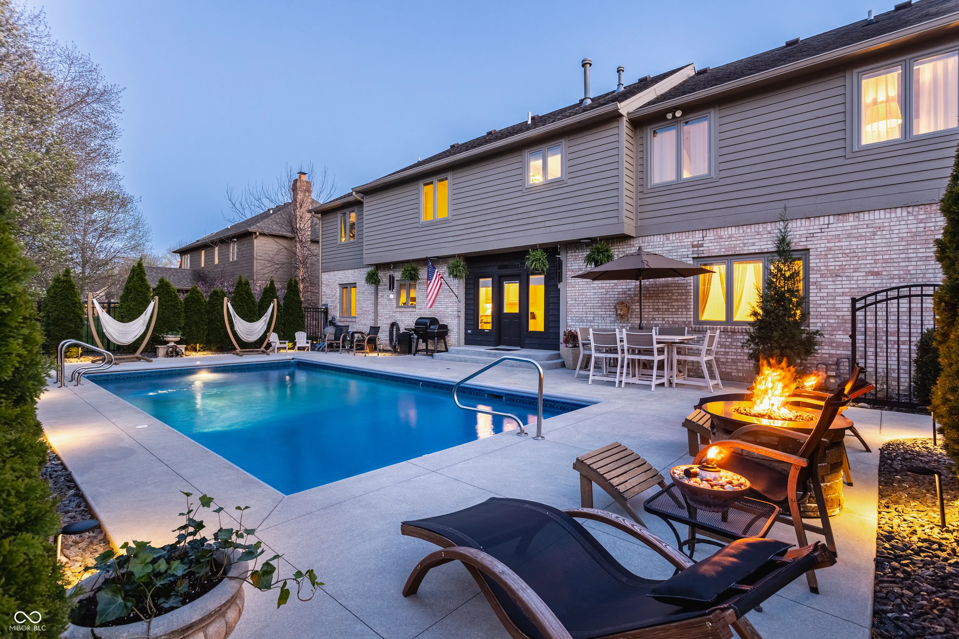 Beautifully maintained custom brick home offering over 4,000 square feet in the highly desirable Springmill Ponds community. Thoughtfully designed for both everyday living & entertaining, this home combines warmth, elegance & functionality throughout. Step outside to your own private backyard oasis, featuring a sparkling pool, lush landscaping & clean-lined hardscaping with ambient lighting-perfect for relaxing or hosting unforgettable gatherings. Inside, the home welcomes you w/crisp white walls, refinished hardwood floors & soaring ceilings that create a bright, cohesive feel. A stylish mudroom w/new tile flooring & floating shelves offers a practical & organized drop zone. The versatile main-level bedroom, complete w/custom built-in bookcases, is ideal for a home office or guest space. The living room is light filled & inviting, highlighted by elevated ceilings & expansive windows. The formal dining room makes a statement with custom ceiling detailing & designer light fixture. The kitchen seamlessly connects to surrounding spaces & features stainless steel appliances, granite countertops & scenic views of the outdoor living area. Off the kitchen, the family room showcases rich wood wall paneling, creamy white pine flooring & cozy wood-burning fireplace framed by built-ins-creating the perfect gathering space. Upstairs, you’ll find three generously sized bedrooms w/ample closet space & a beautifully renovated hall bathroom featuring a large vanity & elegant tilework. The primary suite is a true retreat, w/calming earthy tones, painted pine flooring, vaulted wood-paneled ceilings & floor-to-ceiling subway tile accents. The en-suite bath offers dual vanities, a soaking tub, a walk-in shower & spacious walk-in closet. Additional highlights include a finished basement w/flexible recreational space, epoxy-coated garage flooring & abundant storage throughout. Community offers pool, courts + playground. Visit nearby Monon Trail & Midtown Carmel for endless entertainment!