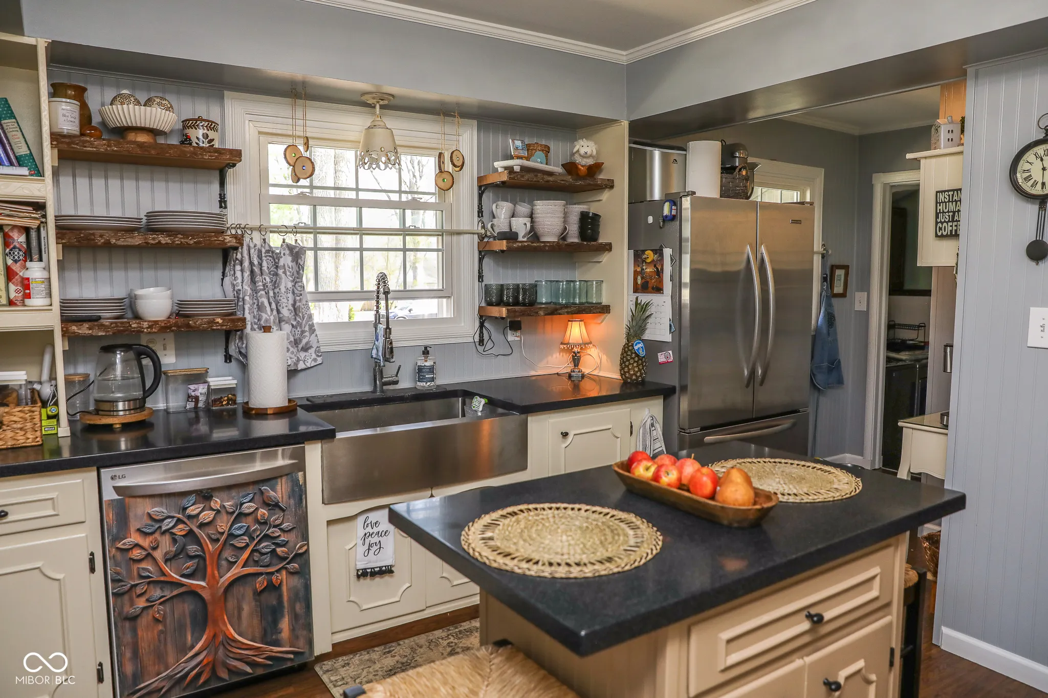 A distinctive single family residence, situated at 501 W 92nd ST, INDIANAPOLIS, IN, USA, presents itself in great condition, an attractive property inviting a closer look. The kitchen, a true centerpiece of the home, inspires culinary creativity with its thoughtful design, featuring a practical backsplash and elegant stone countertops. A large kitchen island provides ample space for preparing meals or gathering, complemented by a convenient kitchen bar. Equipped with a stovetop and a double oven, this space accommodates any cooking endeavor, all framed by refined crown molding. Within the comfortable living room, crown molding adds a touch of classic elegance, creating an inviting atmosphere for relaxation. This same refined detail extends into one of the three bedrooms, enhancing its appeal as a serene personal retreat. One of the two full bathrooms offers the convenience of a walk in shower, providing a refreshing and accessible daily experience. Beyond the interior, the expansive 25134 square foot lot provides generous outdoor living space, perfect for enjoying the open air. A dedicated patio and an outdoor dining area offer delightful settings for al fresco meals or quiet contemplation. Practical storage solutions are provided by a convenient shed, while a bright sunroom offers a tranquil spot to enjoy the surroundings indoors. Further enhancing daily comfort, a dedicated laundry room simplifies household tasks within this single story residence, which encompasses 1840 square feet of living area with three bedrooms and two full bathrooms. This inviting property offers a harmonious blend of comfortable interiors and expansive outdoor opportunities, ready to inspire its fortunate new occupants.