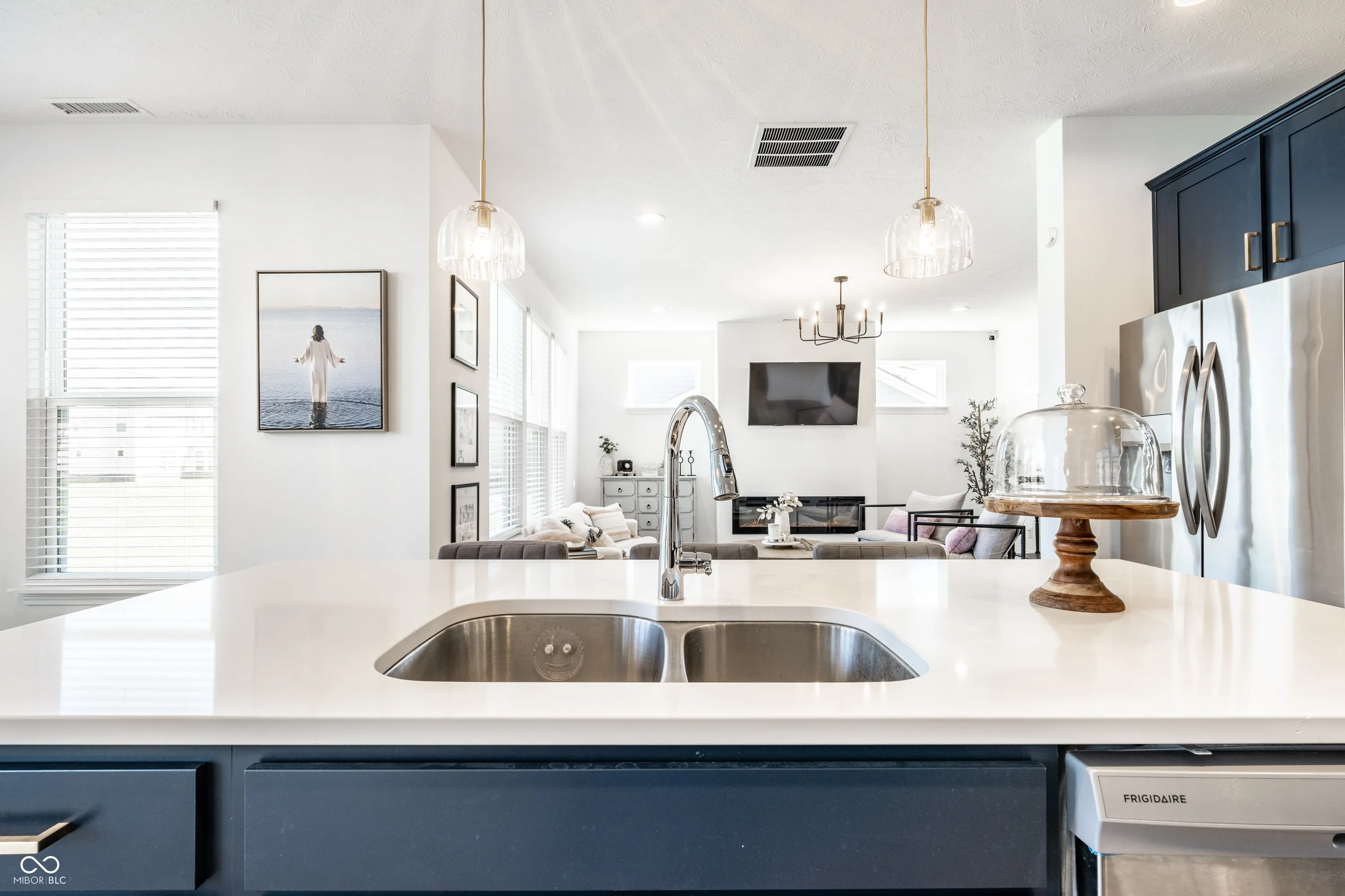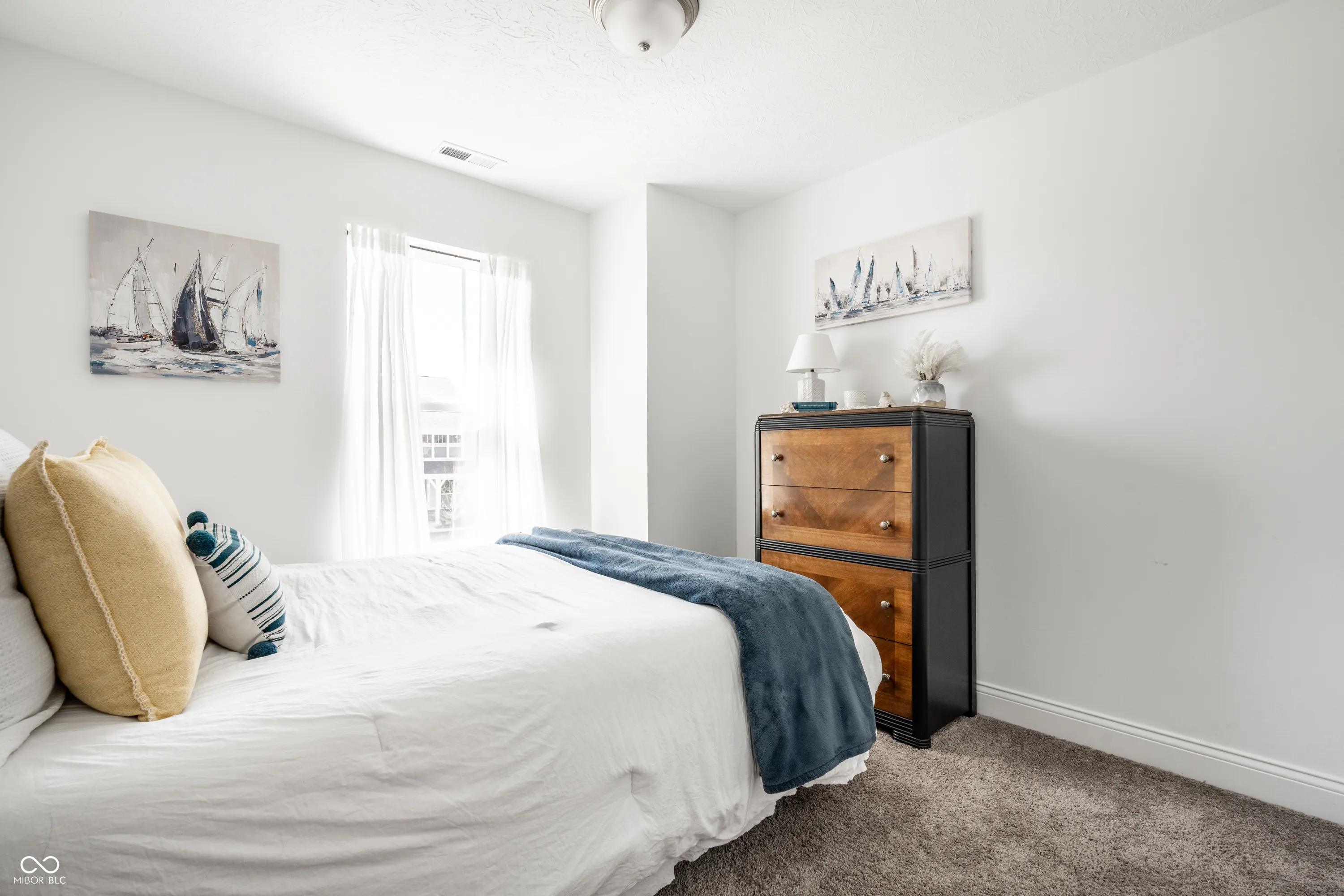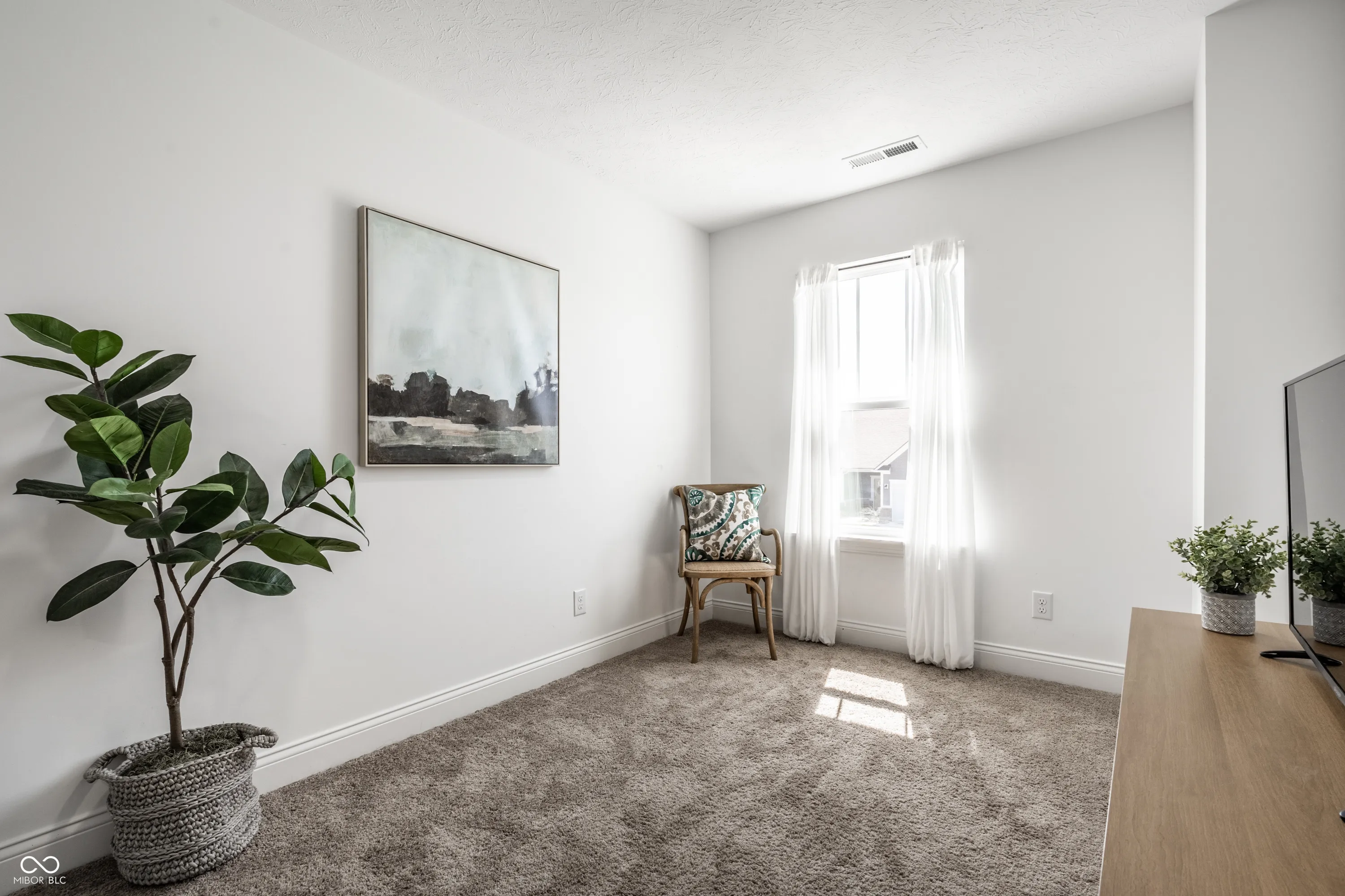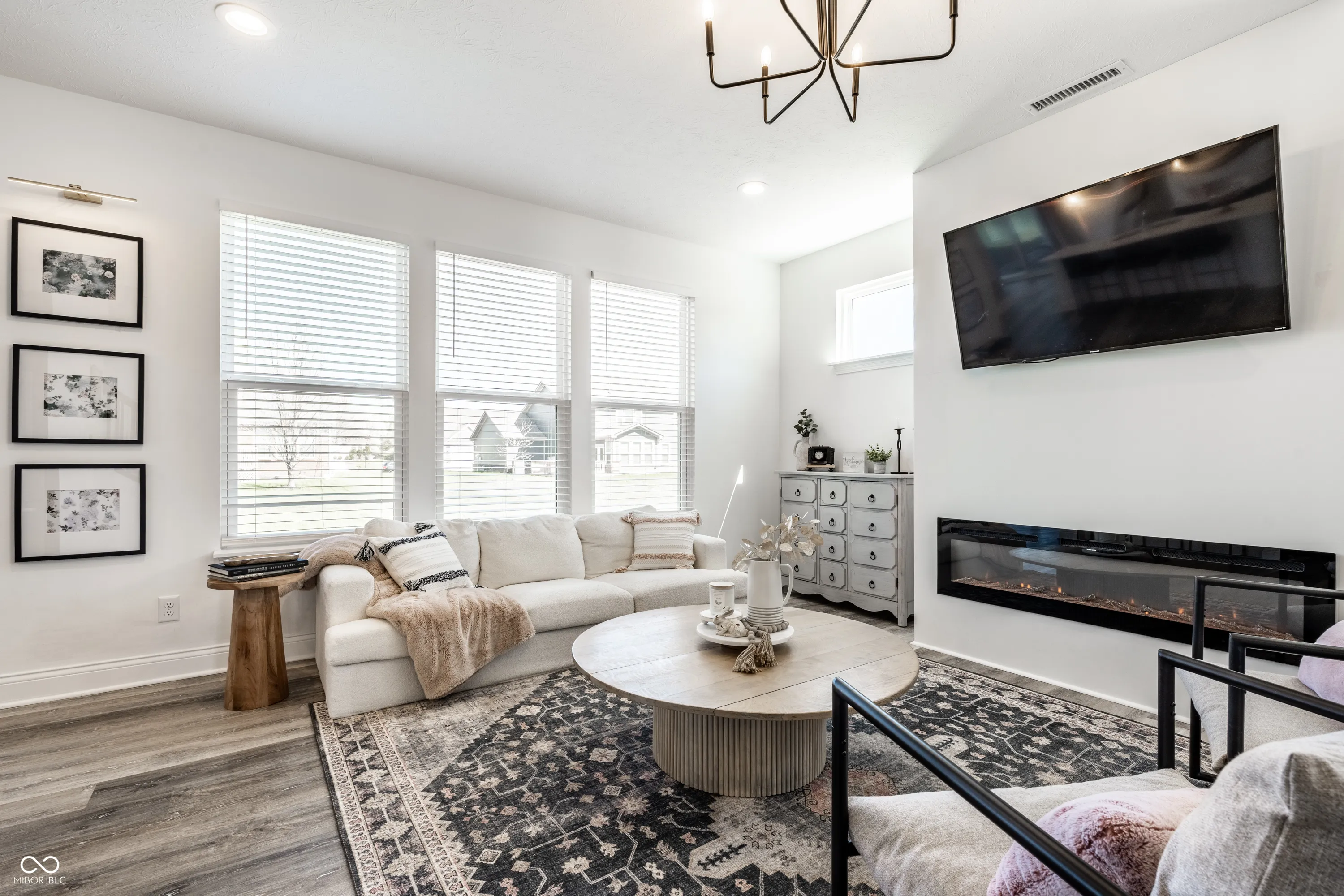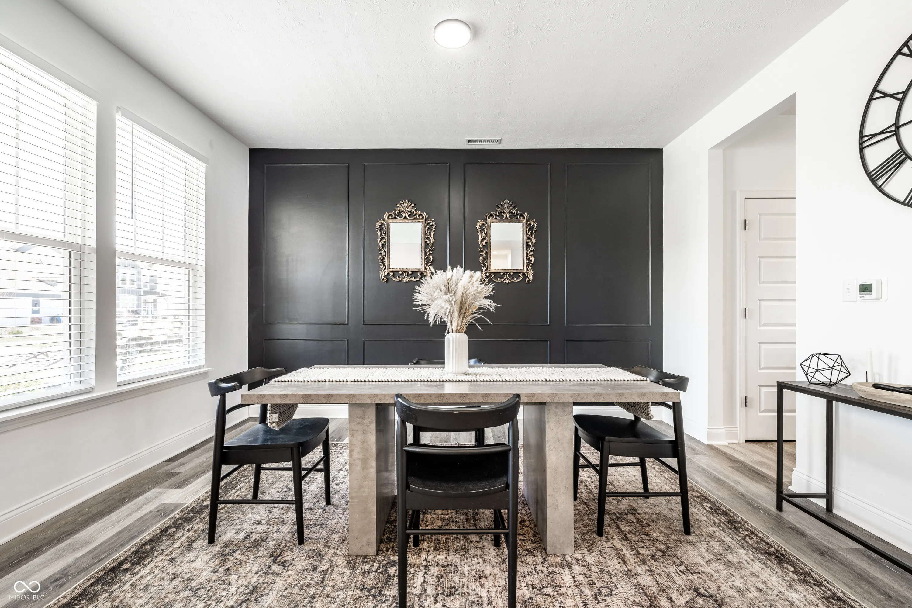 Welcome to this beautifully crafted 2 story home where modern comfort meets timeless charm! Boasting a cozy, inviting covered front and back porch, farmhouse-style elevation and neutral color palette, this home is ready for its next chapter. Step inside the foyer to discover an open-concept layout designed for both everyday living and effortless entertaining. Off the foyer, the formal dining room offers an elegant space for hosting dinners and holiday gatherings and sits across from a versatile flex room, perfect as a private home office, den or guest bedroom. The spacious great room, anchored by a cozy electric fireplace, seamlessly flows into the stunning kitchen where gleaming white granite countertops, bar center island bar seating, stainless steel appliances and not one, but two pantries for ample storage are a chef’s dream. The additional breakfast area opens onto a covered back patio and over a 1/4 acre lot, ideal for morning coffee or evening get-togethers with an adjacent mudroom providing a landing spot to organize bags, coats and shoes after a long day. Upstairs, the spacious primary retreat is bathed in natural light and includes a spa-inspired en suite bathroom with tiled walk-in shower, dual-sink vanity, generous walk-in closet plus linen closet. The dual temperature control and second-floor laundry just steps away add convenience and comfort. In addition to the remaining 3 upstairs bedrooms, a loft offers additional flexible living space, perfect as a playroom, media room or creative studio. As a bonus, the roomy, finished 3-car garage includes an extra rear storage area, perfect for tools, bikes or seasonal items. With its prime location near shops, dining and quick access to Hwy 52 and I-465, this home checks all the boxes!