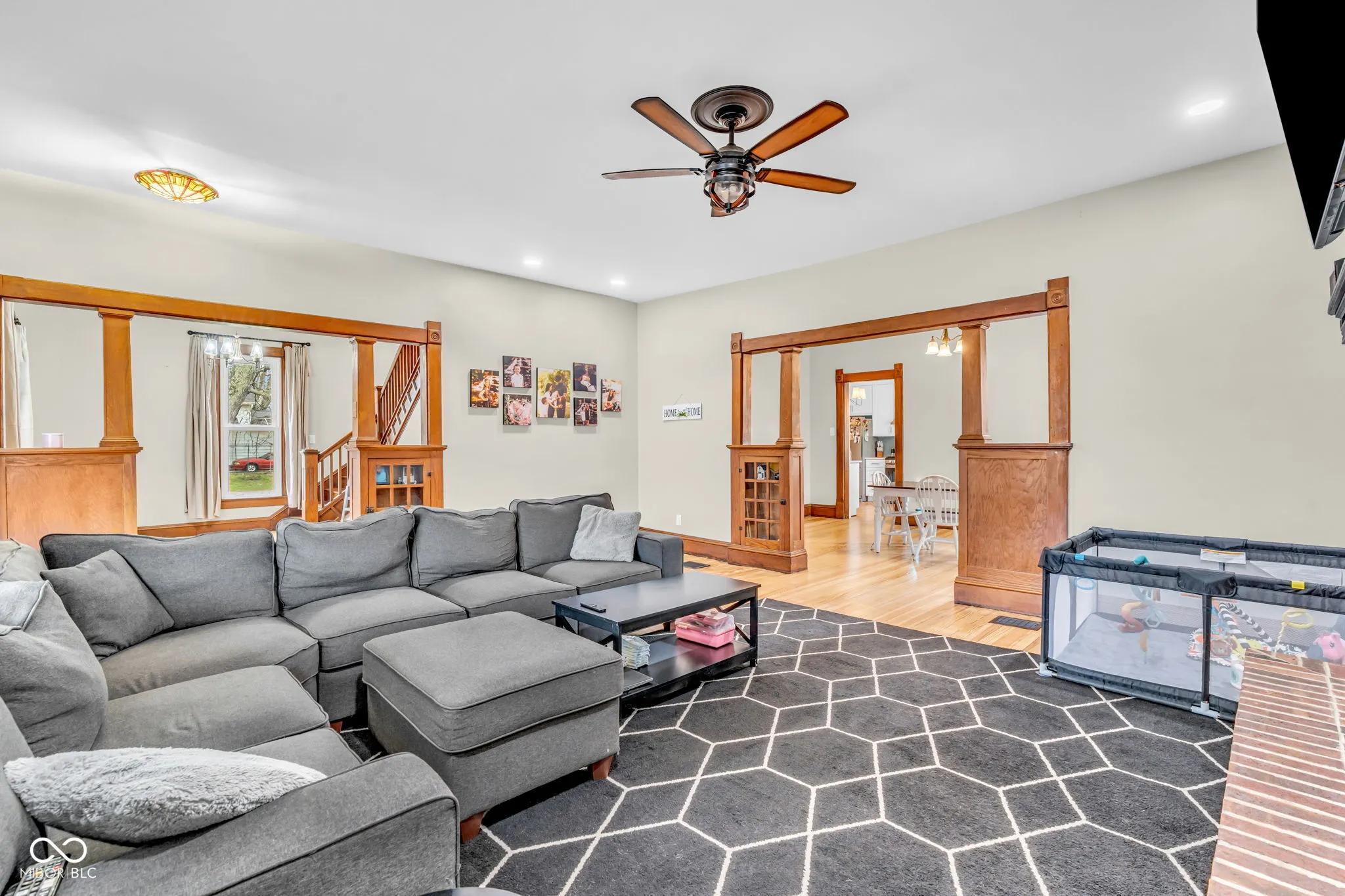 Beautiful 4-bedroom, 2-bath two-story home located in a quiet small-town setting, full of character and thoughtful updates that honor its original charm. From the moment you step inside, you’ll appreciate the gorgeous original hardwood floors, stunning front windows with decorative glass, built-in dining room cabinetry, arched doorways, and exposed brick accents throughout. The kitchen features stainless steel appliances and a convenient pantry, offering both style and functionality. The fully remodeled primary bathroom is a standout, complete with a spacious walk-in shower and double sink vanity. Situated on a generous 1-acre lot, the property includes a fenced yard and a variety of fruit trees, perfect for enjoying outdoor living. The large detached garage has seen several important updates, including newer roof, windows, insulation, A/C, wiring, and subpanel. Additional recent improvements to the home include updated A/C, plumbing, and water heater, providing peace of mind for the next owner. This eye-catching home offers the perfect blend of timeless character and modern updates, don’t miss your chance to make it yours!