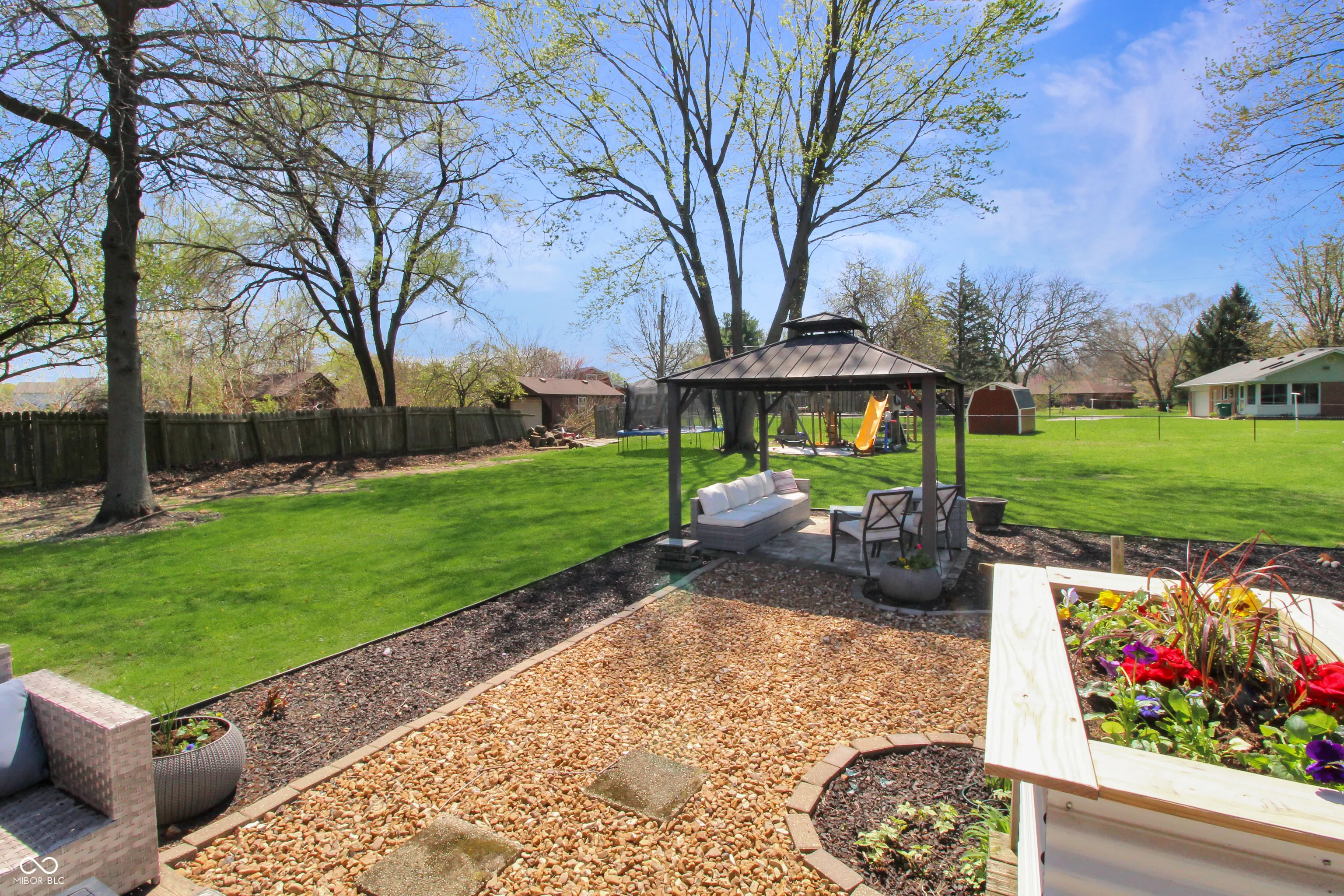 Discover the perfect blend of classic ranch charm and contemporary open-concept living. Nestled on a sprawling .58-acre lot, this 3-bedroom, 2-full bath home has been thoughtfully transformed to meet the needs of today’s lifestyle while offering an outdoor oasis that is second to none. Forget the boxy rooms of the past. The original 1970s floor plan has been reimagined by removing key walls, creating a seamless flow between the kitchen, breakfast nook, and family room. Whether you’re hosting a holiday dinner or keeping an eye on the action, this light-filled “great room” feel is the soul of the home. Modern finishes and stylish fixtures have updated this home. Including appliances, interior doors, kitchen cabinets, island/quartz, flooring, lights, ceiling fans and hardware. Spacious primary bathroom with sitting area & walk in closet. This space is currently serving as a cozy nursery but would make an ideal home office or private library. If you love the outdoors, this backyard is your spot. The massive half-acre+ lot offers plenty of room. A deck for additional hang out space, lovely covered spot for morning coffee or evening cocktails. A firepit perfect for crisp Indiana nights. The homeowners added extra concrete to create a convenient turn-around and additional parking. Because the driveway is perfectly flat, it doubles as the ultimate “home court” for basketball or pickleball matches.
